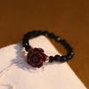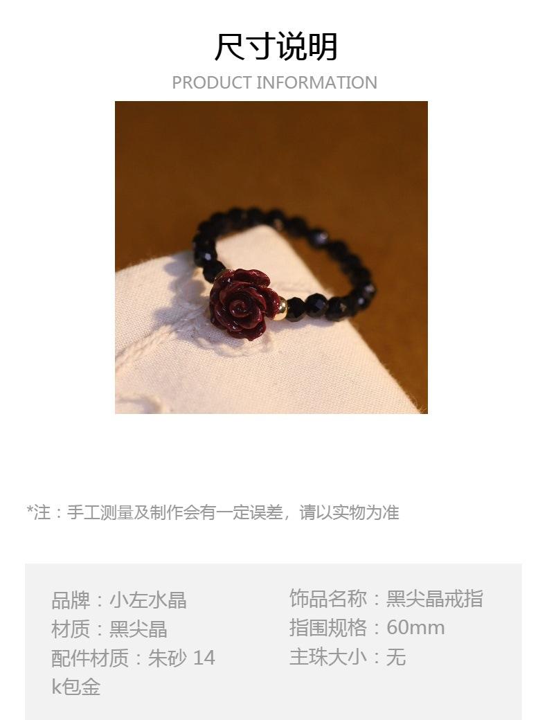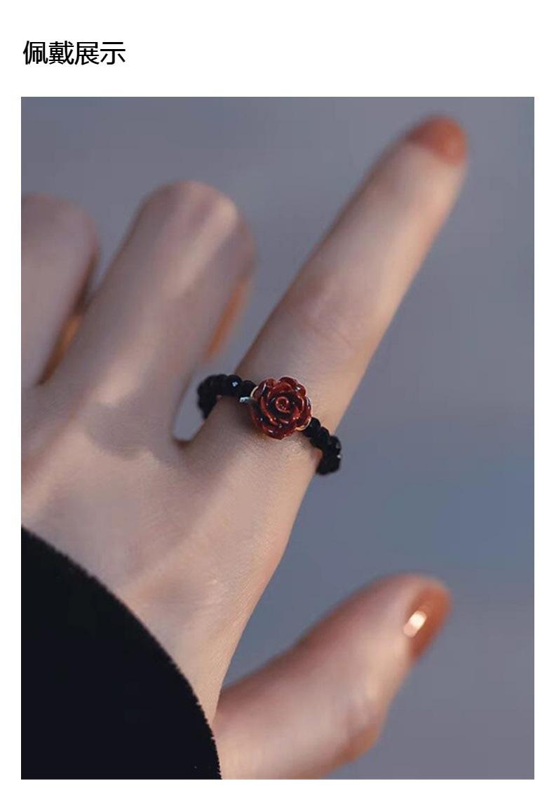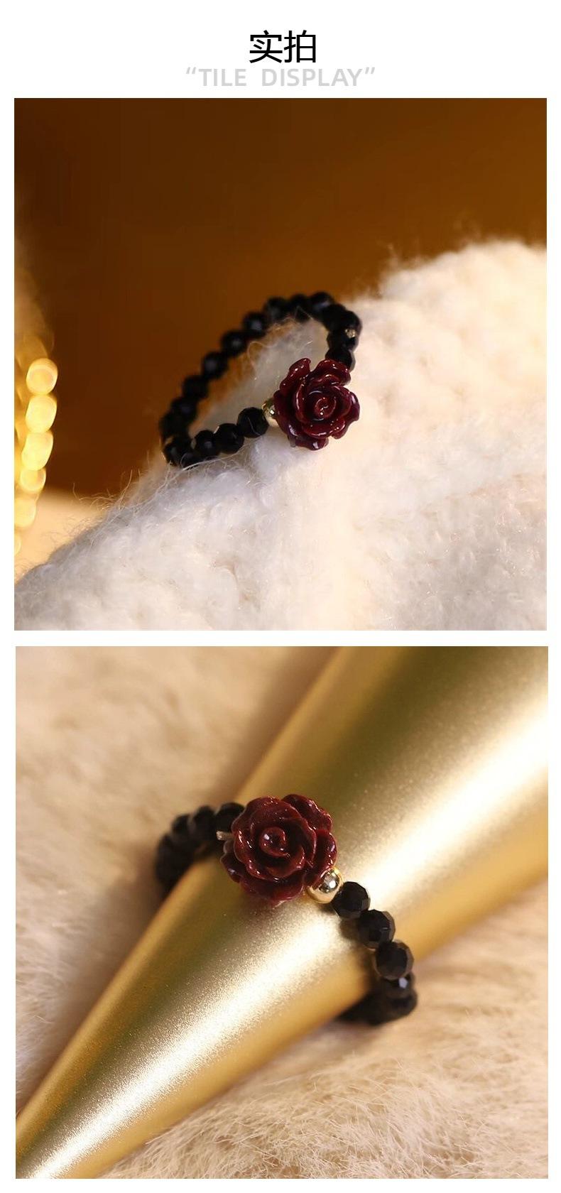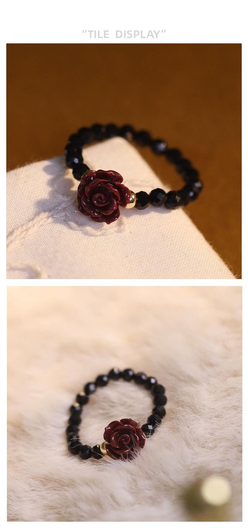 Anillo de cristal negro puntiagudo con flor de rosa cinabrio, joyería de cristal para mujer para otoño e invierno, regalo de cumpleaños festivo.