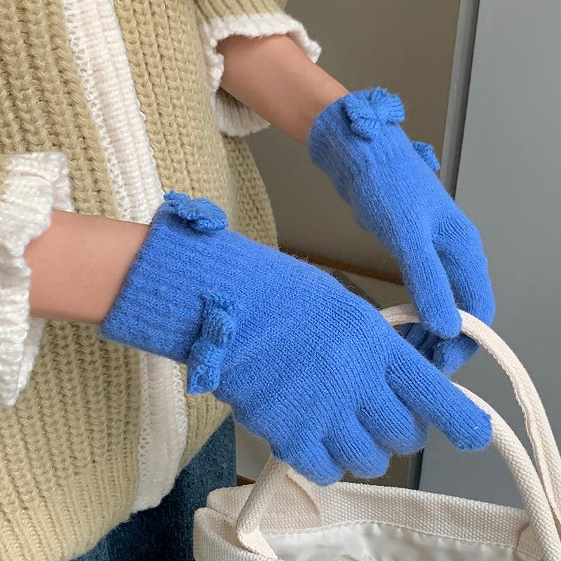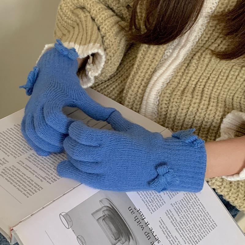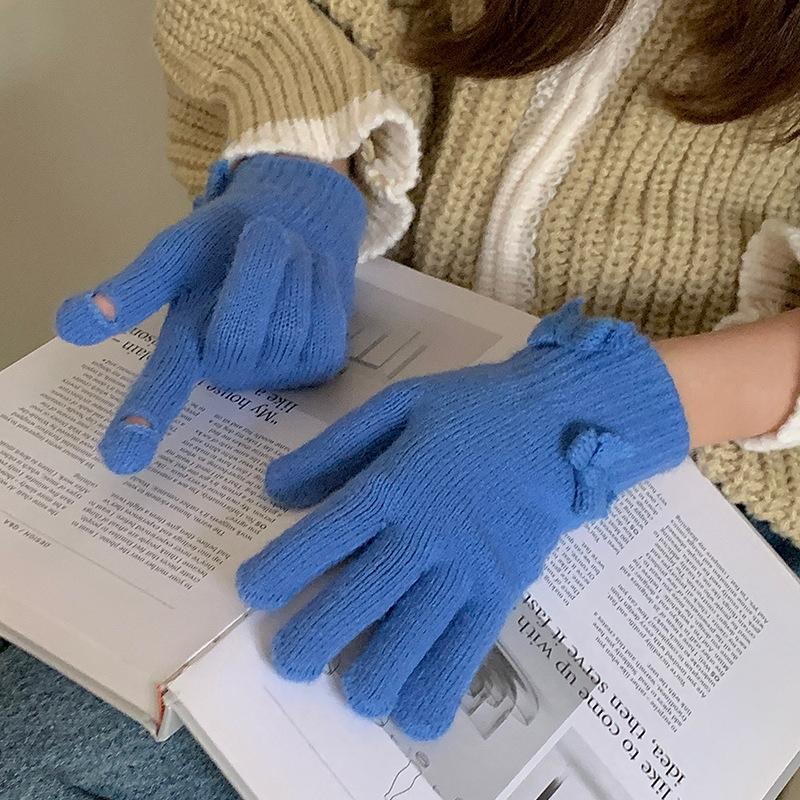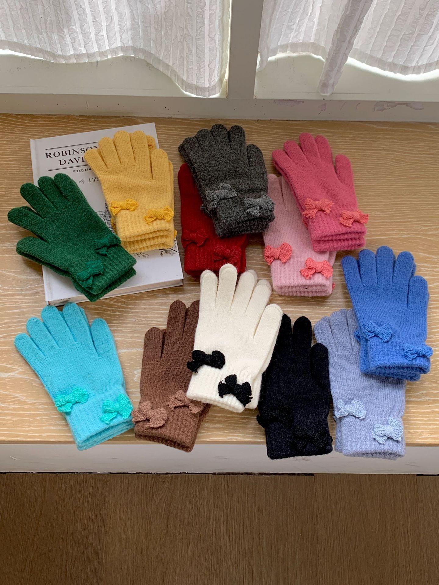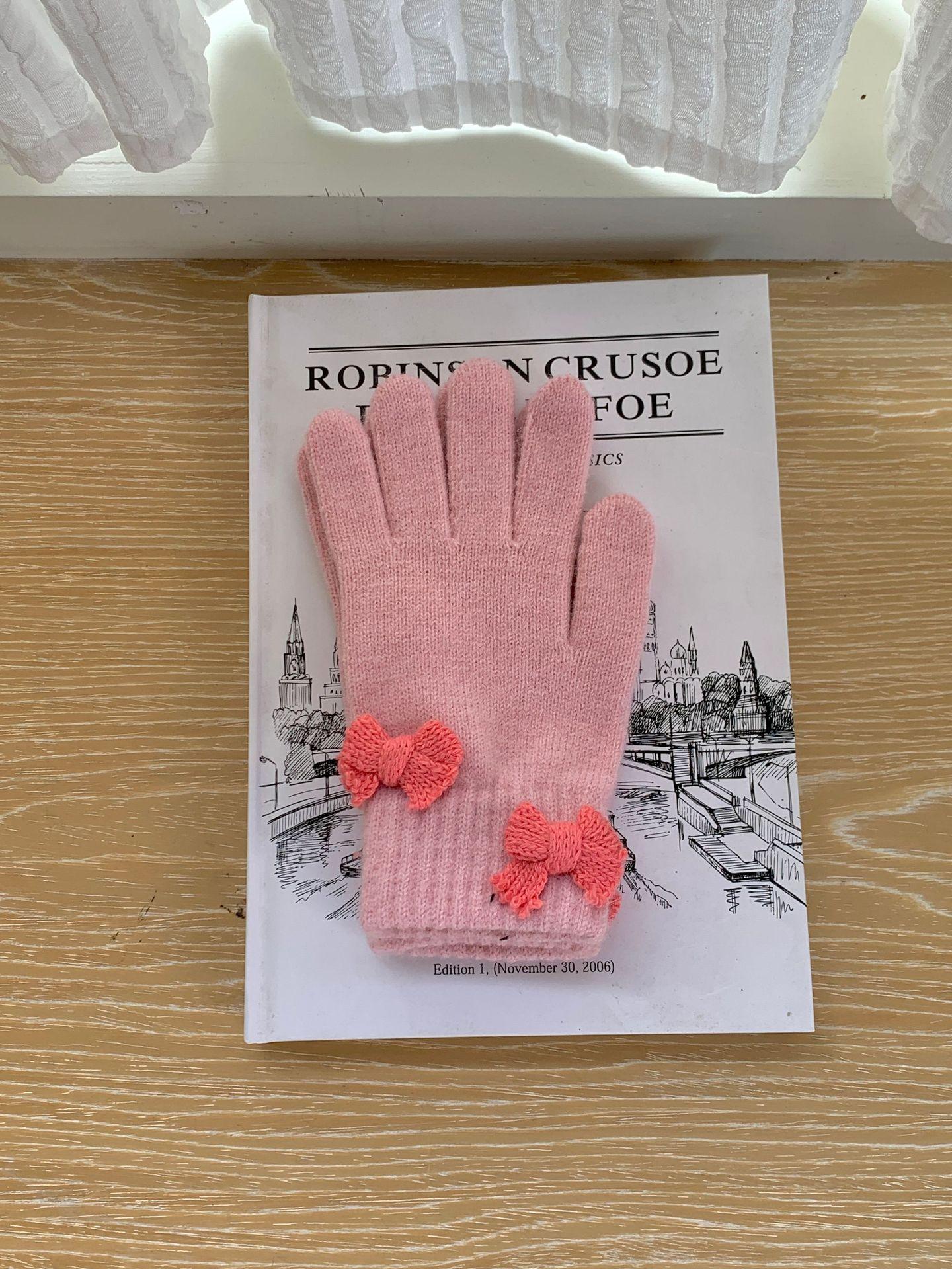 Guantes Cortos de Lazo Tejido de Corazón para Niña para Estudiantes Lindos y Juguetones para Montar al Aire Libre Lana Táctil para Dedos a la Moda