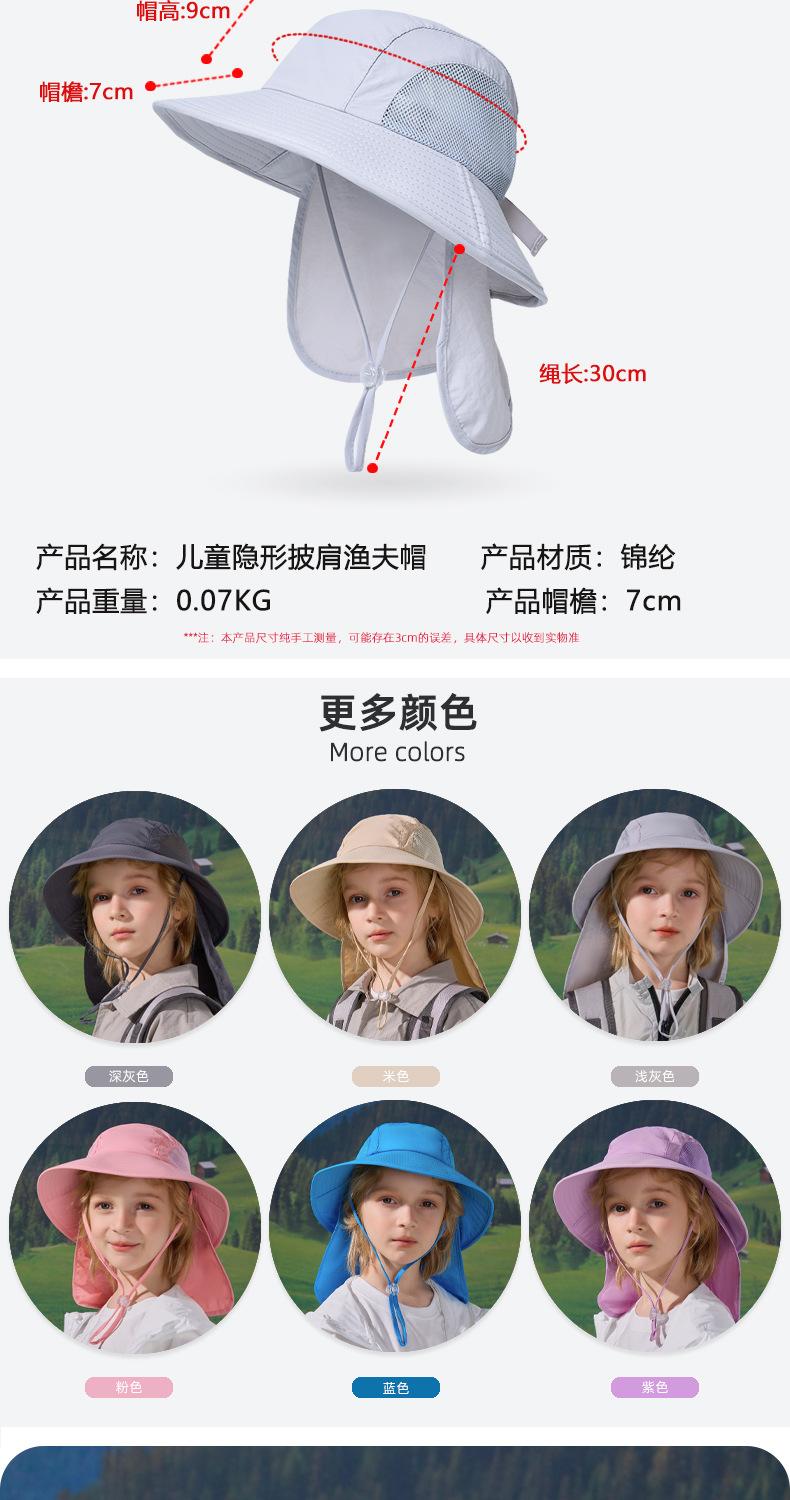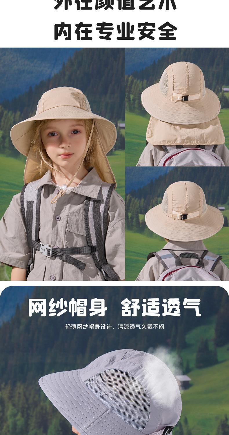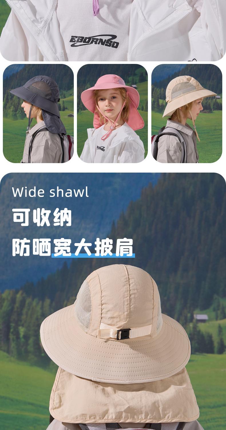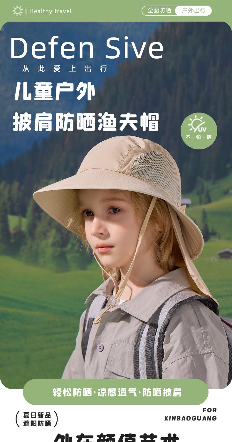 Sombrero de pescador de ala ancha para niños y niñas, protector solar transpirable para exteriores, con protección para el cuello, para primavera y verano