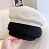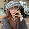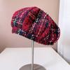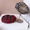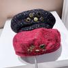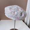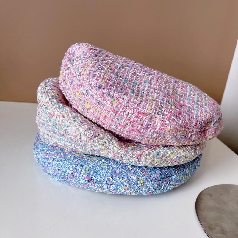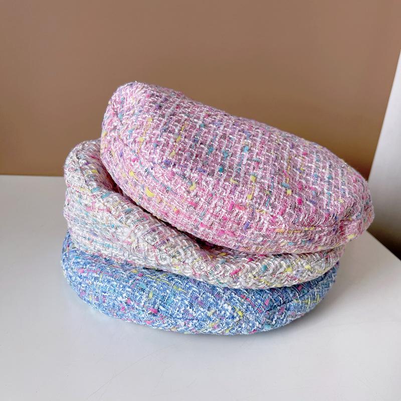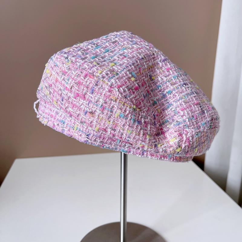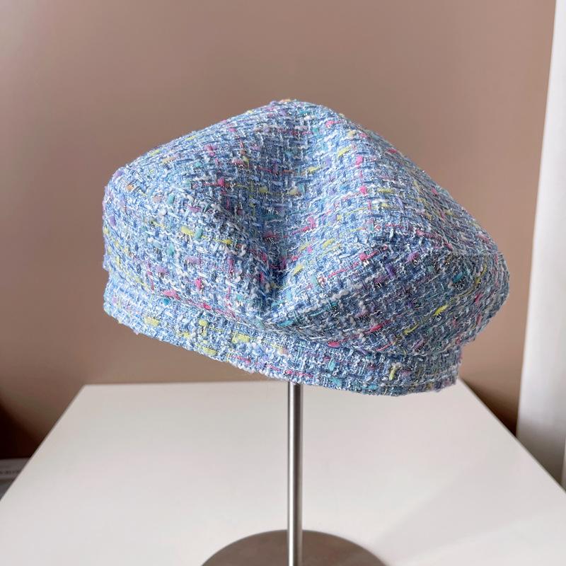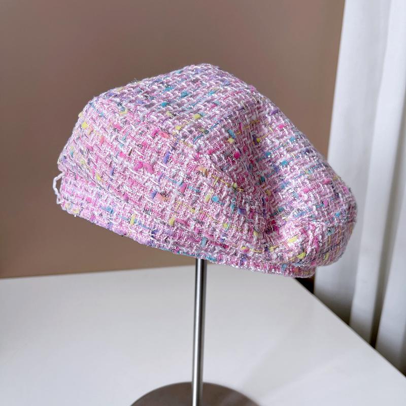 Boina de tweed estilo Chanel para mujer, otoño e invierno, cálida, sombrero de pintor, color mezclado, sombrero de azafata, boina europea y americana que combina con todo