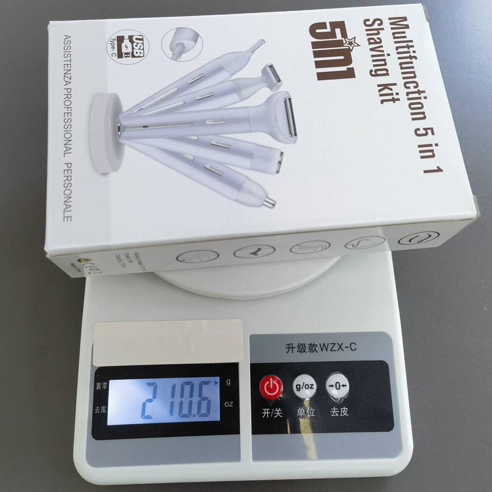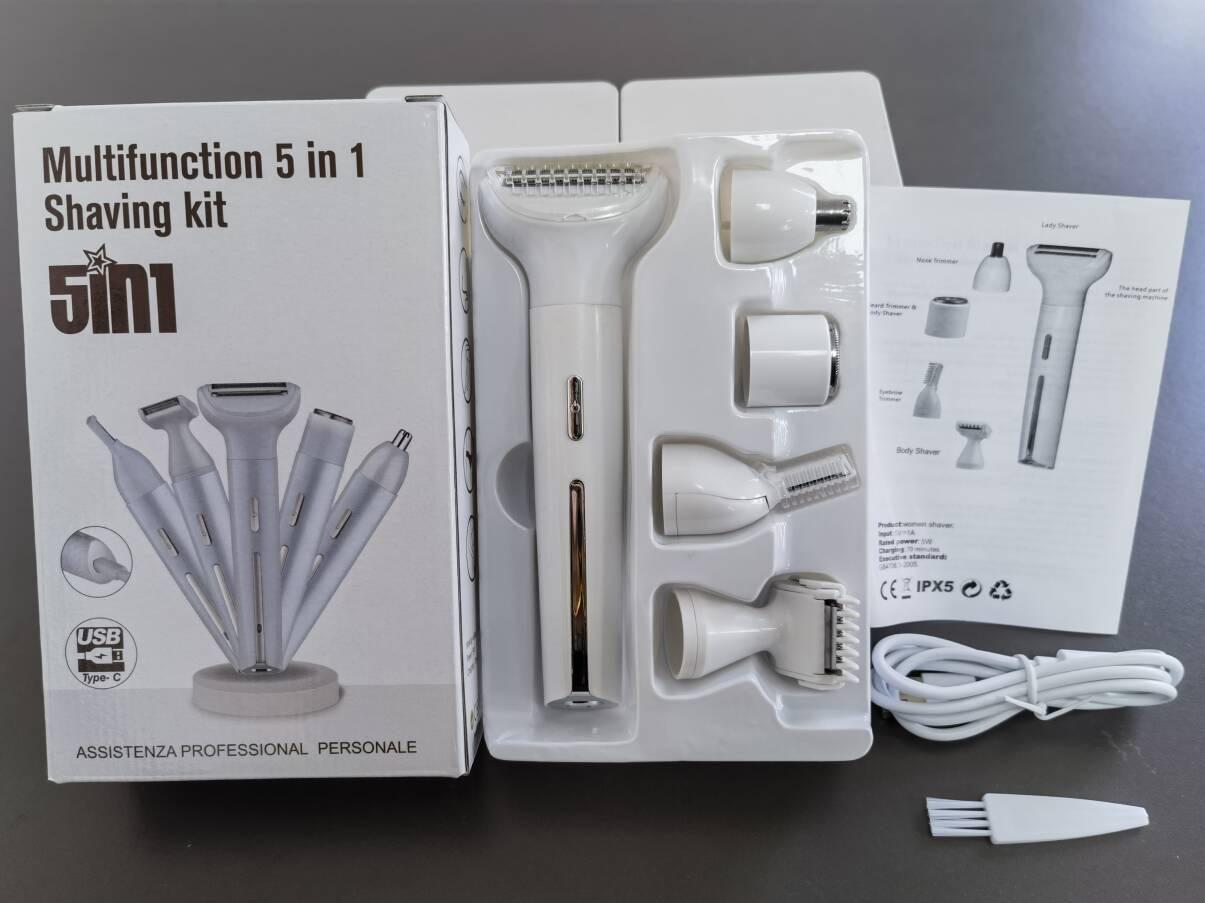 Accesorios:1 cabezal de doble hoja + 1 cabezal para recortar vello corto + 1 cabezal para recortar vello largo + 1 cabezal para vello nasal + 1 cabezal para recortar cejas + 1 cepillo de limpieza + 1 cable USB + 1 manual de instrucciones