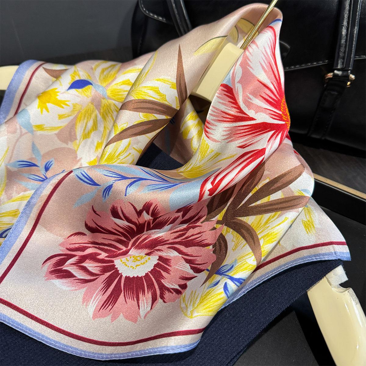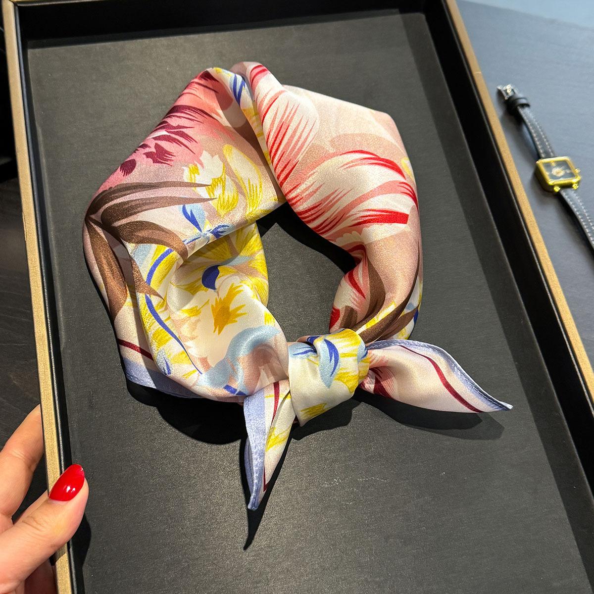 Bufanda de seda morera para primavera y verano, fina, pequeña, de seda, cuadrada, estampada, a la moda, para mujer