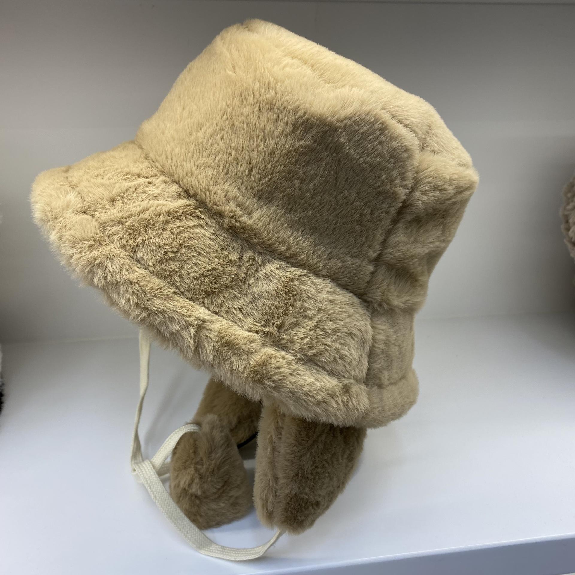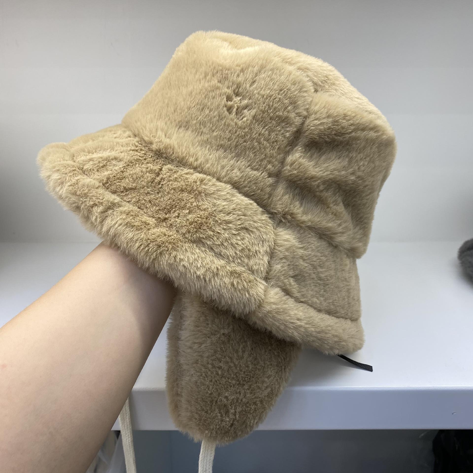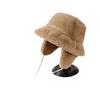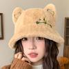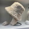 Sombrero de pescador grueso de estilo coreano de invierno para mujer, gorro de lavabo con protección para las orejas desmontable, pequeño, cálido, con aspecto de conejo, para otoño e invierno