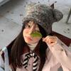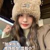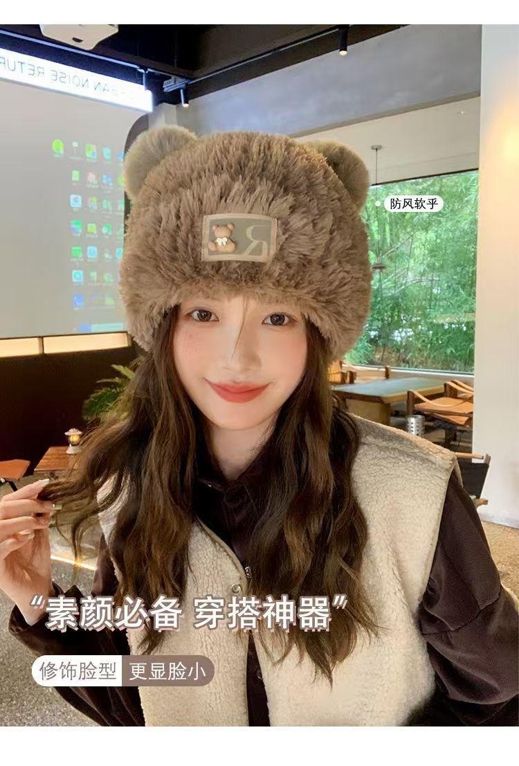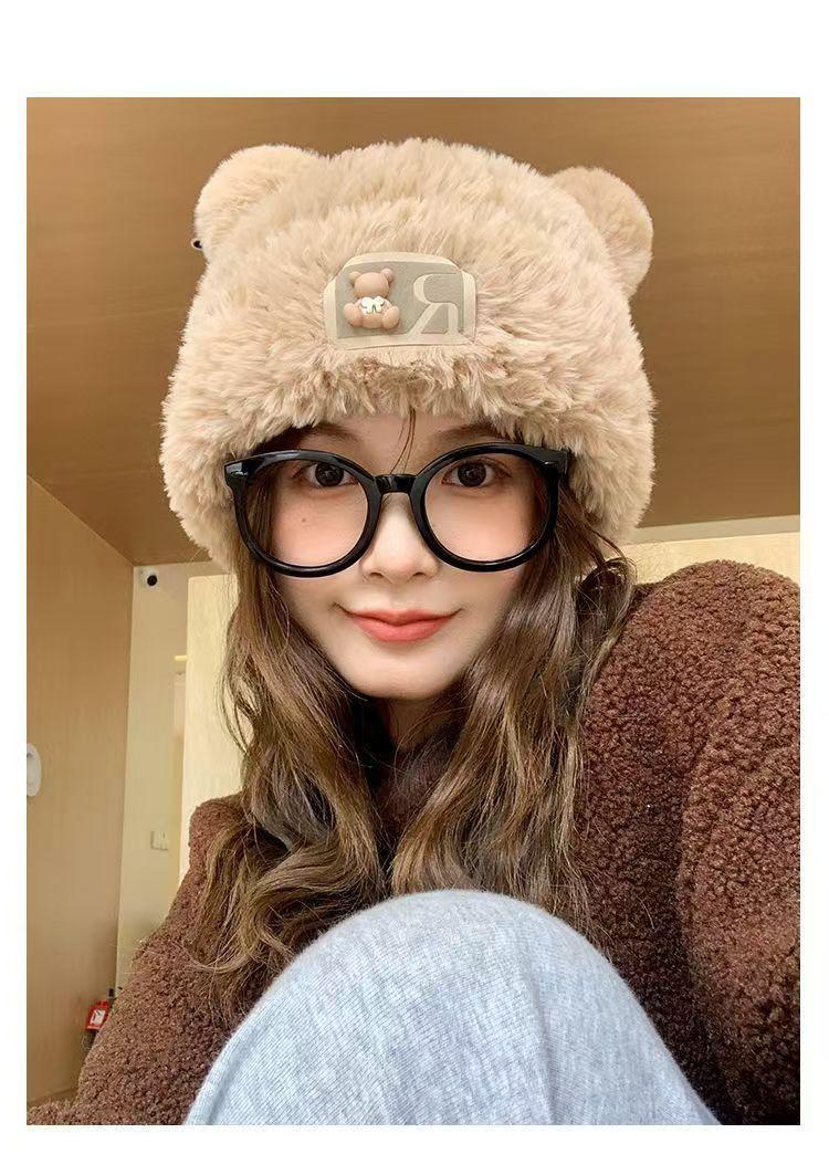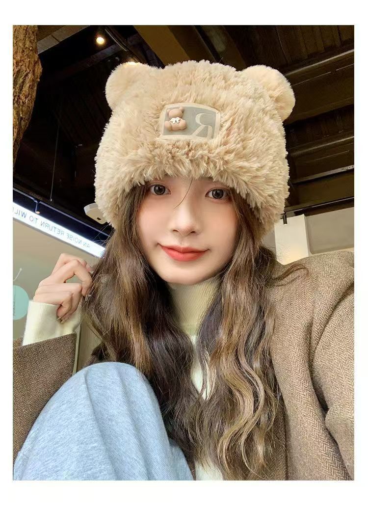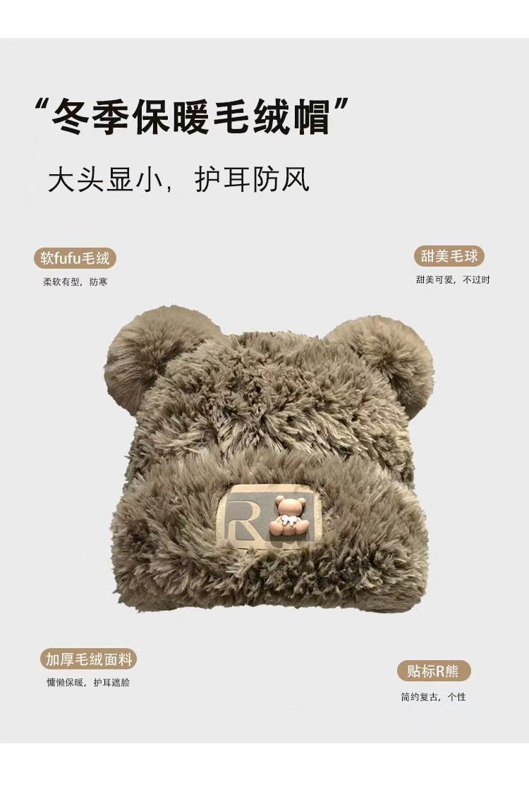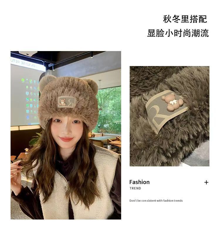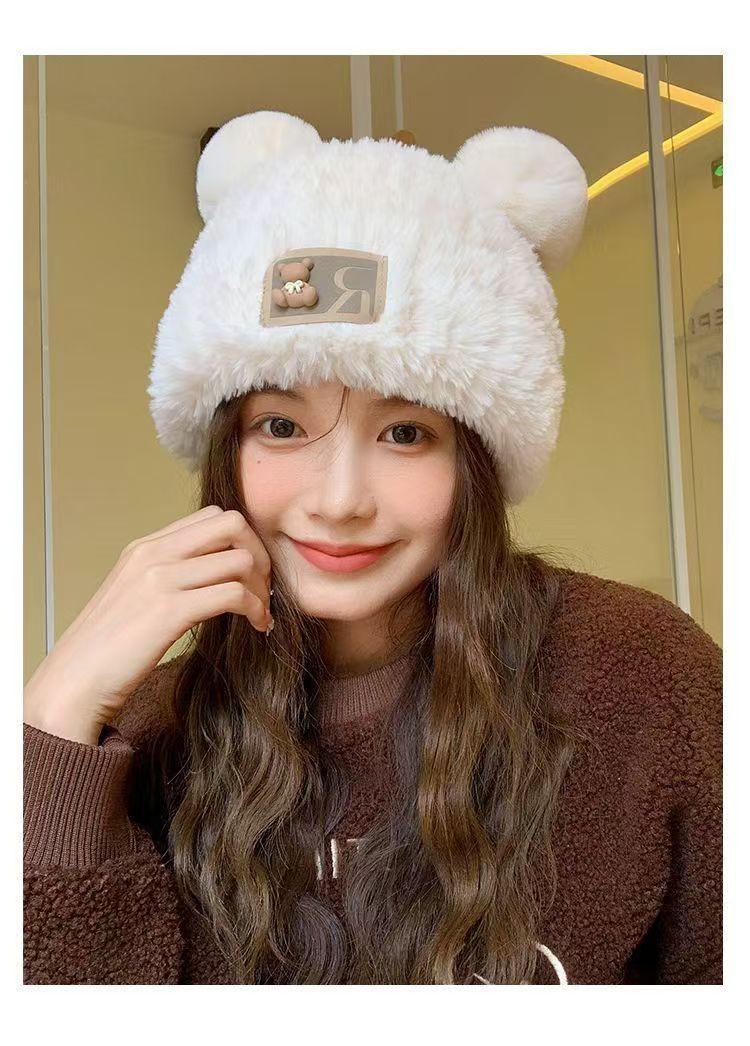 Gorro de lana con orejas de oso para mujer, moderno gorro de invierno con pelo, grueso y cálido, con protección para las orejas, de punto, para cabeza grande