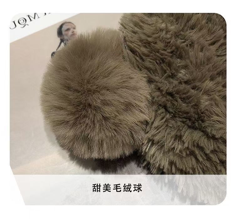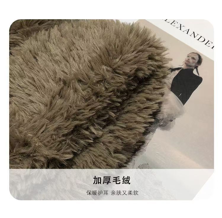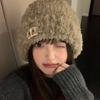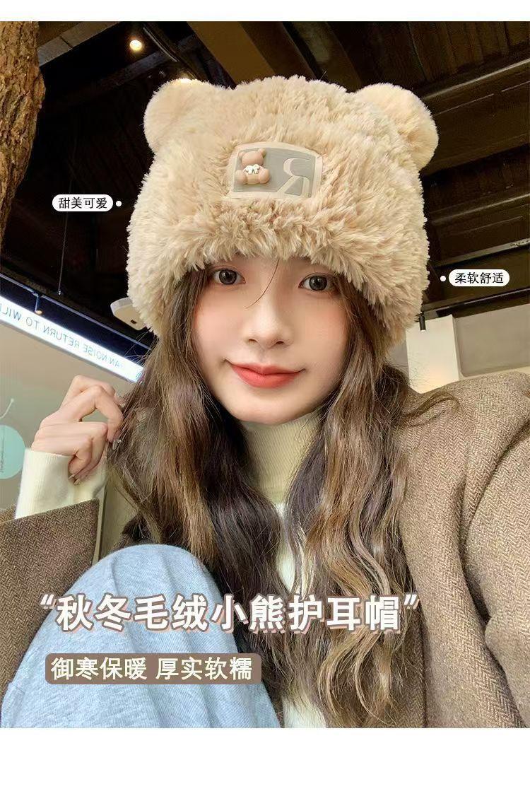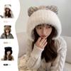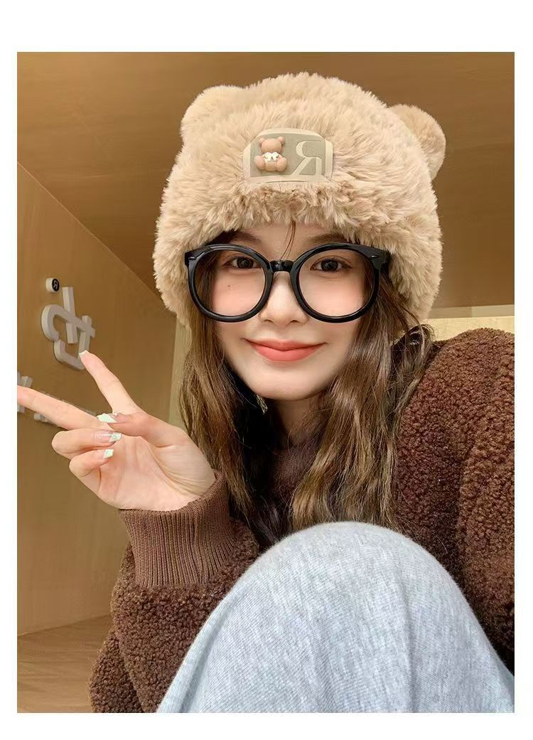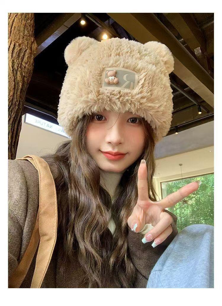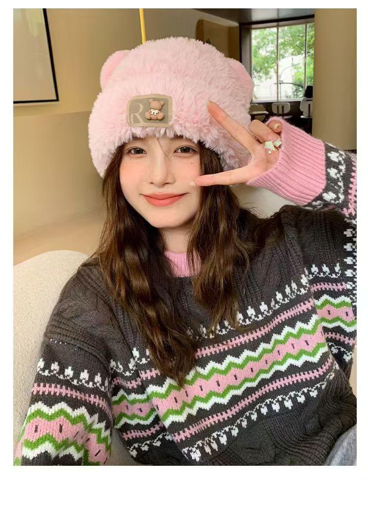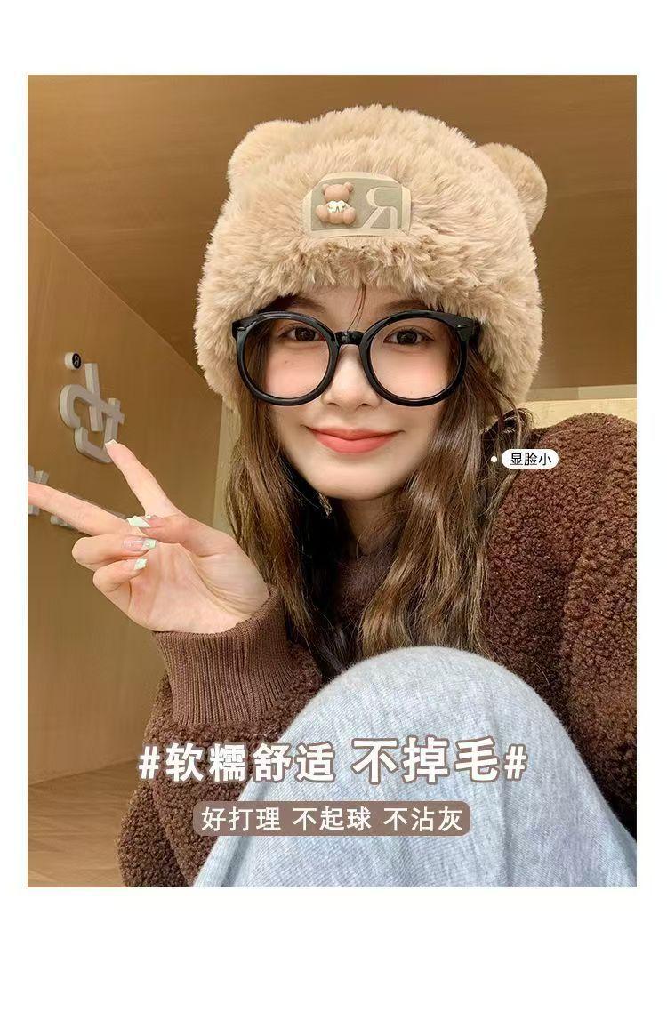 Gorro de lana con orejas de oso para mujer, moderno gorro de invierno con pelo, grueso y cálido, con protección para las orejas, de punto, para cabeza grande