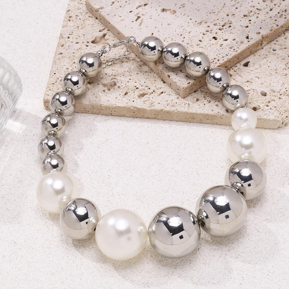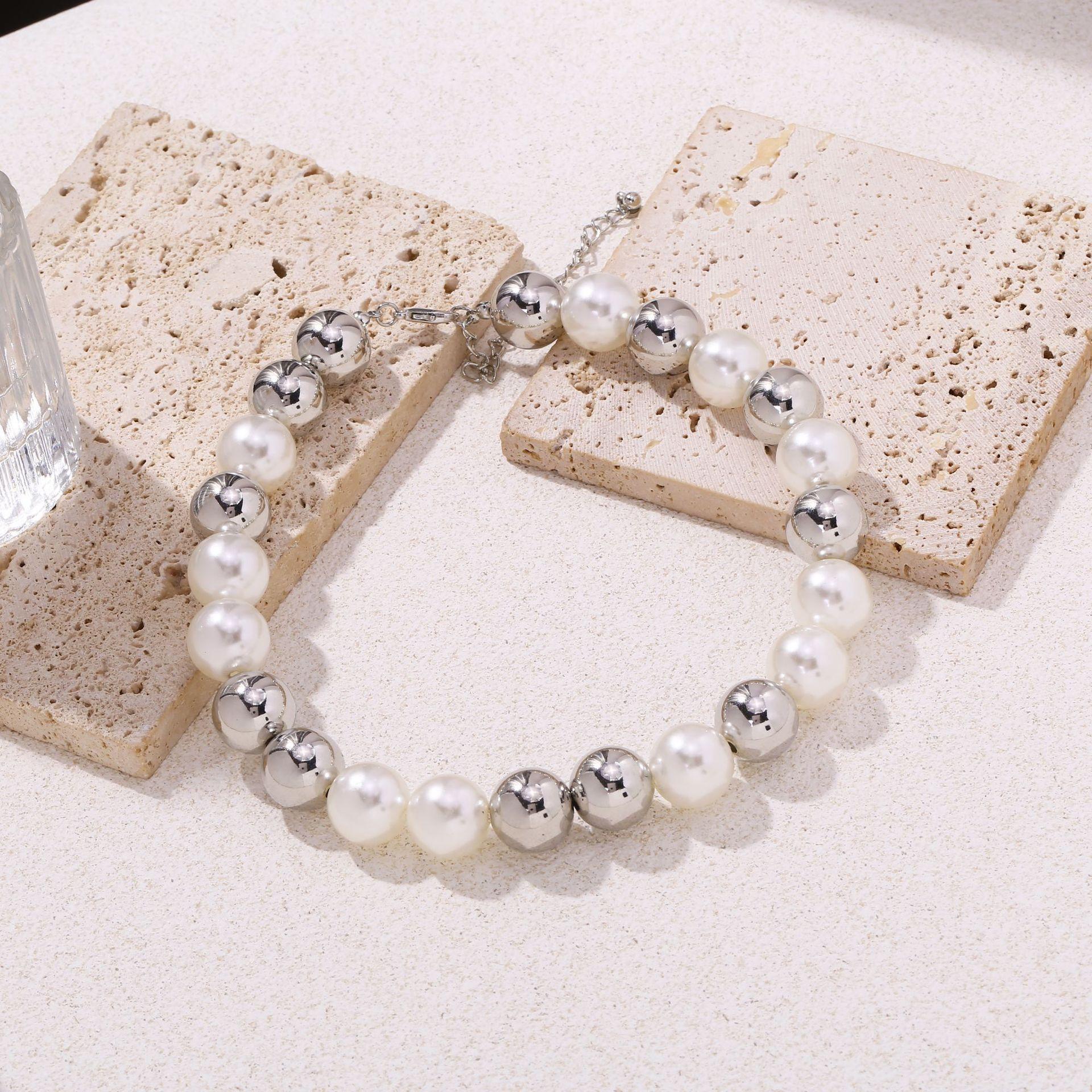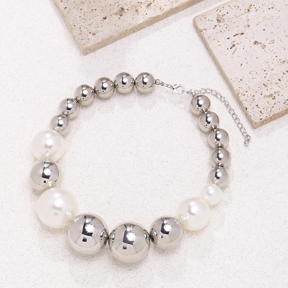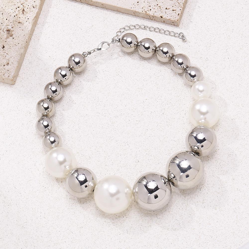 Collar Personalizado de Cuentas Redondas Esféricas Grandes Estilo Punk Hip-Hop Simple DIY Collar de Cuentas Joyería Transfronteriza Europea y Americana