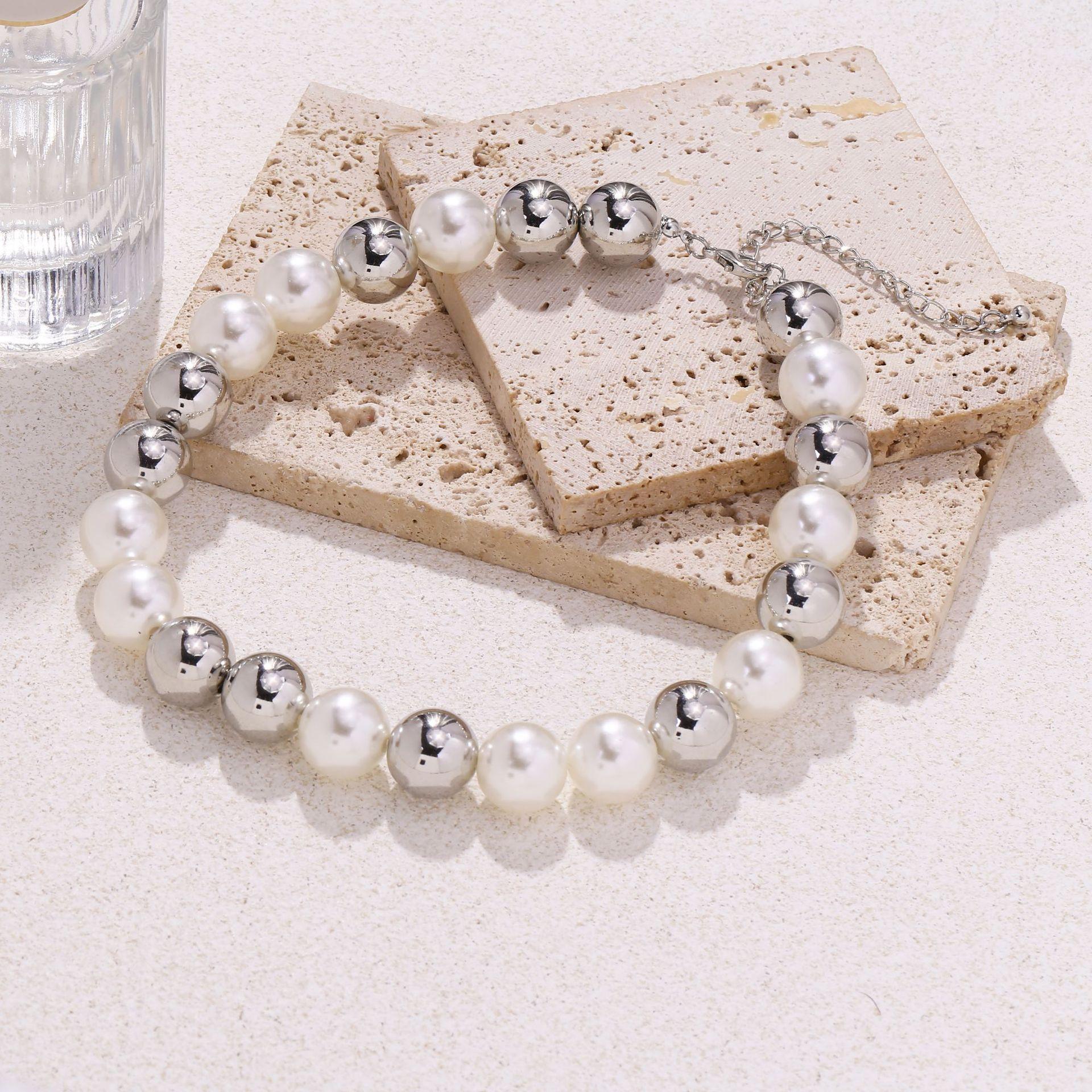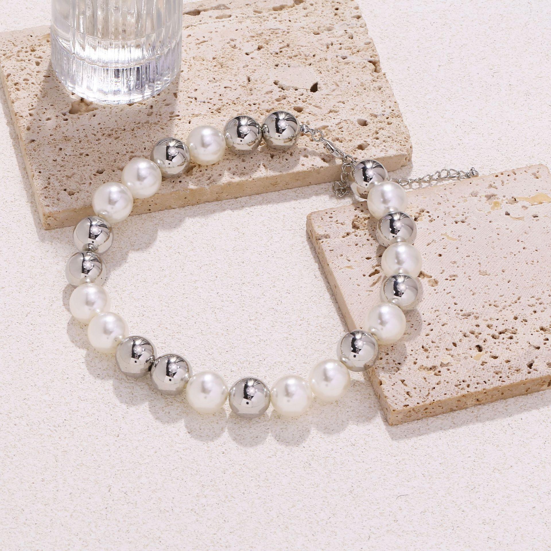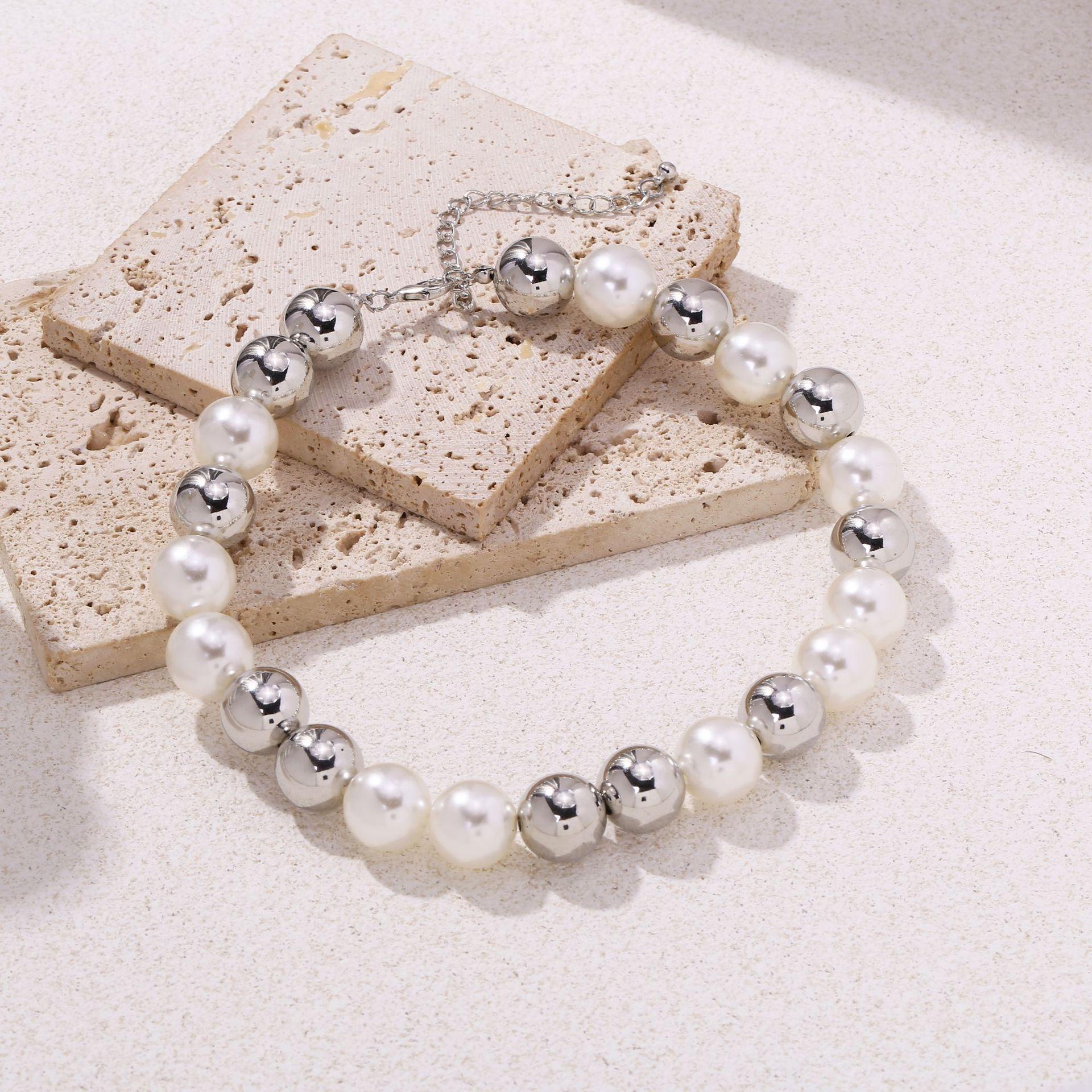 Collar Personalizado de Cuentas Redondas Esféricas Grandes Estilo Punk Hip-Hop Simple DIY Collar de Cuentas Joyería Transfronteriza Europea y Americana