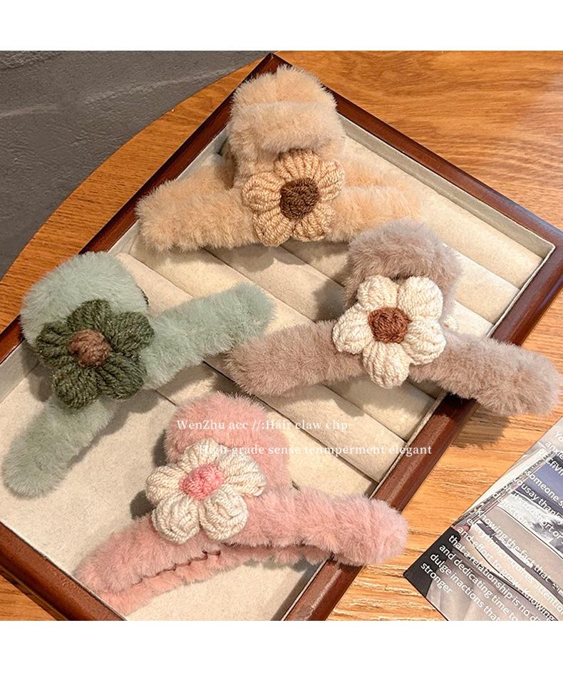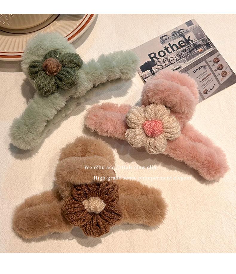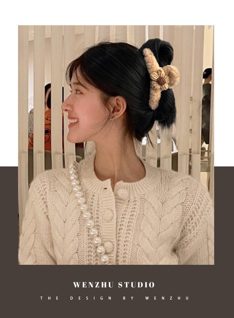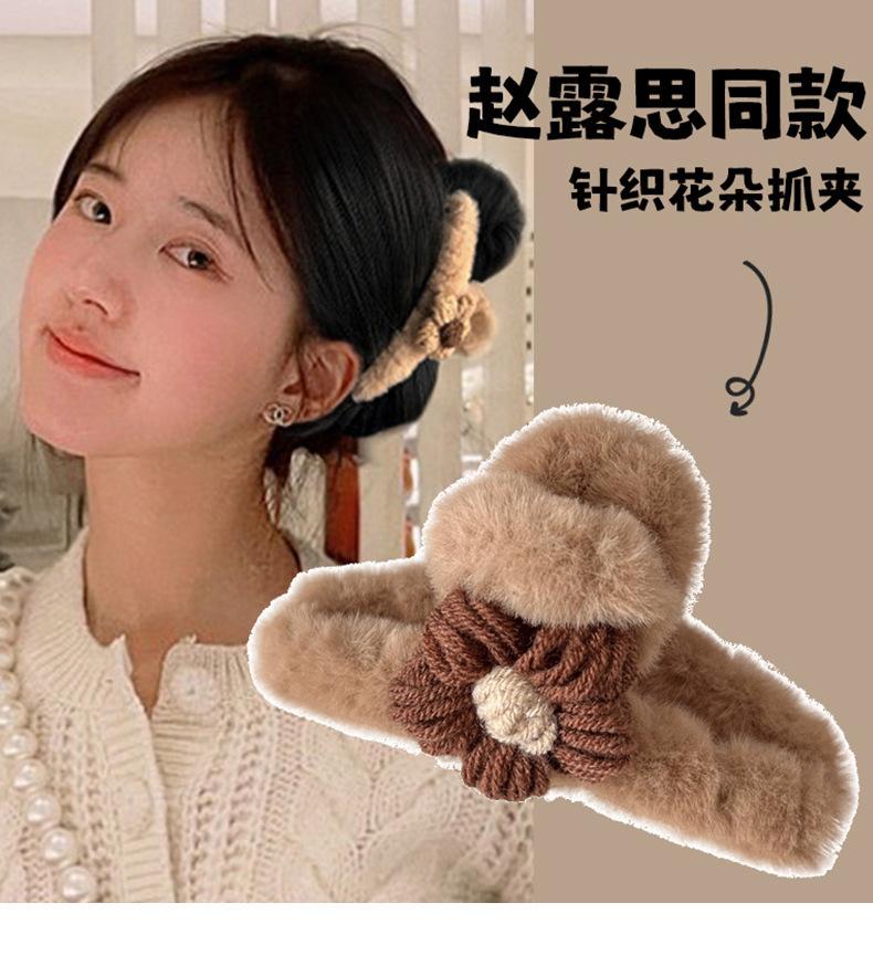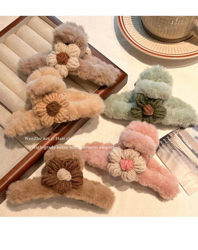 Clip de Agarre de Flor Tejida de Felpa para Mujer Clip Grande Tocado 2023 Otoño e Invierno Nuevo Sentido de Alta Gama Clip de Tiburón para la Parte Posterior de la Cabeza