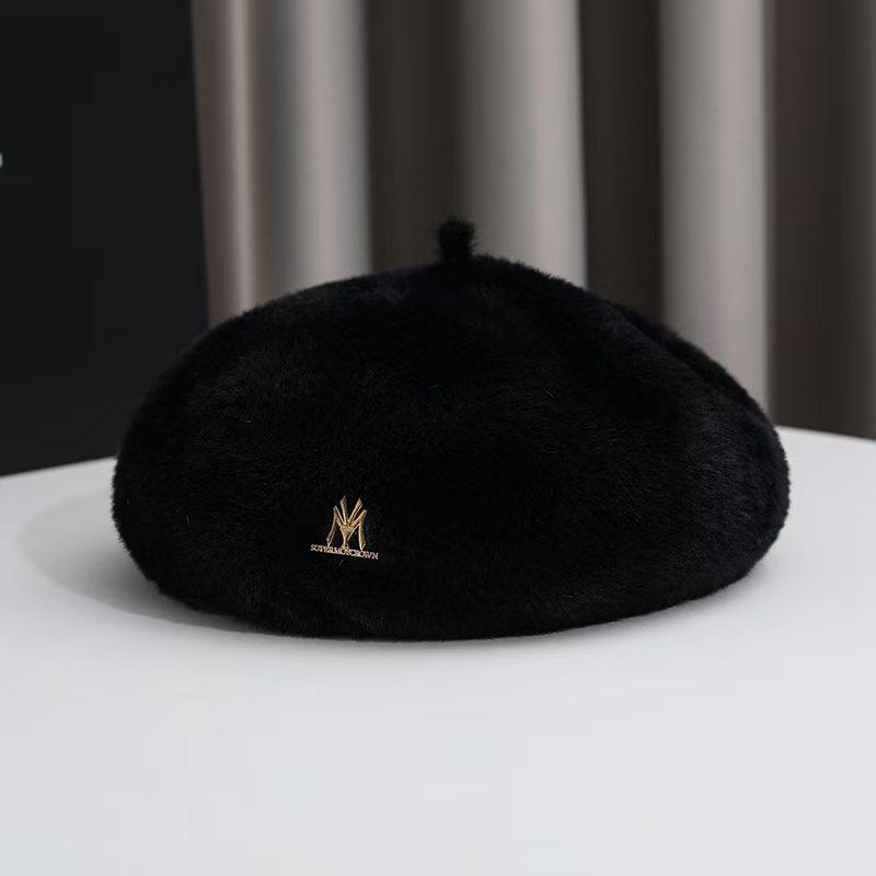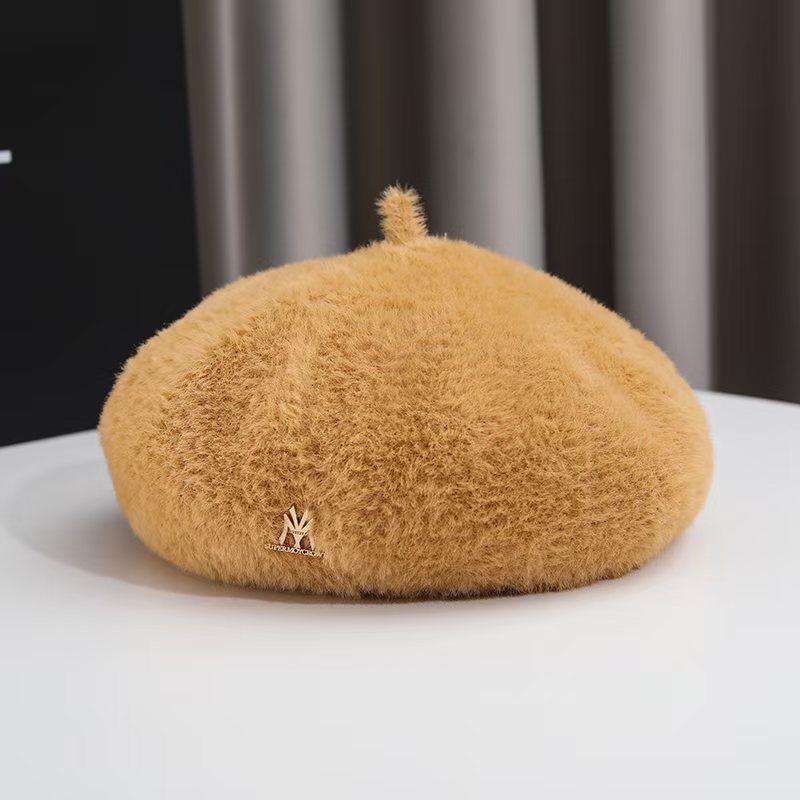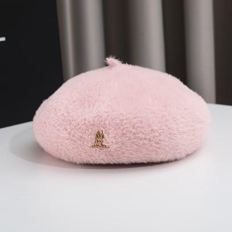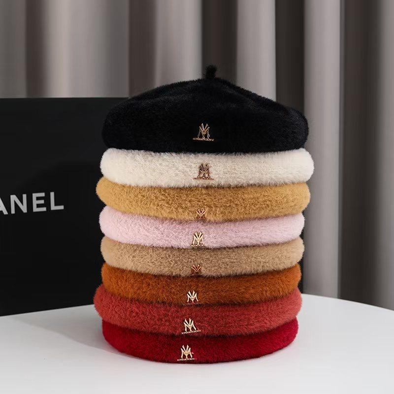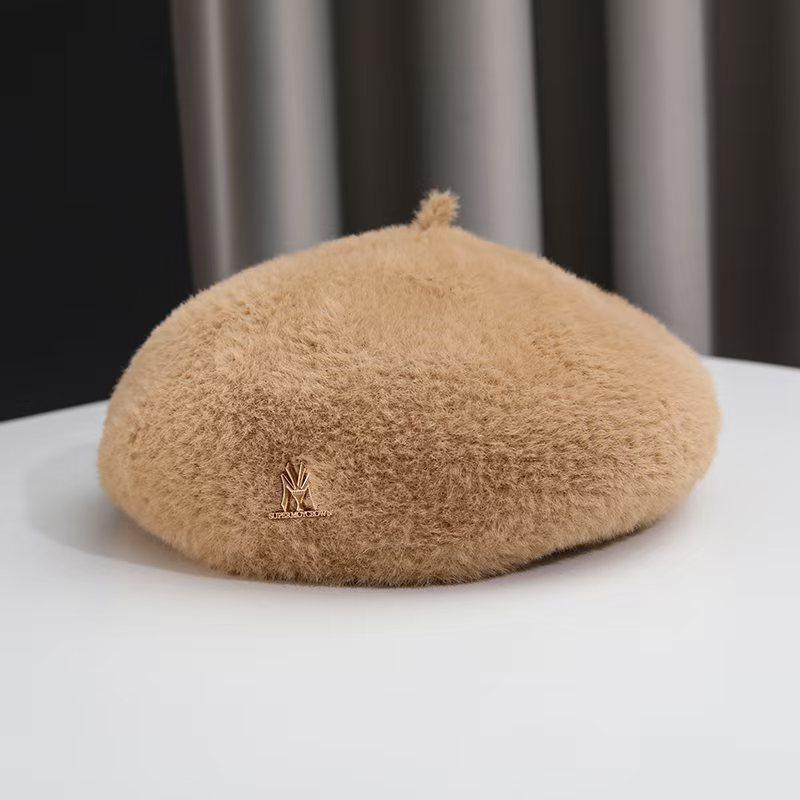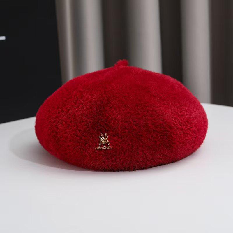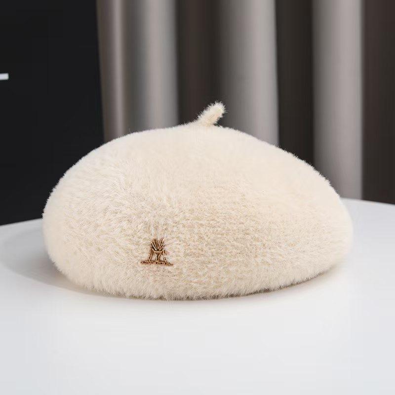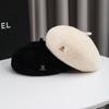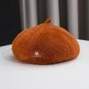 Boina de punto de felpa británica para mujer, estilo coreano, con letras que combinan con todo, estilo japonés, vintage, para otoño e invierno