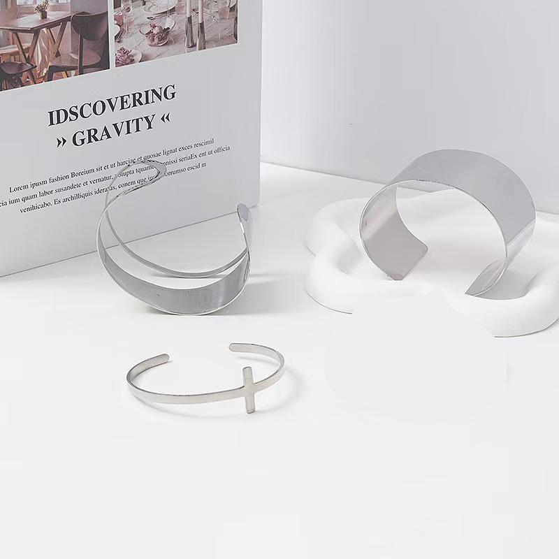 Pulsera cruzada transfronteriza europea y americana, pulsera ancha y lisa de acero de titanio, pulsera de moda simple, fabricantes de joyas Joker al por mayor