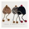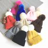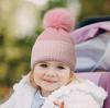 Gorro de Punto para Niños Otoño e Invierno Nuevo Grueso Cálido Gorro para Niños Lazo de Doble Pompon Lindo Gorro de Punto para Niños
