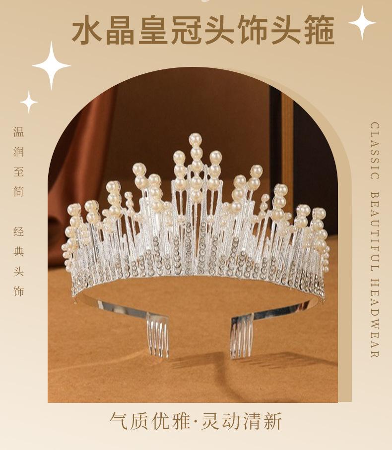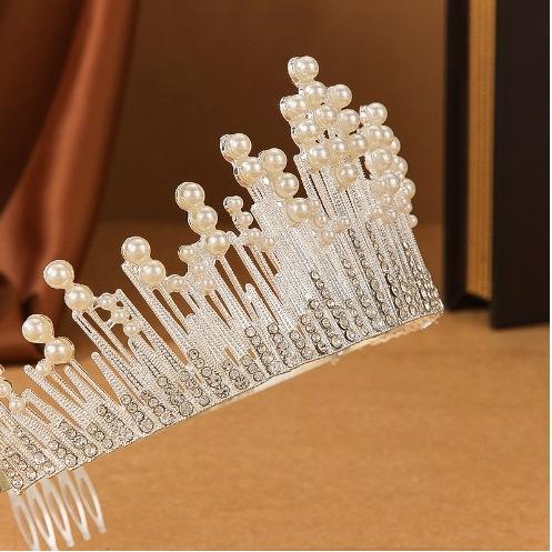 Corona Europea y Americana Transfronteriza Nueva Corona de Perlas Nupciales Accesorios para el Cabello Corona de Cristal de Princesa Tiara Diadema