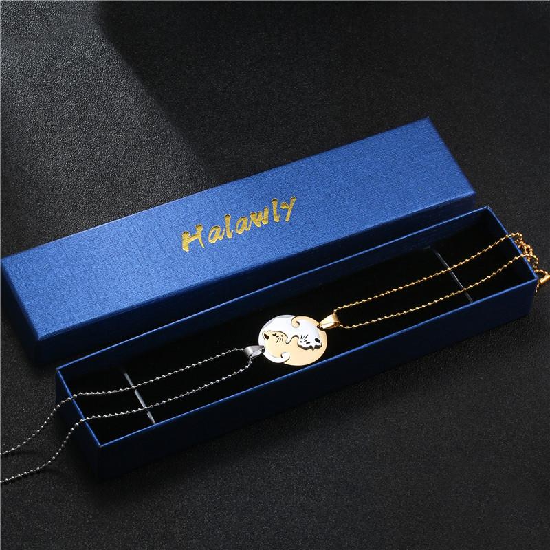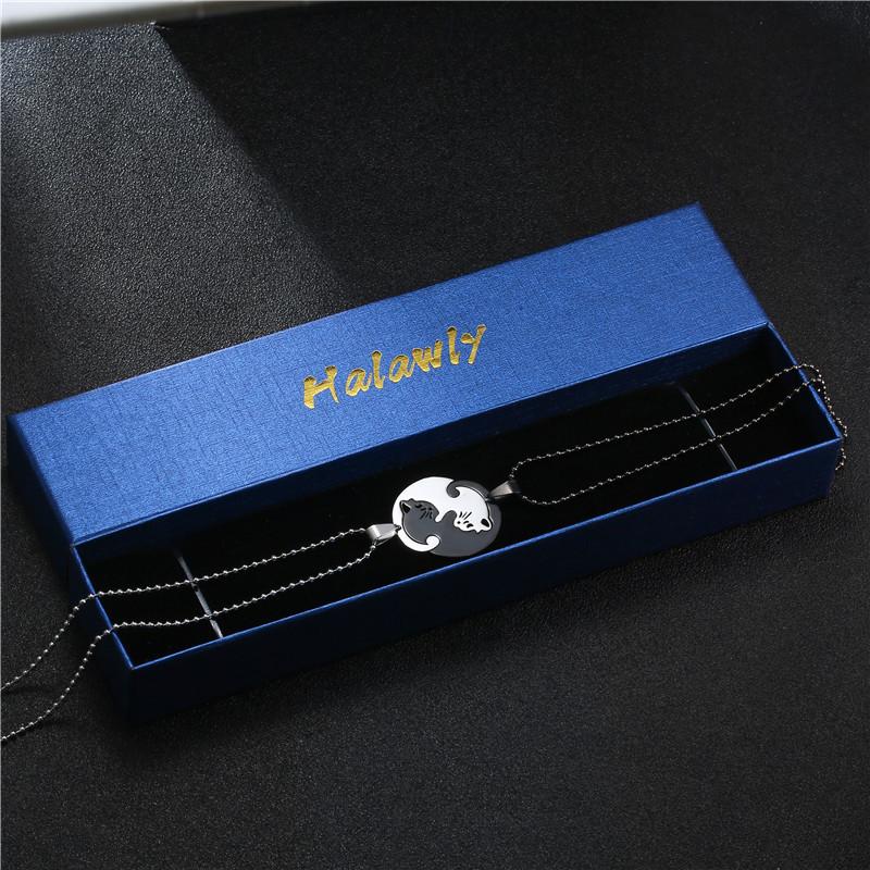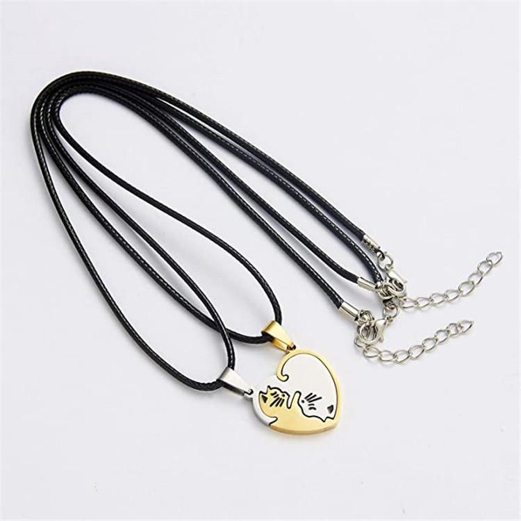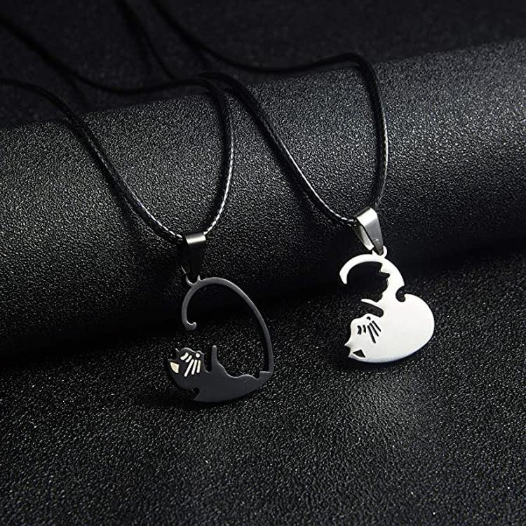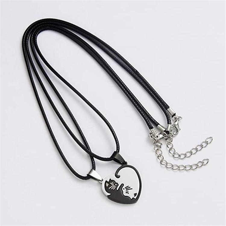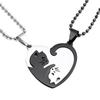 Collar de acero inoxidable con colgante de gato de comercio exterior transfronterizo, forma de corazón, simple, blanco y negro, para pareja de gatos, accesorios de joyería al por mayor