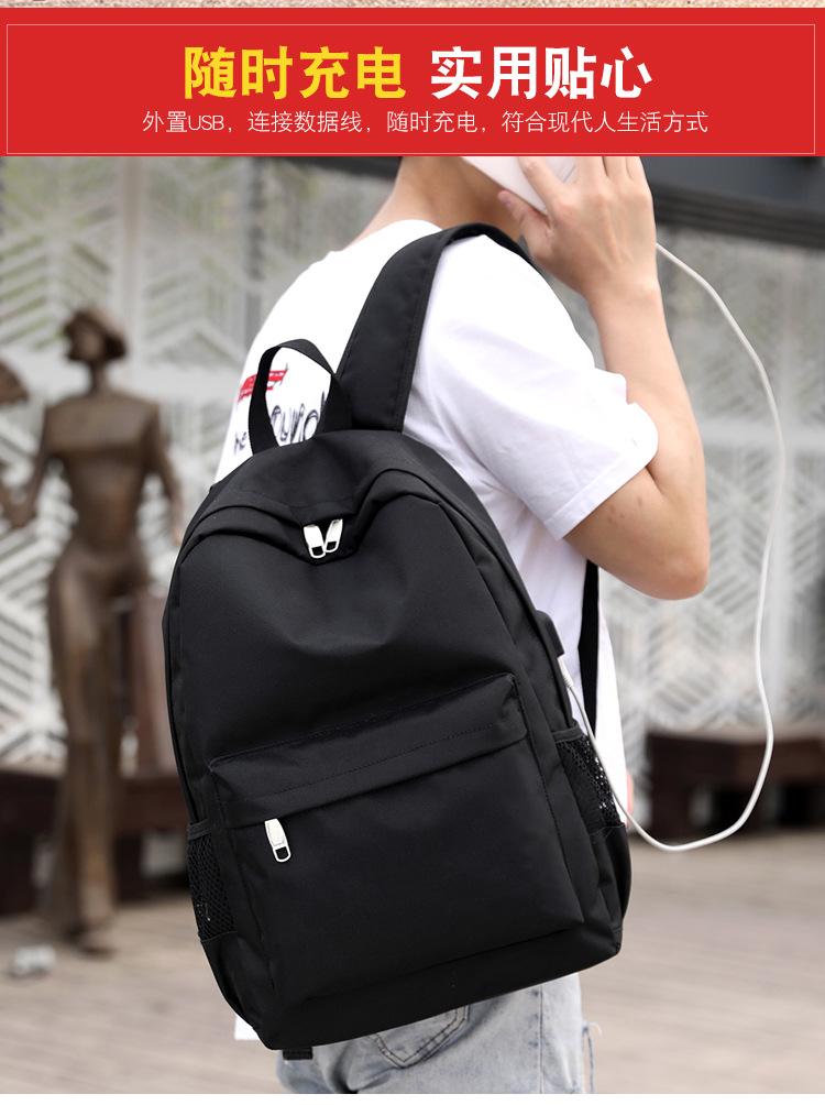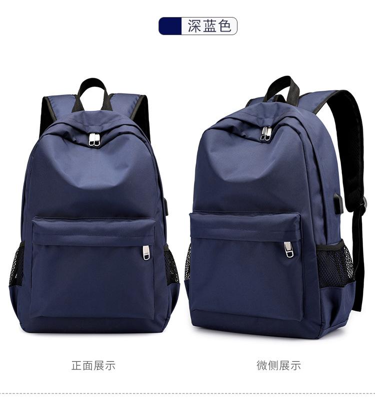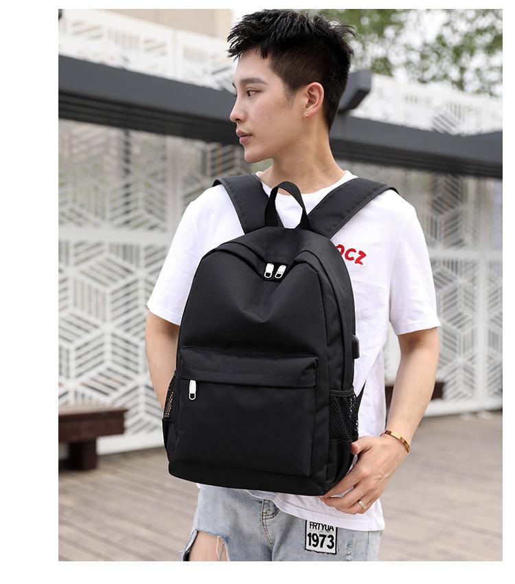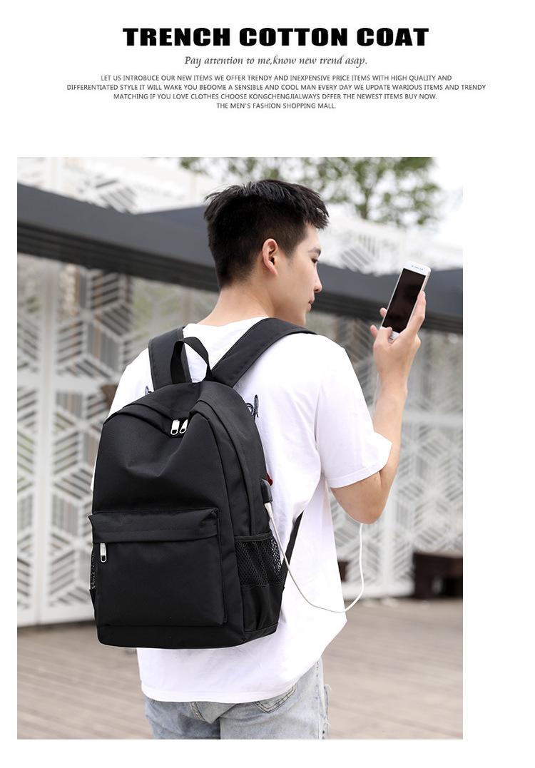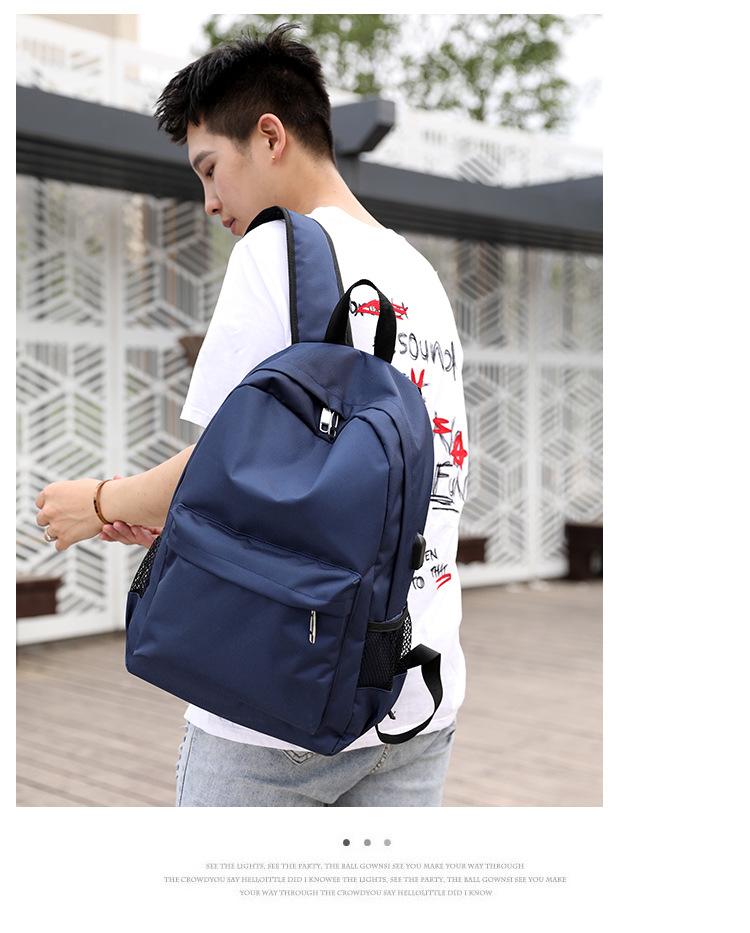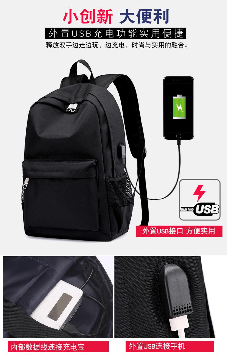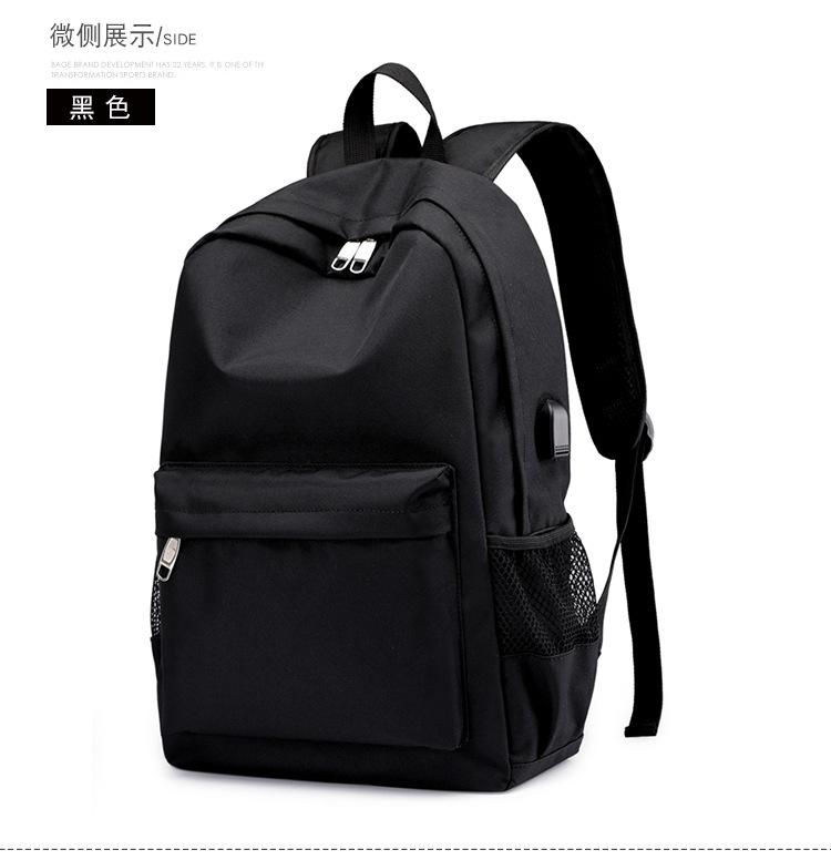 Mochila para estudiante de secundaria transfronteriza Estilo K Mochila recargable por USB Bolsa de negocios personalizada para computadora Mochila para hombre de color puro