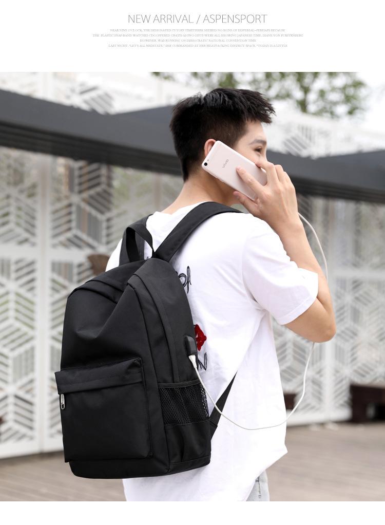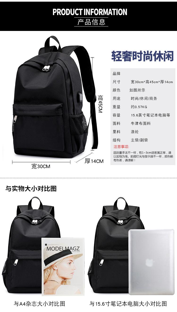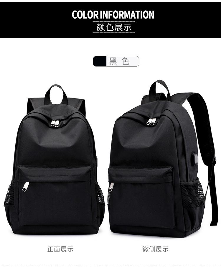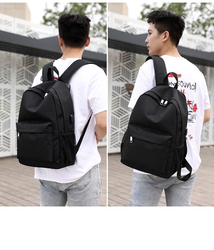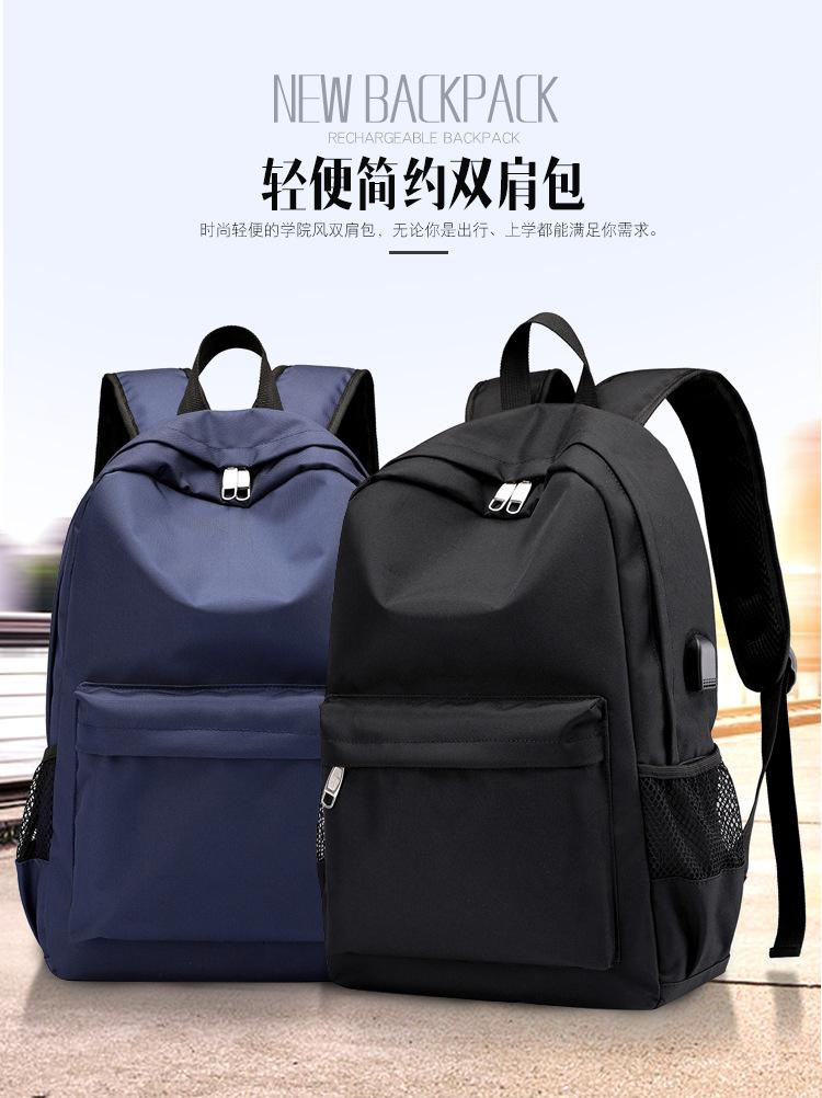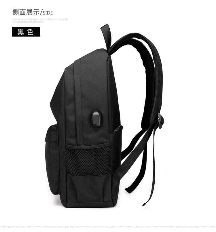 Mochila para estudiante de secundaria transfronteriza Estilo K Mochila recargable por USB Bolsa de negocios personalizada para computadora Mochila para hombre de color puro