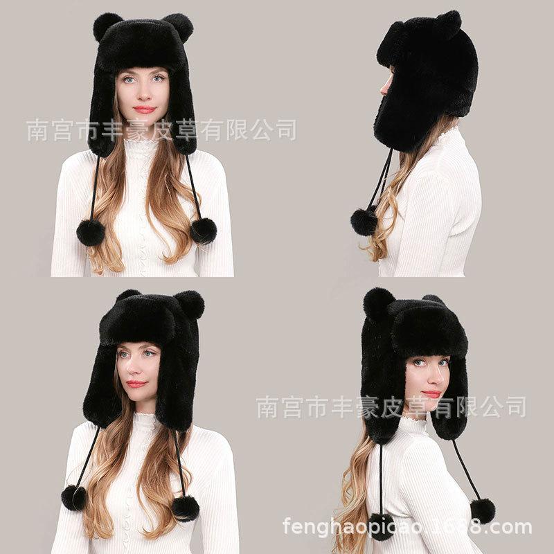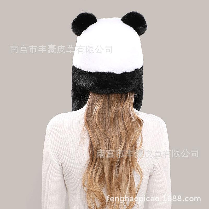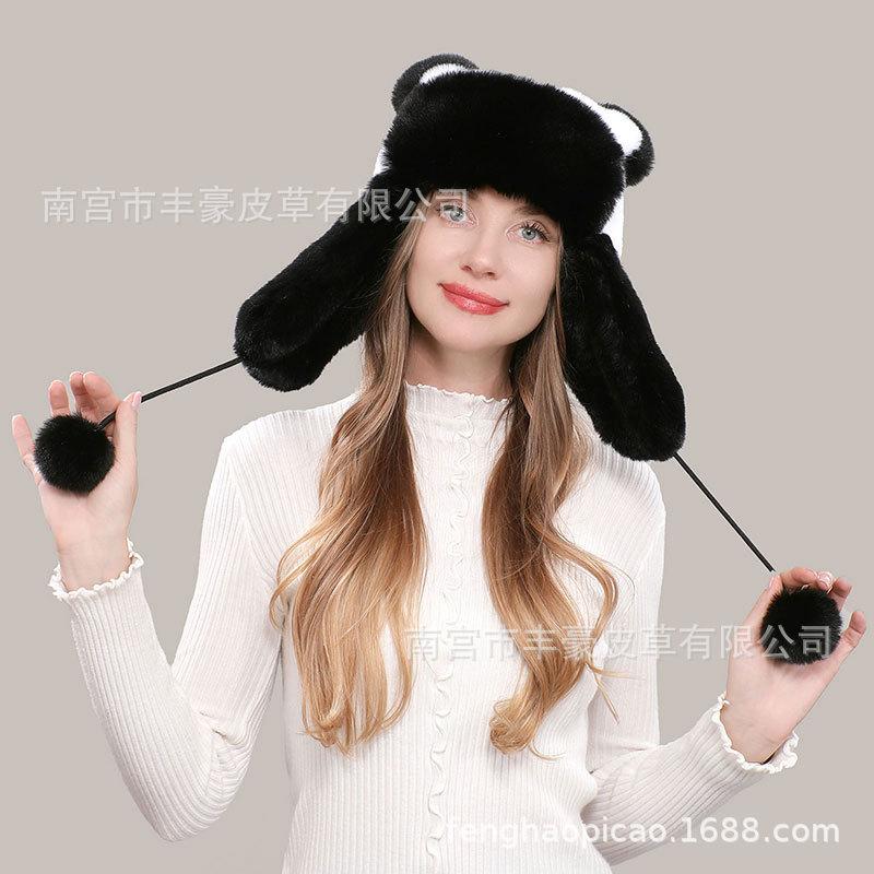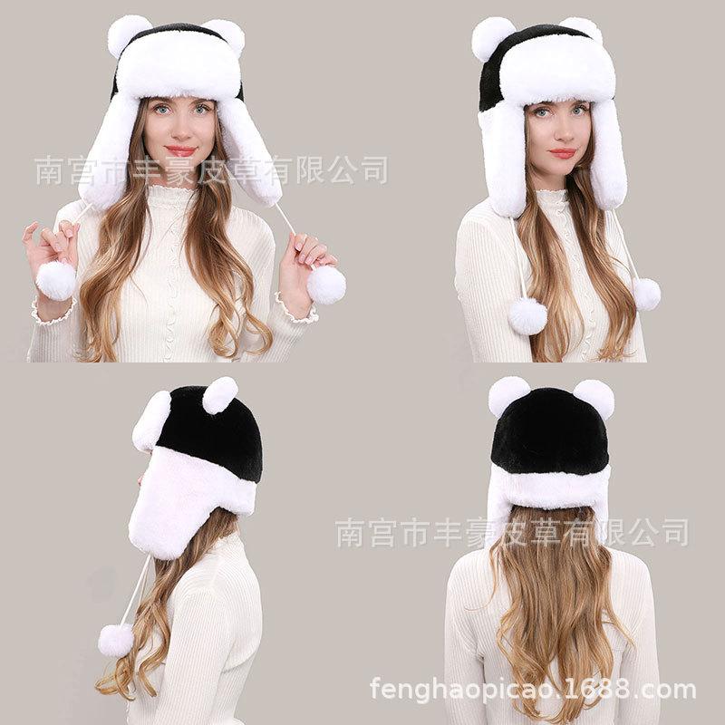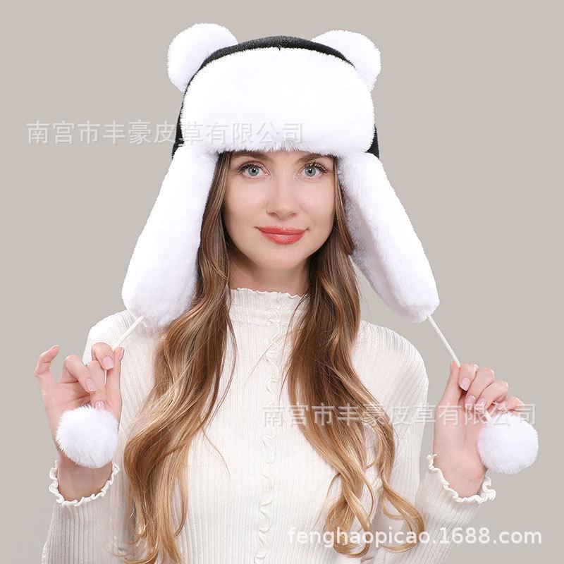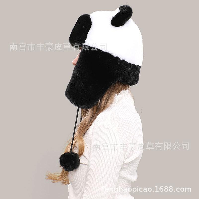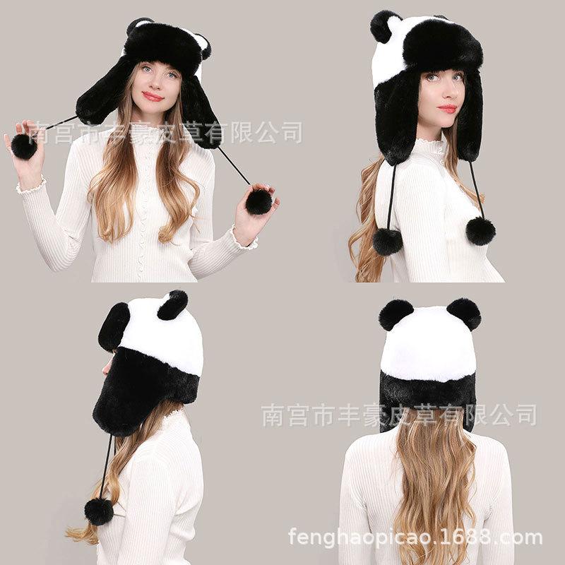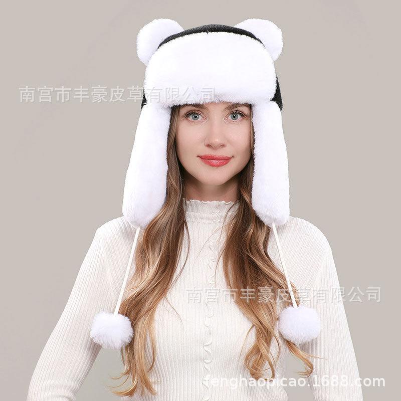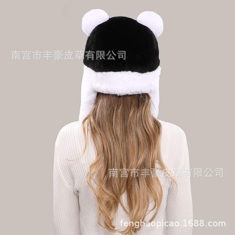 Nombre: Orejeras sombrero panda de piel sintética de conejo rex【】