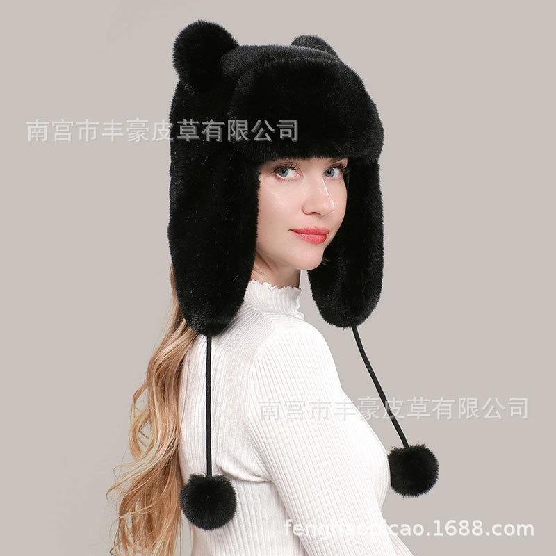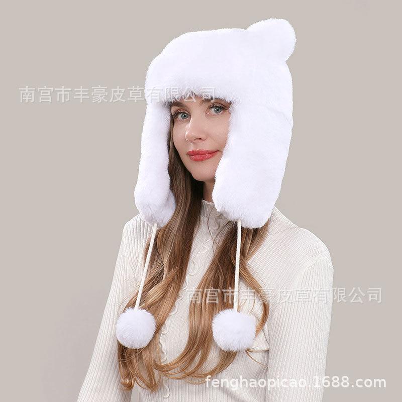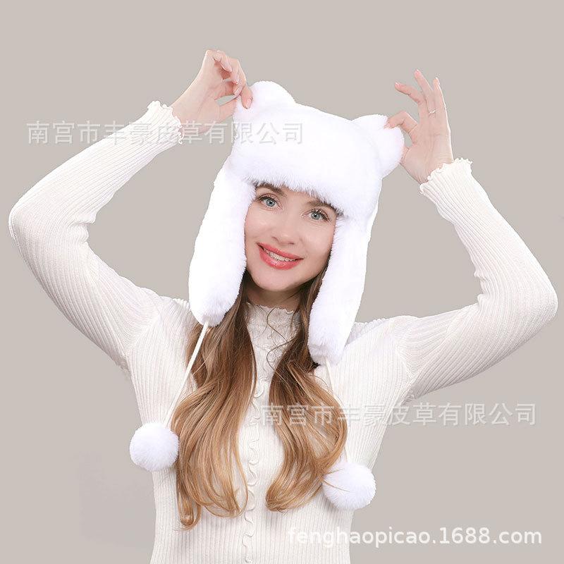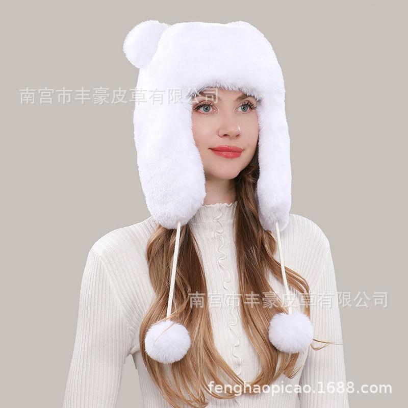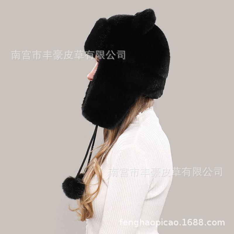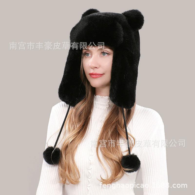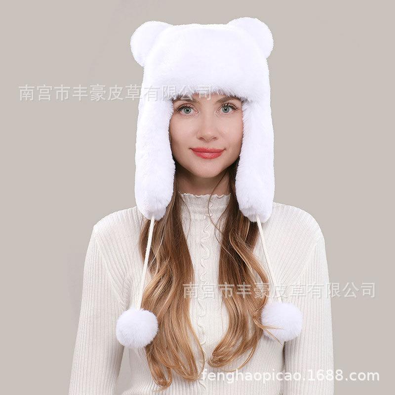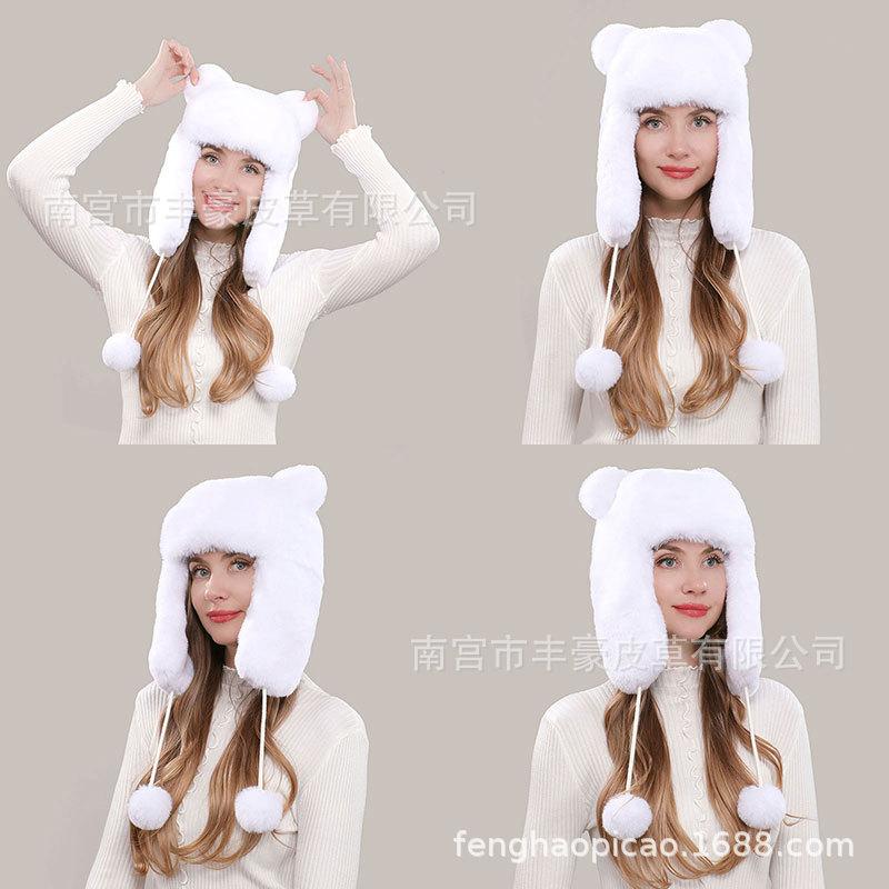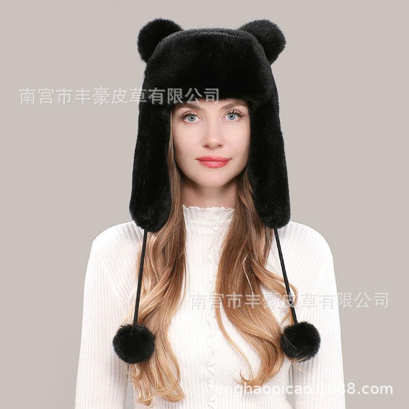 Nombre: Orejeras sombrero panda de piel sintética de conejo rex【】