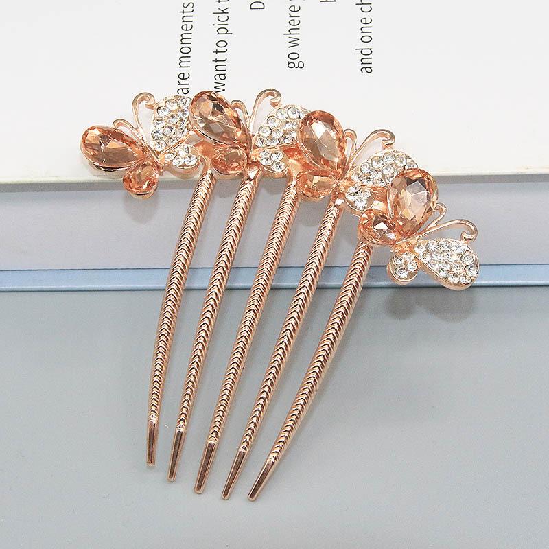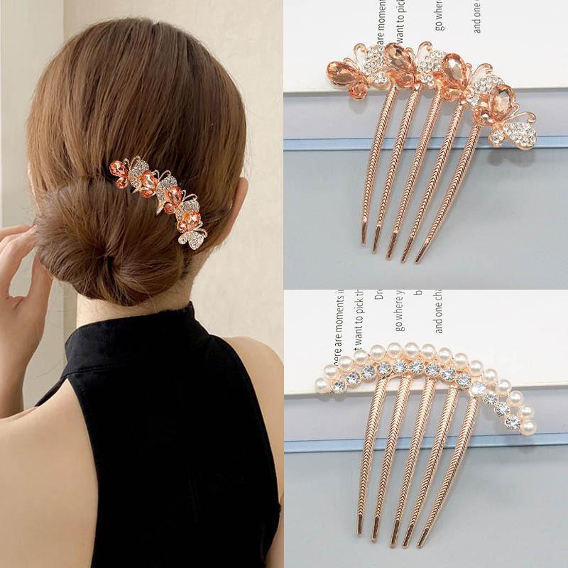 Peineta de pedrería mariposa pasador para el cabello parte trasera cabeza moño peineta temperamento flor para el cabello pasador para el cabello tocado