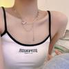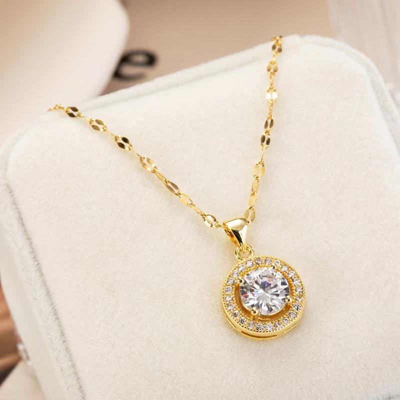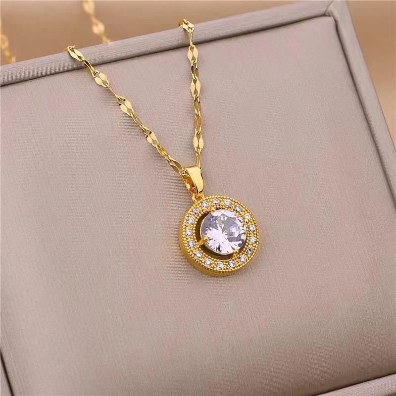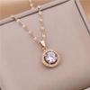 Collar con colgante de diamantes redondos de oro y circonita de moda coreana, joyería de acero de titanio, cadena de clavícula, accesorios para mujer