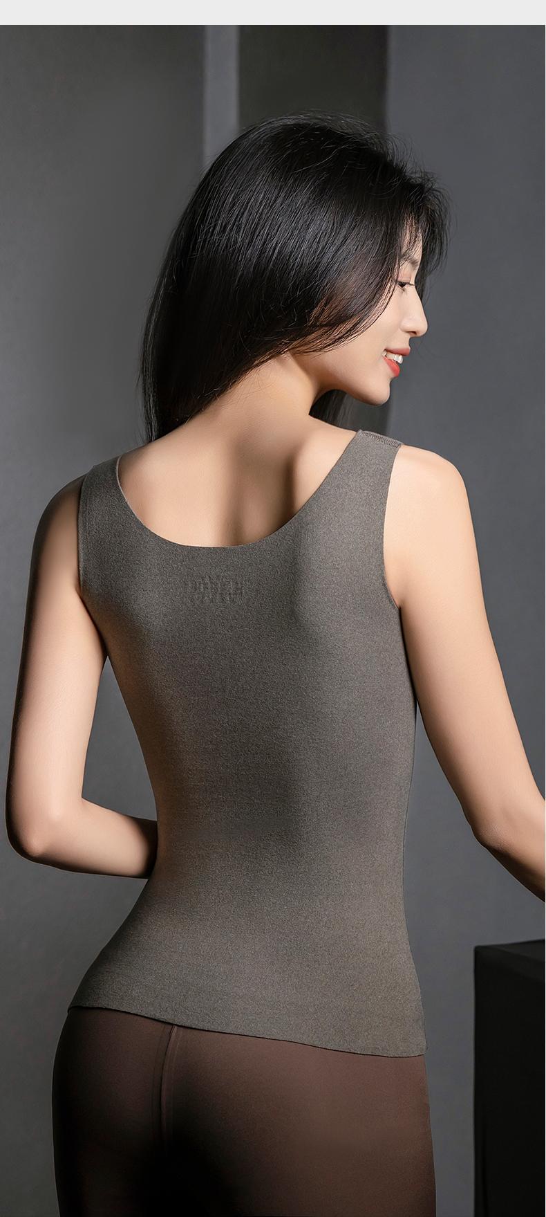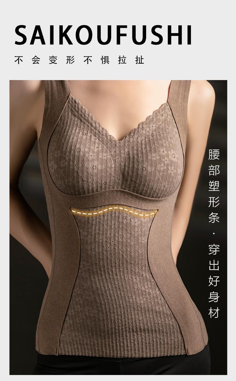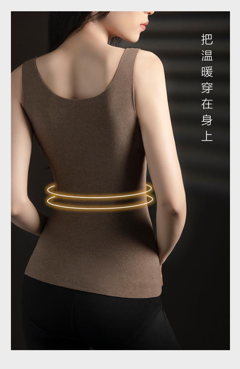 8816 Chaleco térmico forrado de vellón para dama con almohadilla para el pecho, ropa interior de terciopelo para otoño e invierno, base de cuello bajo con parte superior engrosada