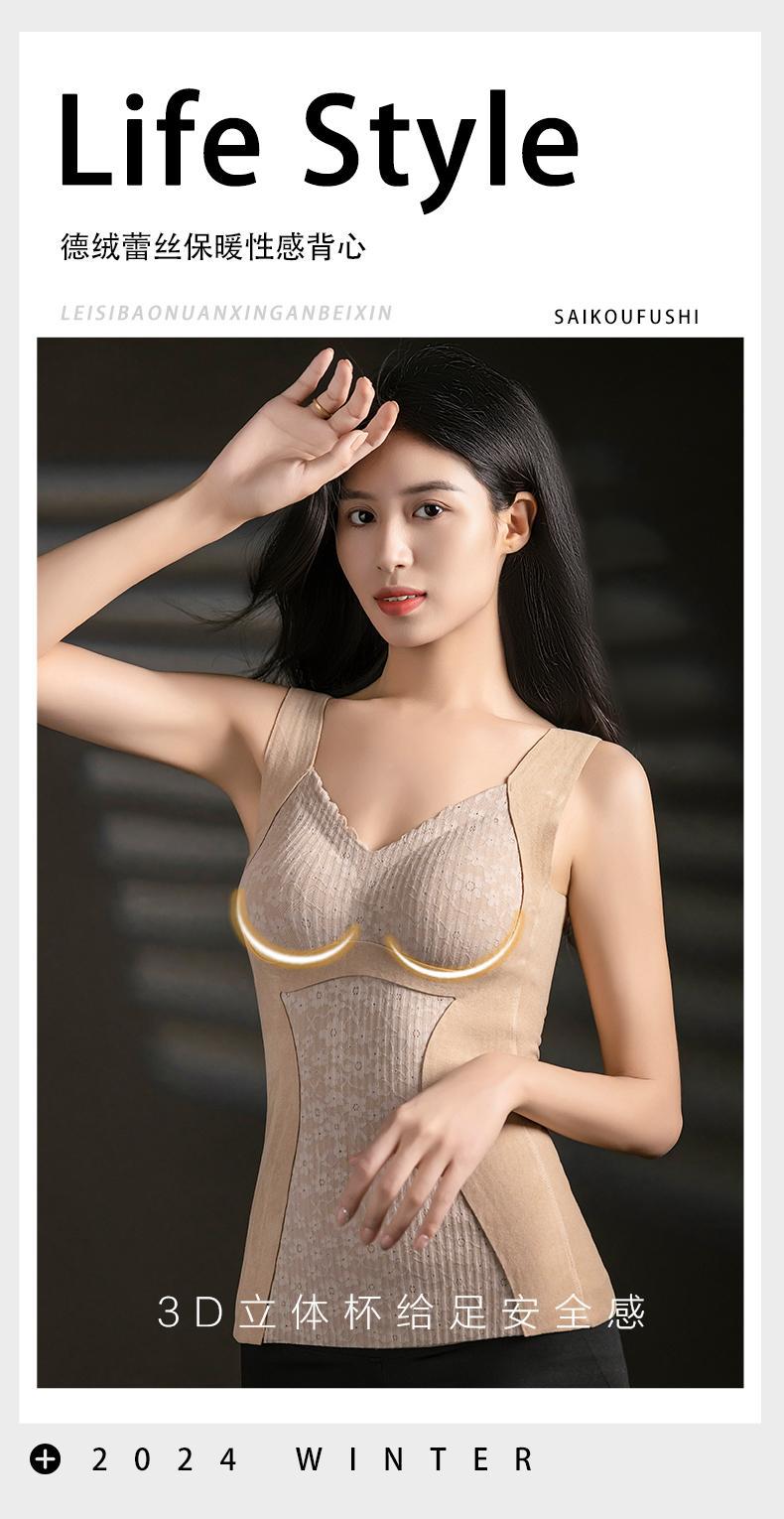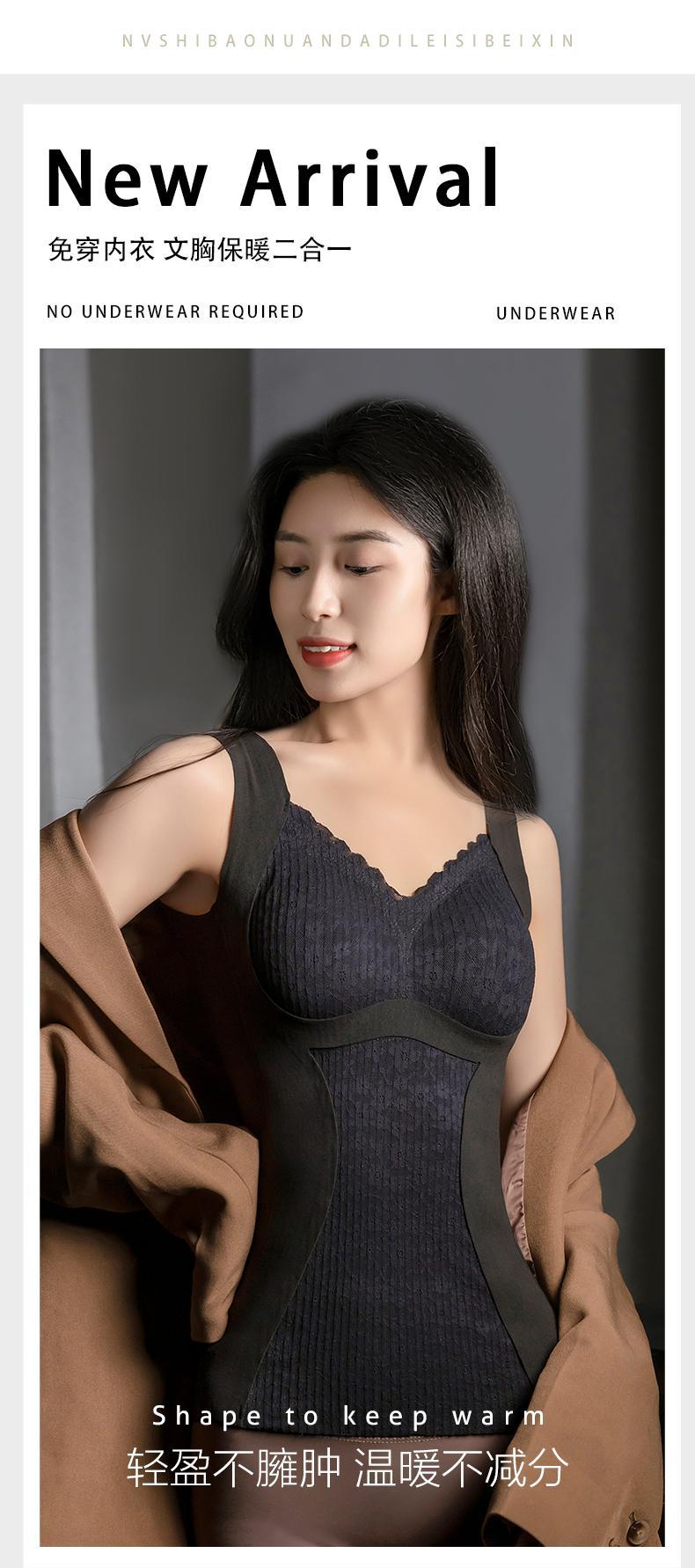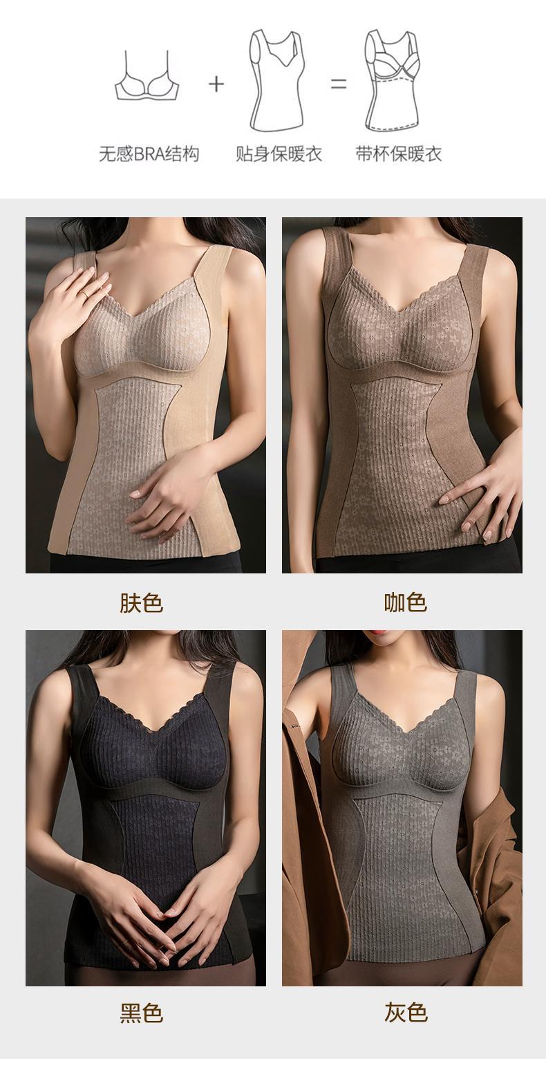 8816 Chaleco térmico forrado de vellón para dama con almohadilla para el pecho, ropa interior de terciopelo para otoño e invierno, base de cuello bajo con parte superior engrosada