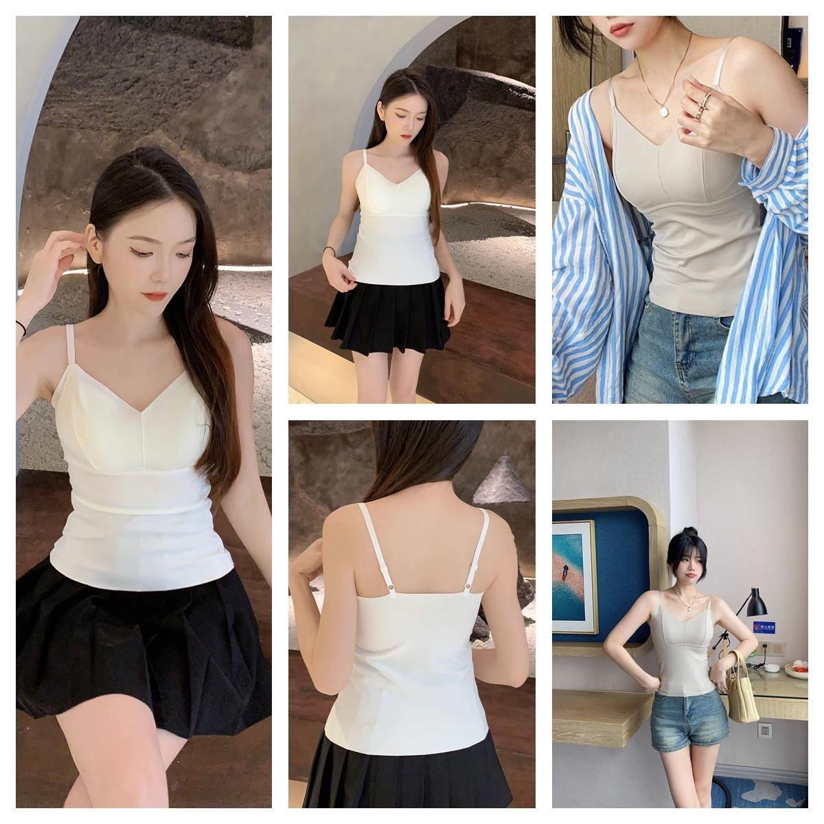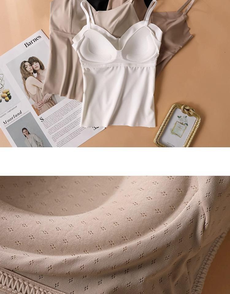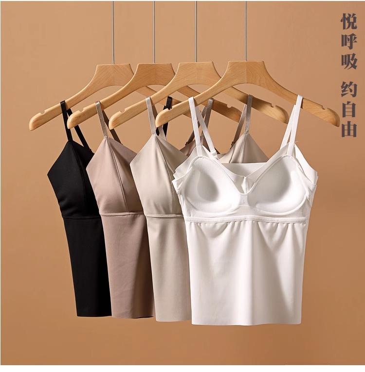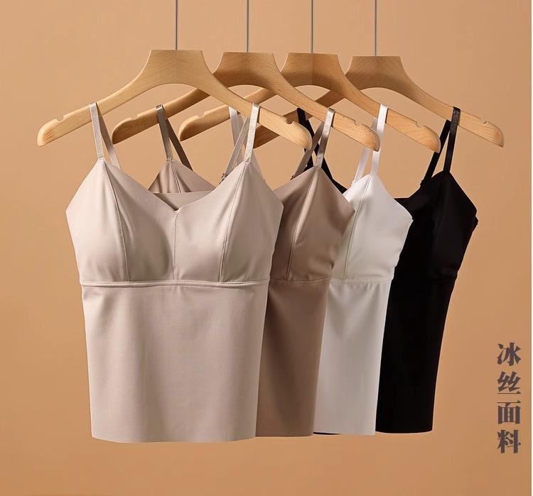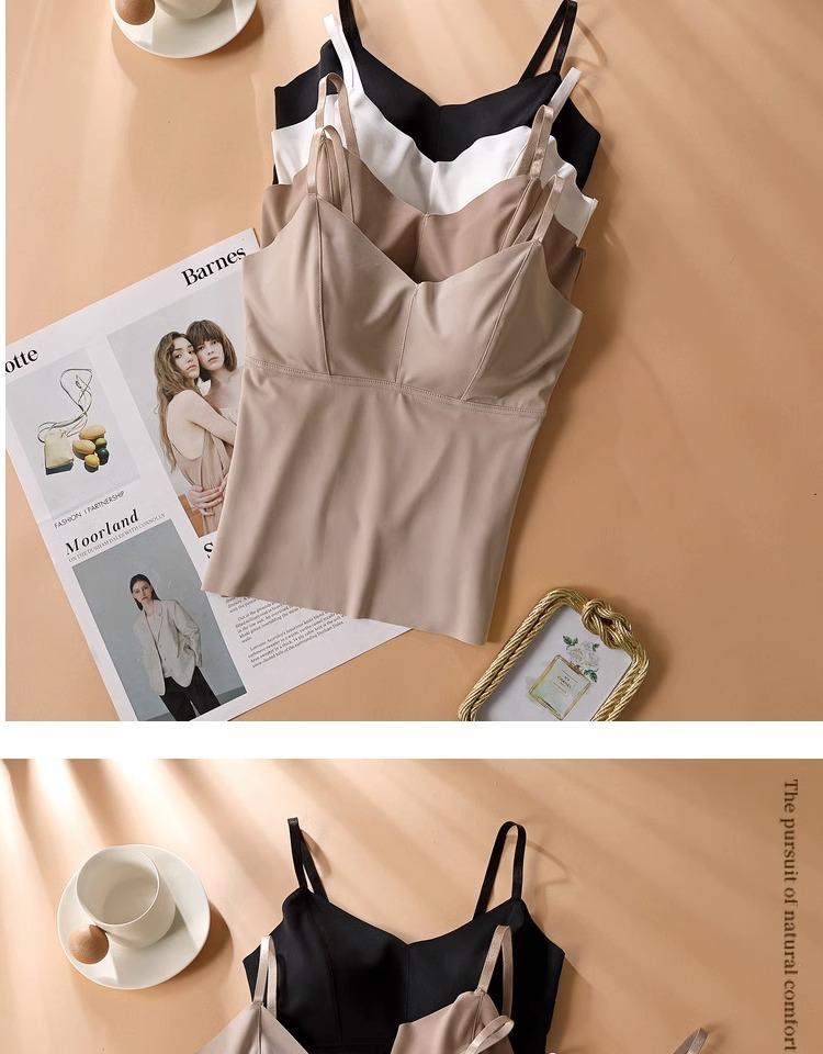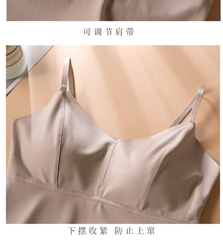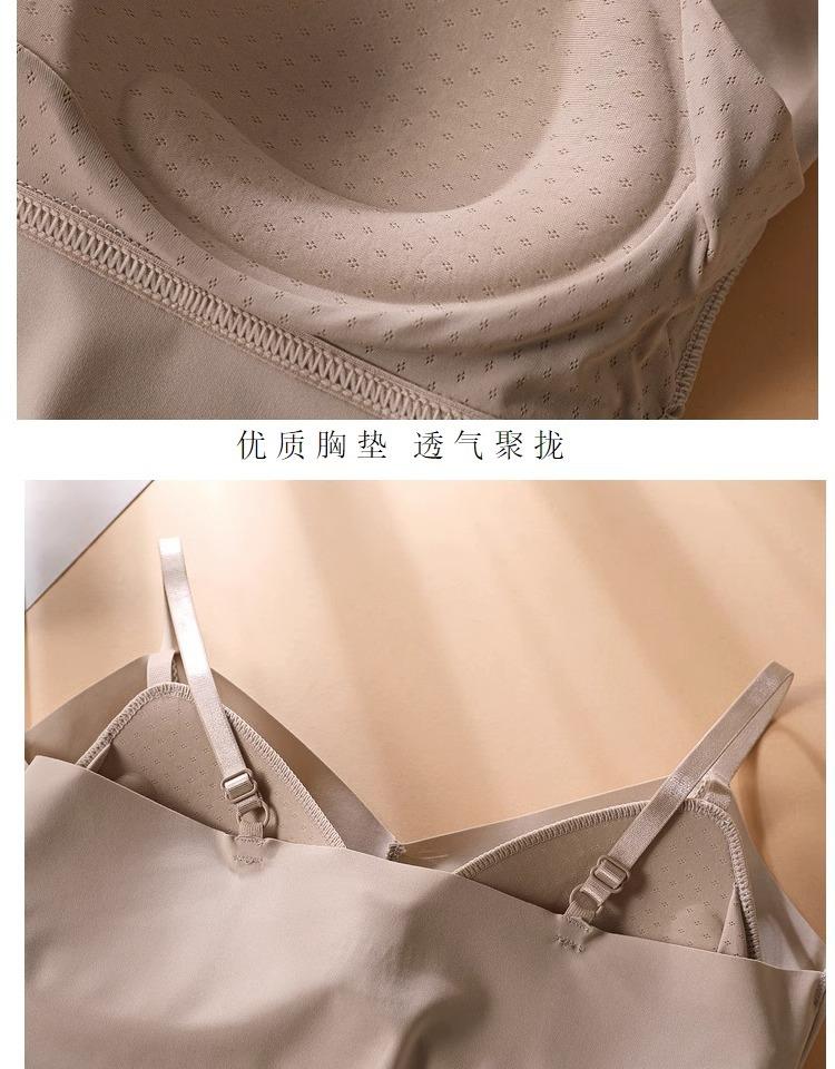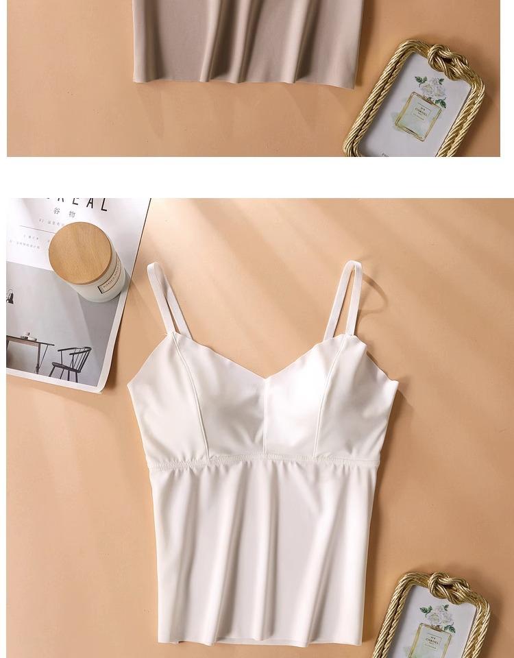 Camisola de seda de hielo para mujer, ropa interior y exterior, sujetador de una pieza, base blanca, ropa interior de verano con espalda hermosa y almohadilla para el pecho