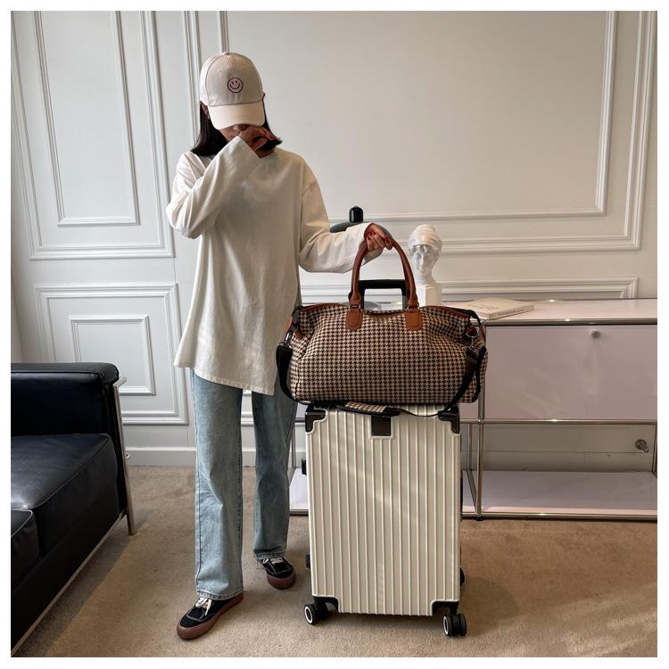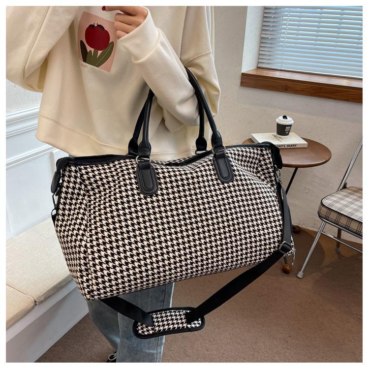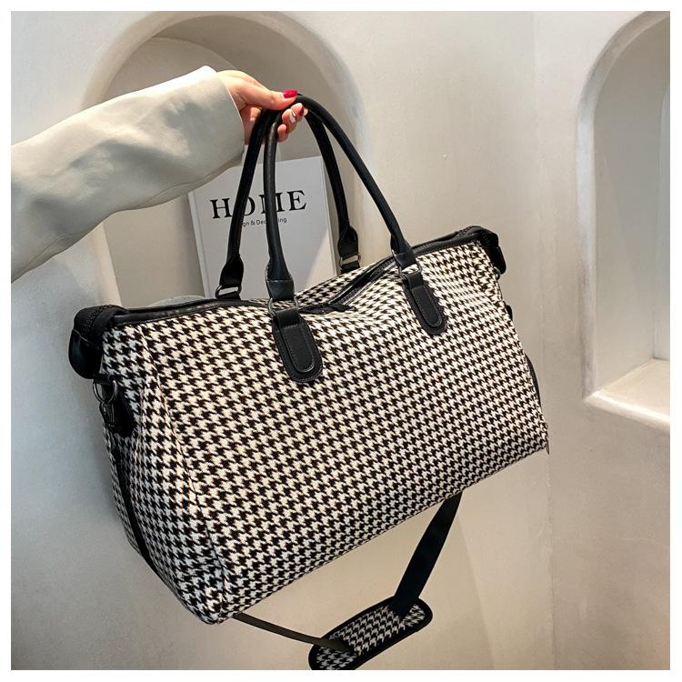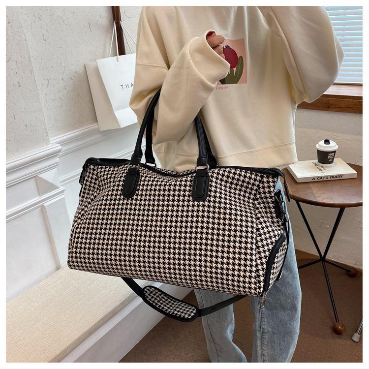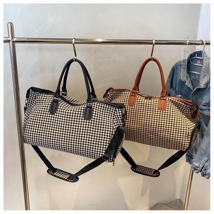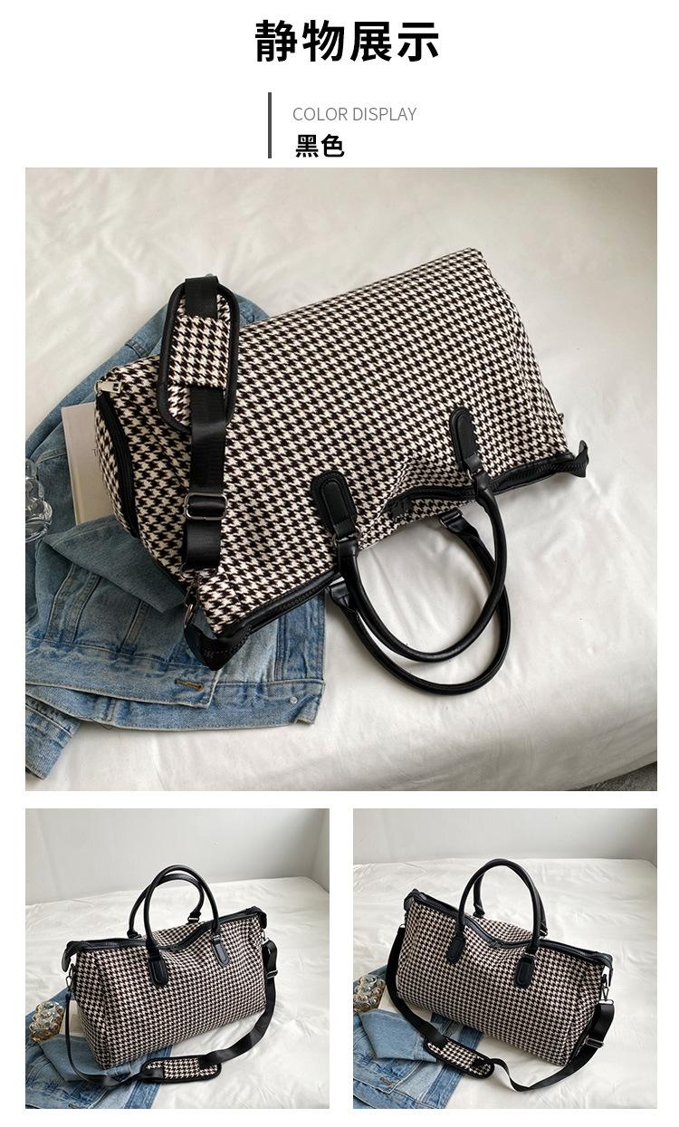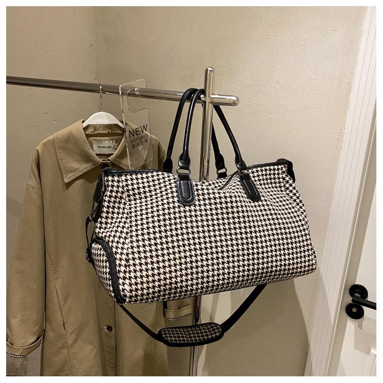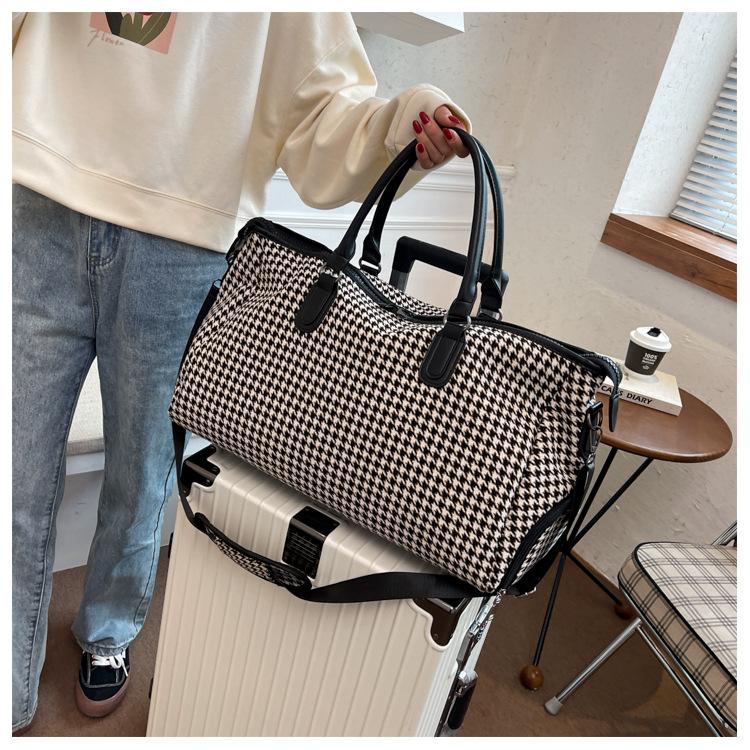 Bolsa de Viaje de Gran Capacidad con Estampado de Pata de Gallo Transfronteriza para Viajes de Negocios de Corta Distancia, Bolsa de Fitness, Almacén de Zapatos Independiente, Equipaje para Alojamiento Estudiantil