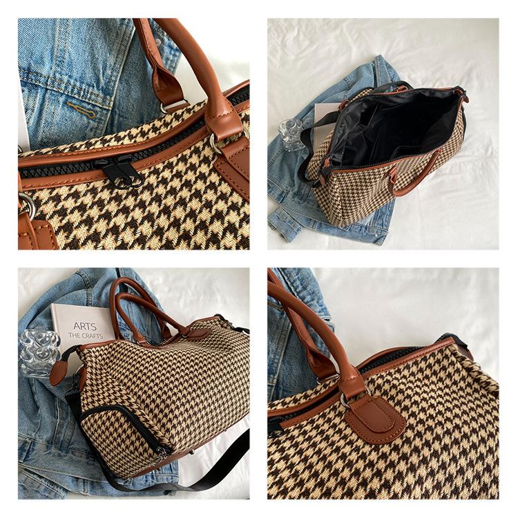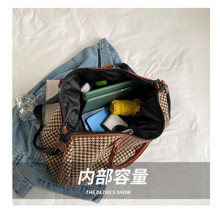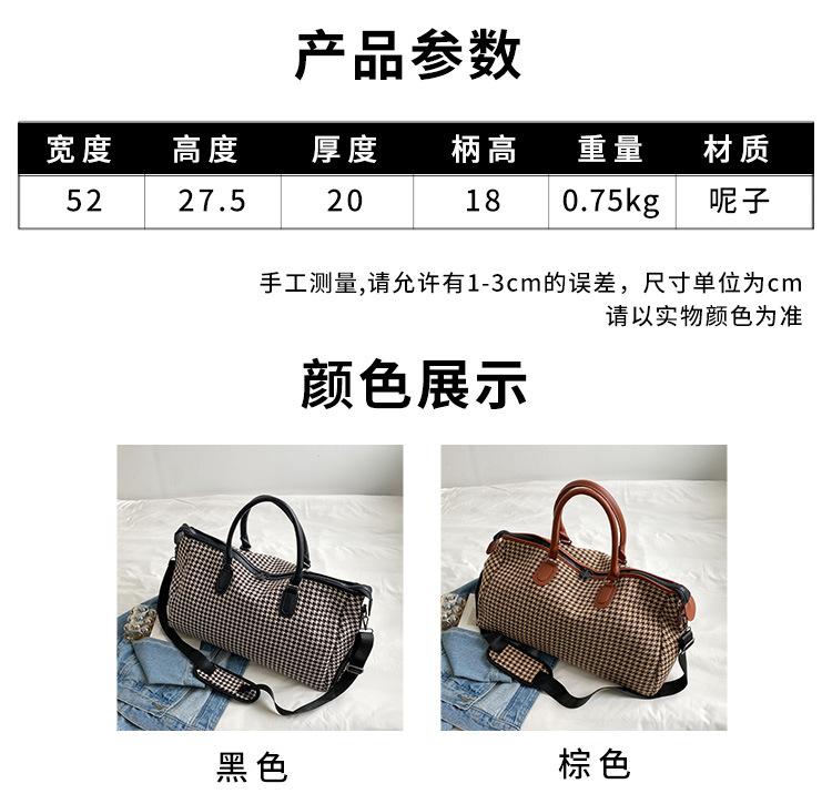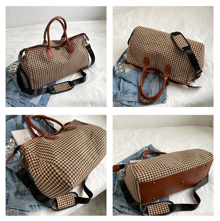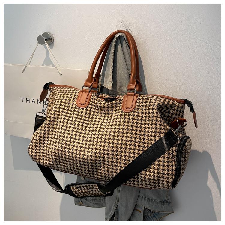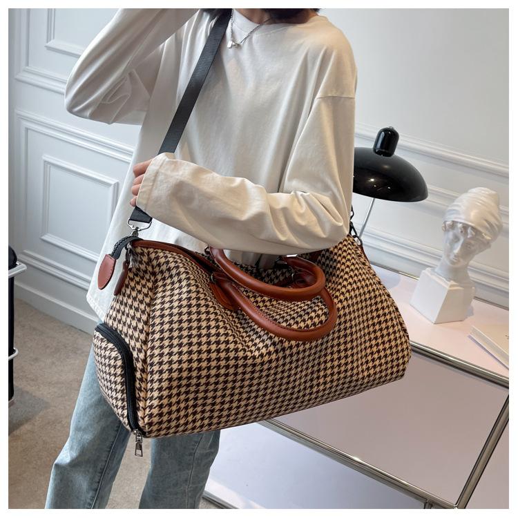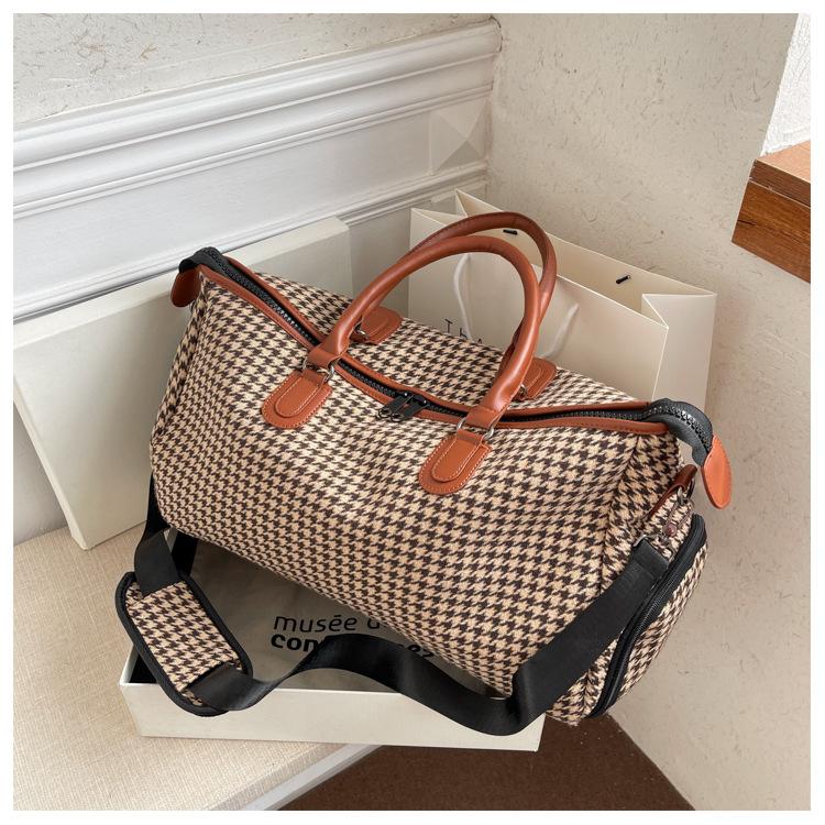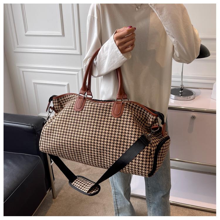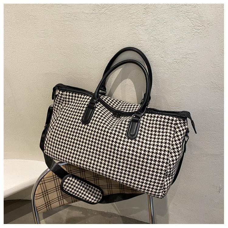 Bolsa de Viaje de Gran Capacidad con Estampado de Pata de Gallo Transfronteriza para Viajes de Negocios de Corta Distancia, Bolsa de Fitness, Almacén de Zapatos Independiente, Equipaje para Alojamiento Estudiantil