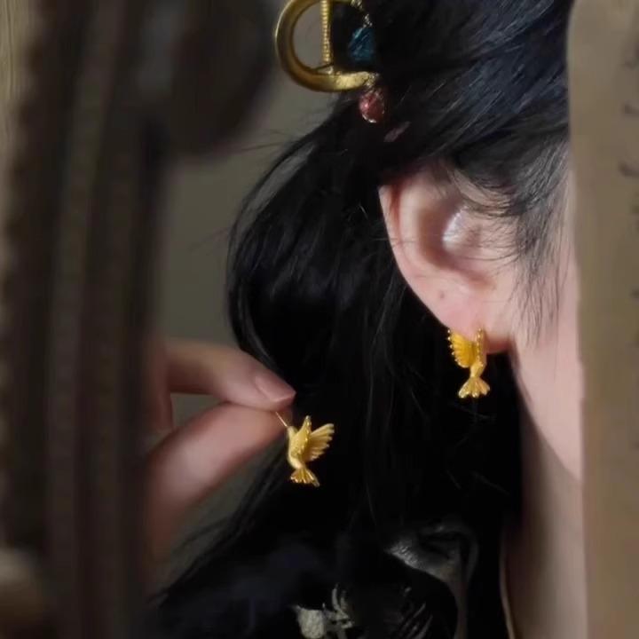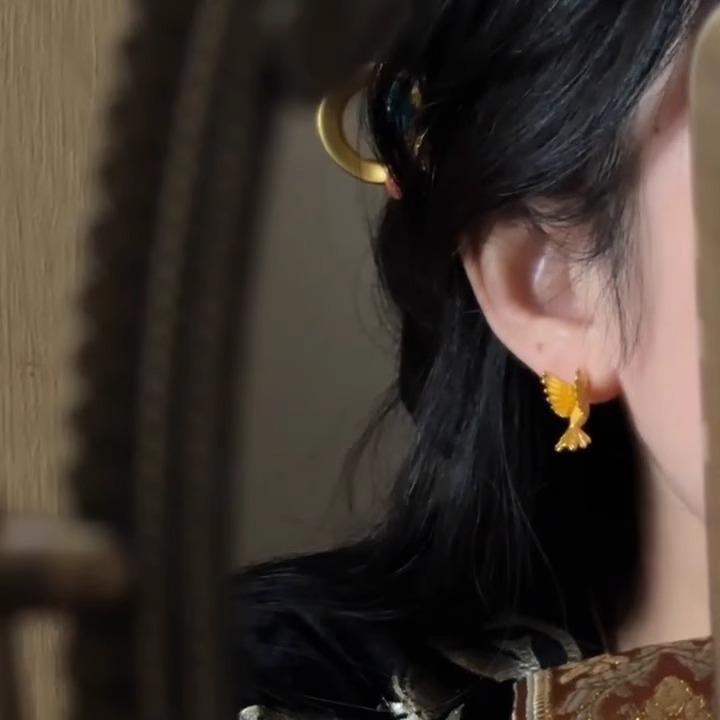 Pendientes de pájaro dorados para mujer, diseño de nicho, ligeros, de lujo, de alta gama, retro, vintage, de la época medieval.
