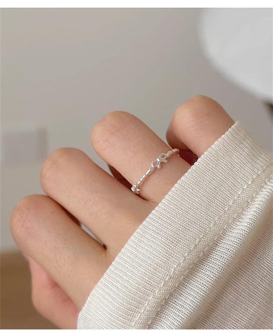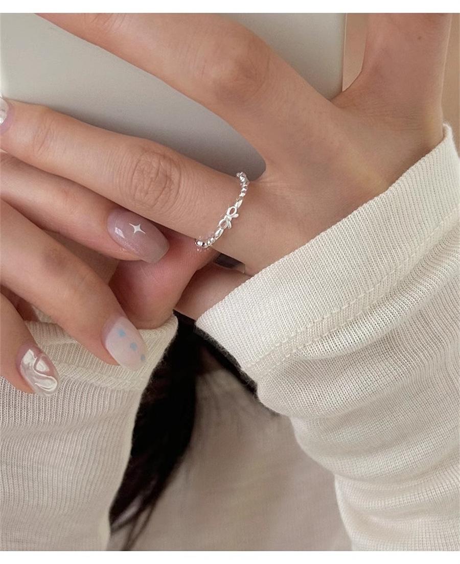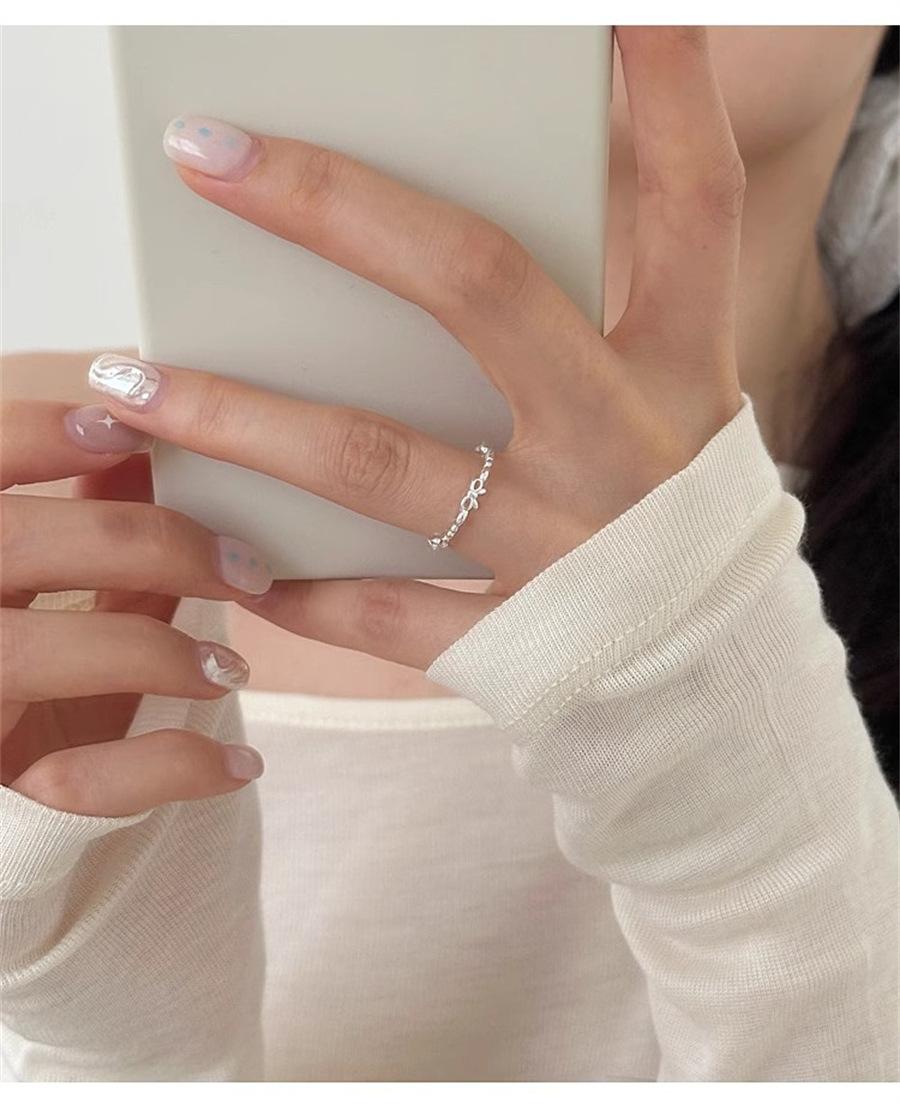 Anillo de Flores Frescas Estilo Japonés y Coreano para Mujer Plata de Ley s925 Lazo Anillo Liso Anillo para Dedo Anillo Niche Simple Abierto