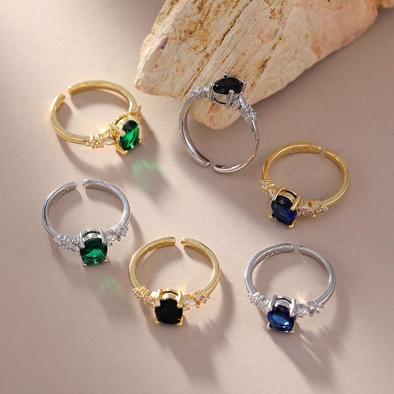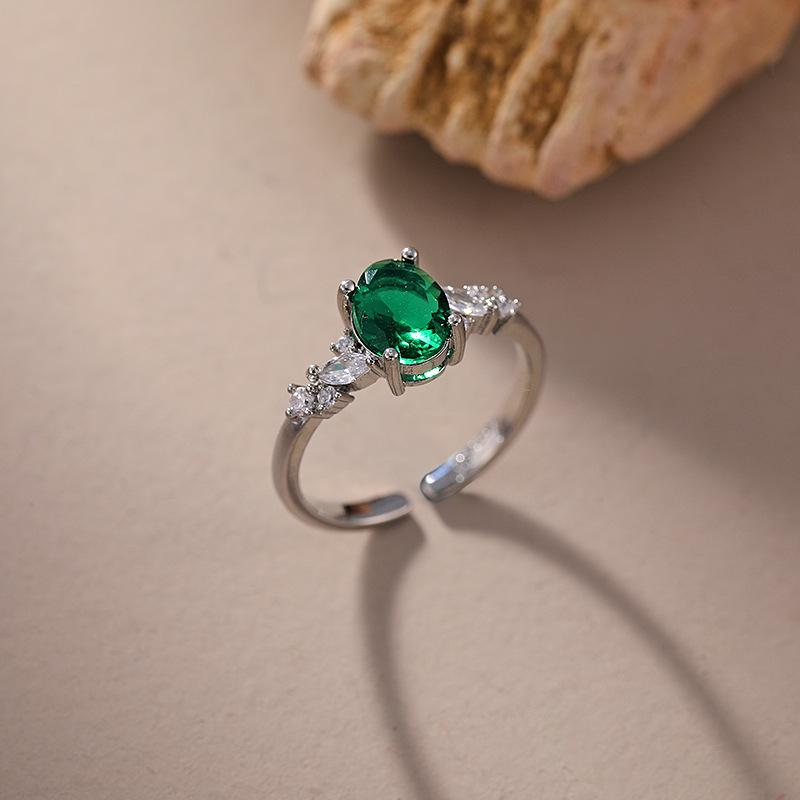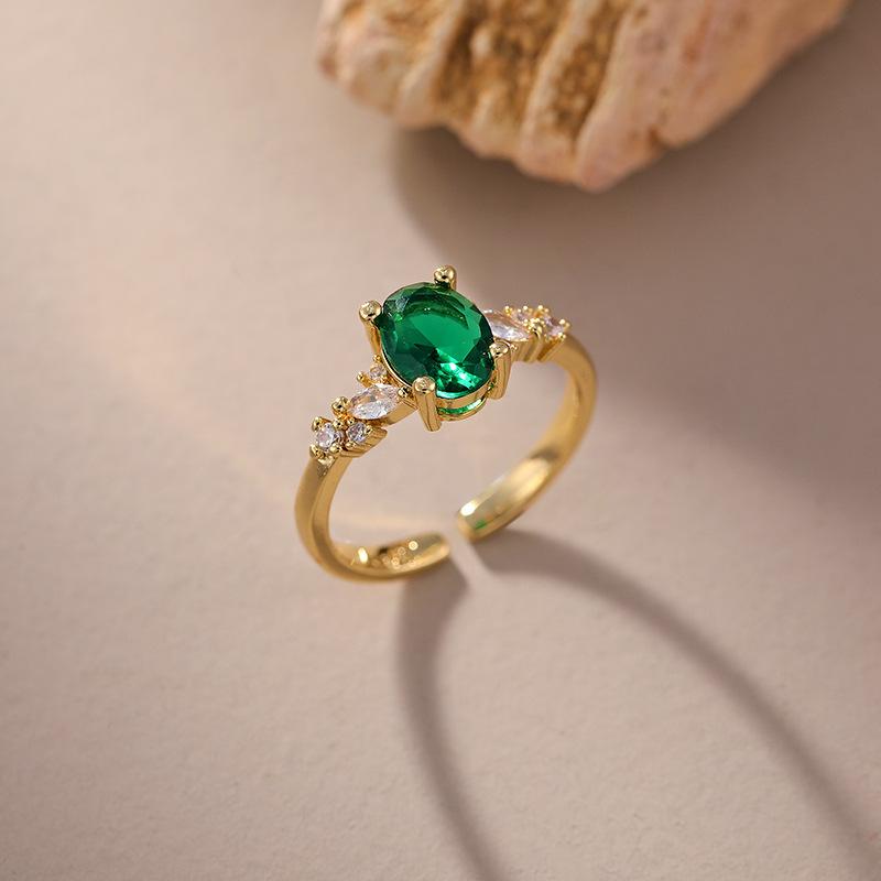 Anillo Retro Europeo y Americano Oro Imitación Esmeralda Anillo Abierto para Mujer Temperamento Anillo de Diamante de Simulación de Moissanita Verde