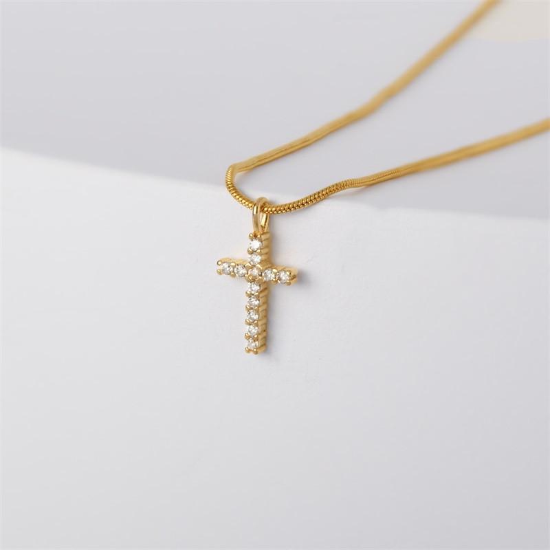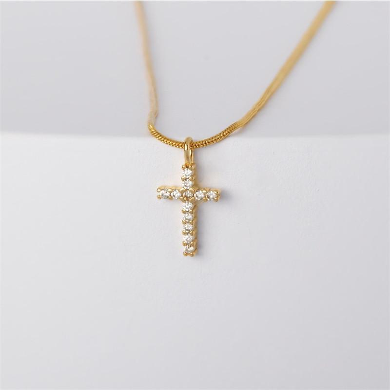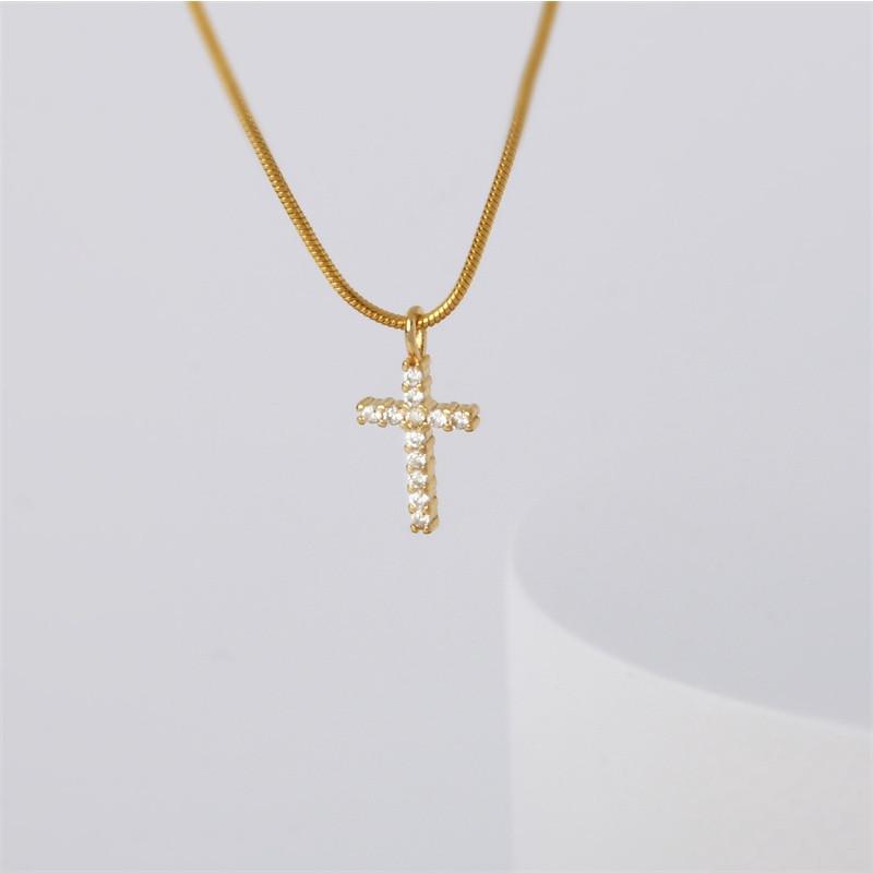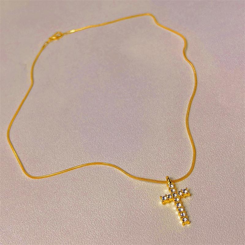 Collar con colgante de cruz de diamantes simple, elegante y corto, estilo transfronterizo europeo y americano, para clavícula de celebridades de Internet.