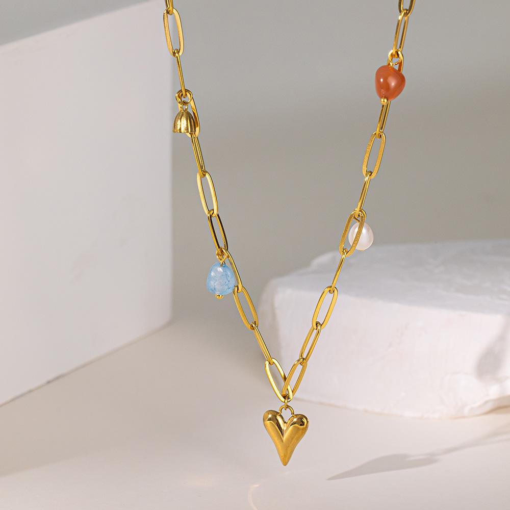 Estilo Francés Alto Corazón Frío Color Perla Piedra Colgante de Piedra Natural Cadena Clavícula Collar Transfronterizo Joyería Mejor Amigo de la Chica Regalo