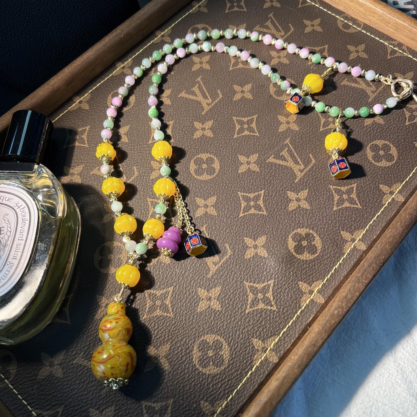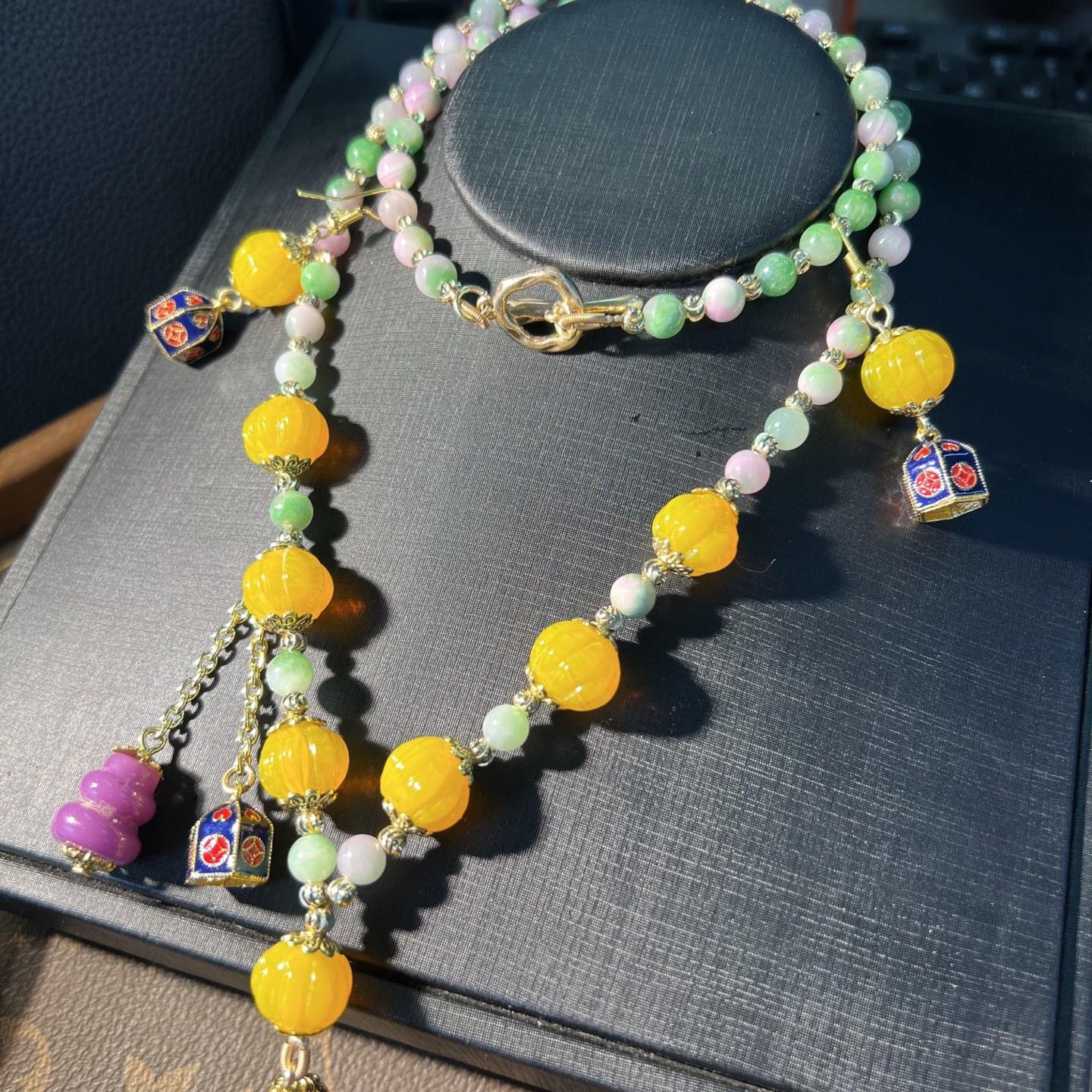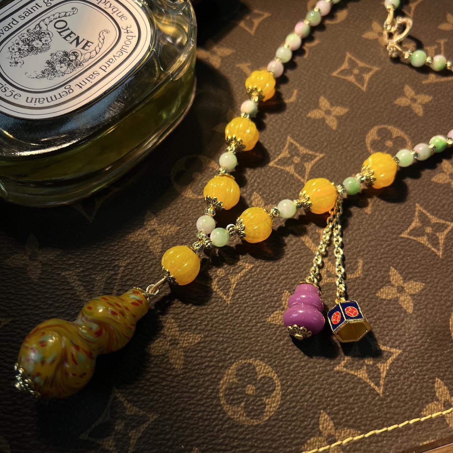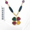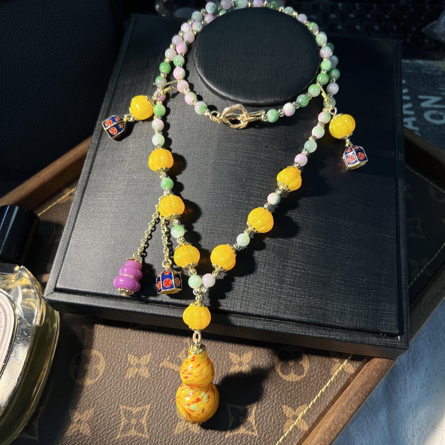 [Honey South] Suéter con cadena de calabaza de cristal de turmalina exquisita de moda vintage, collar y pendientes tipo Joker.