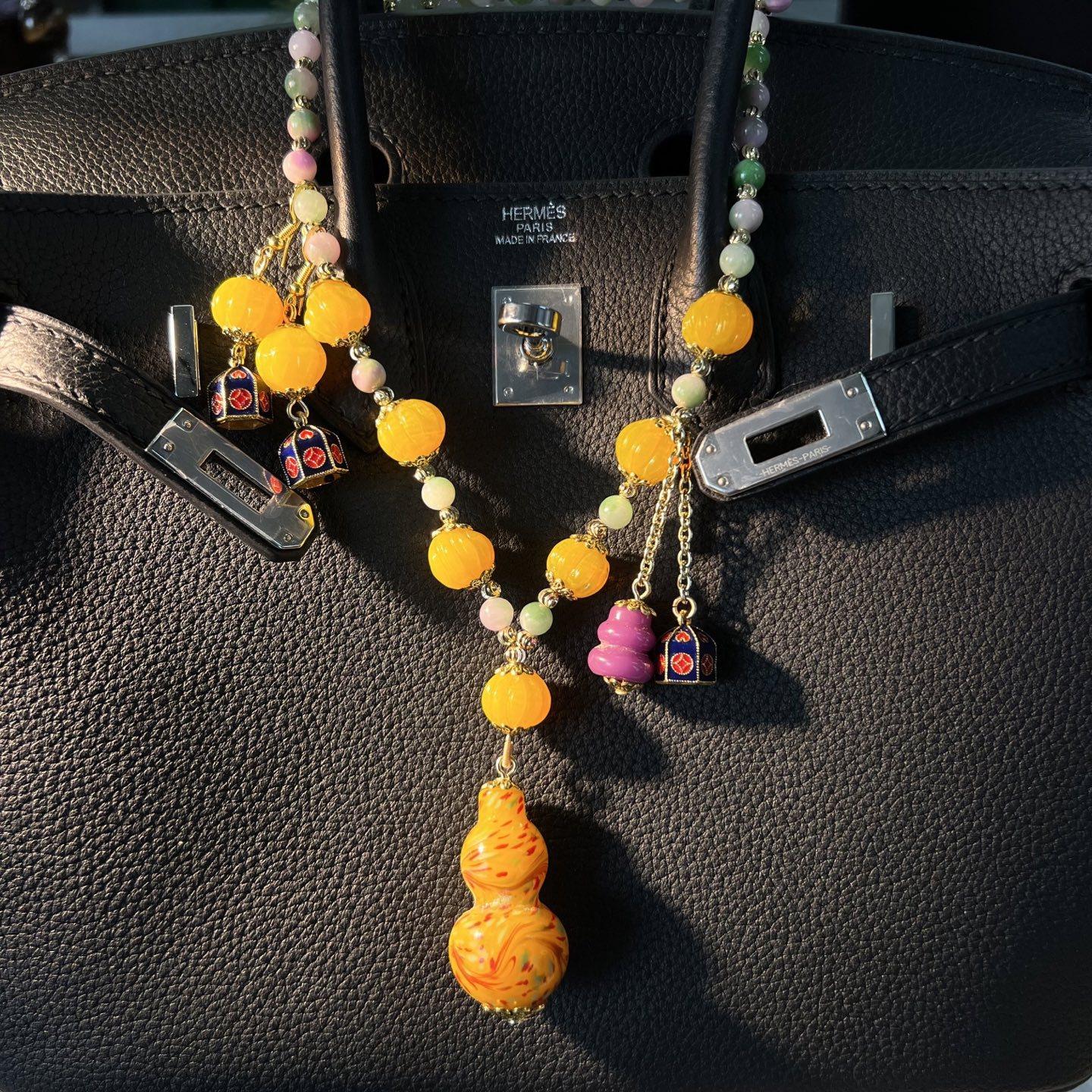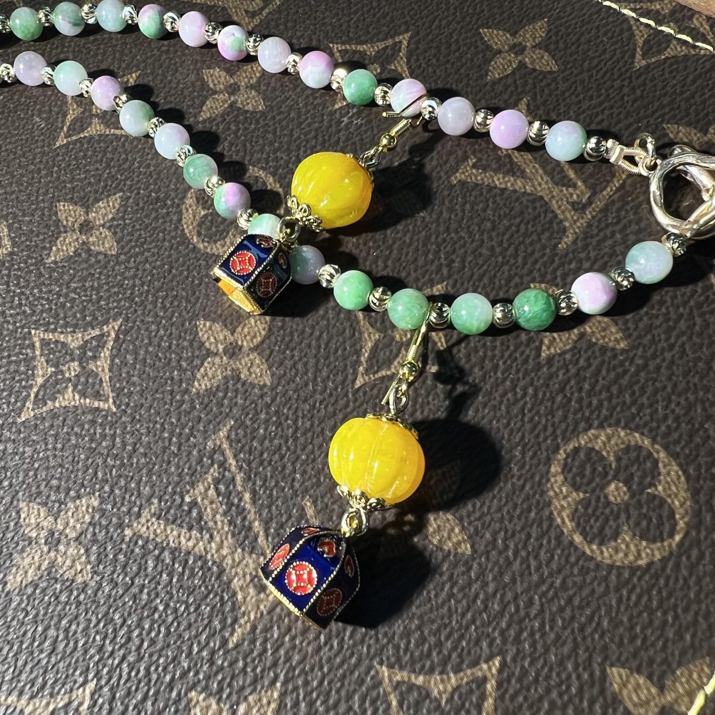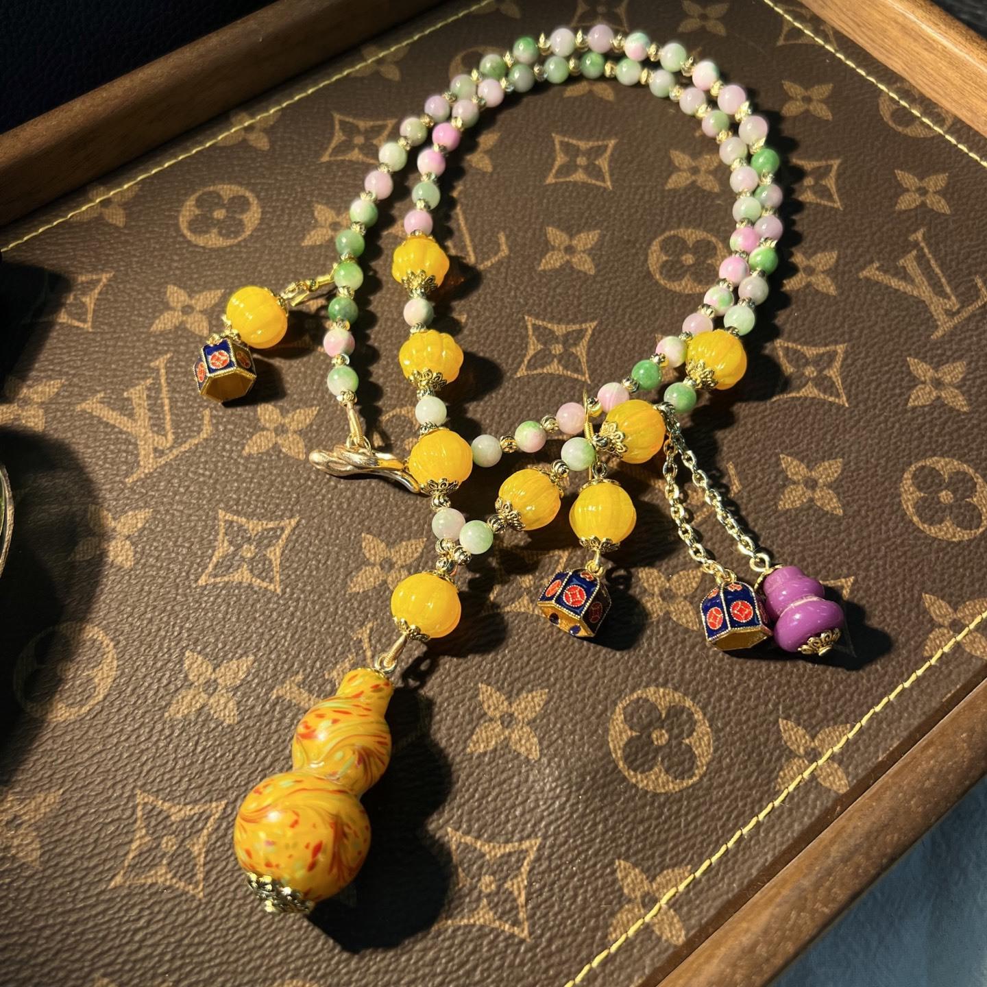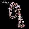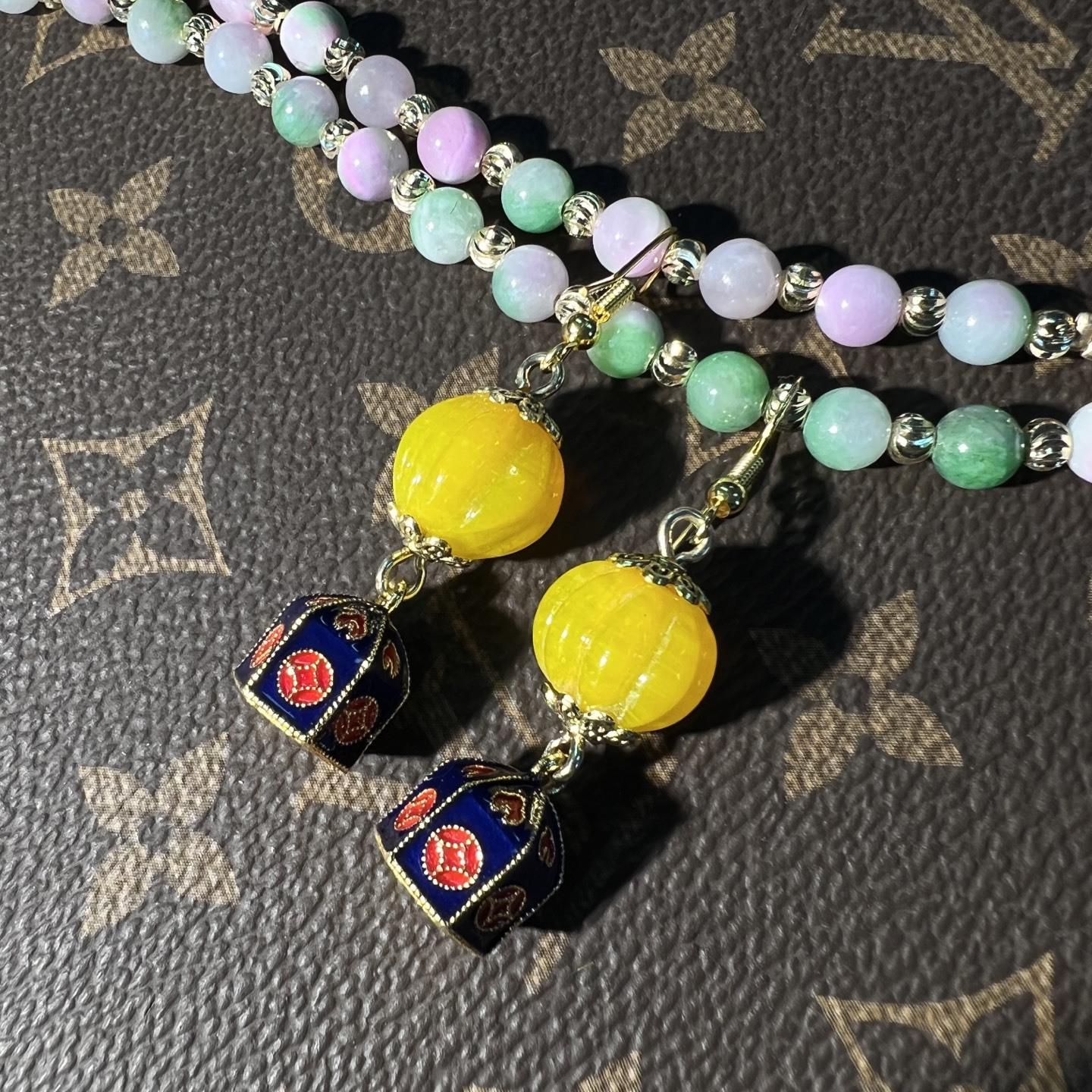 [Honey South] Suéter con cadena de calabaza de cristal de turmalina exquisita de moda vintage, collar y pendientes tipo Joker.