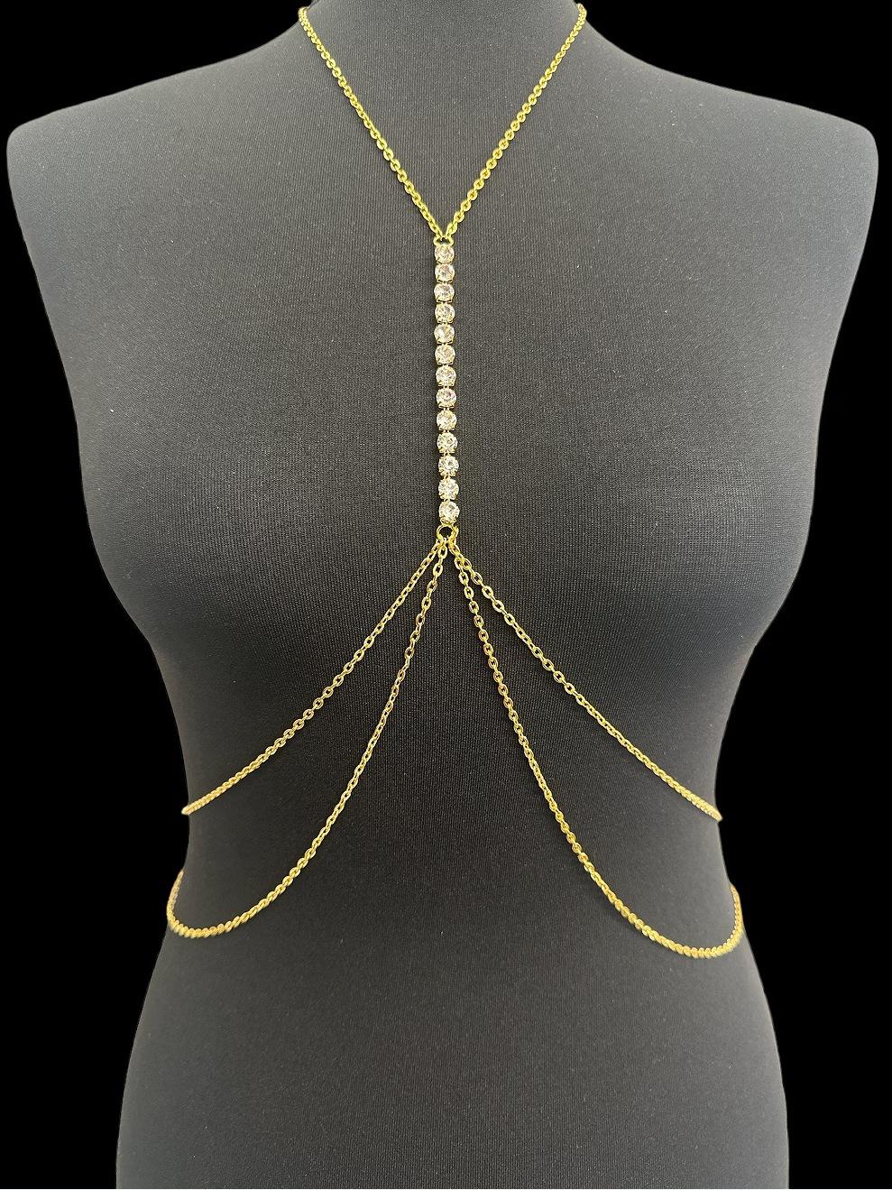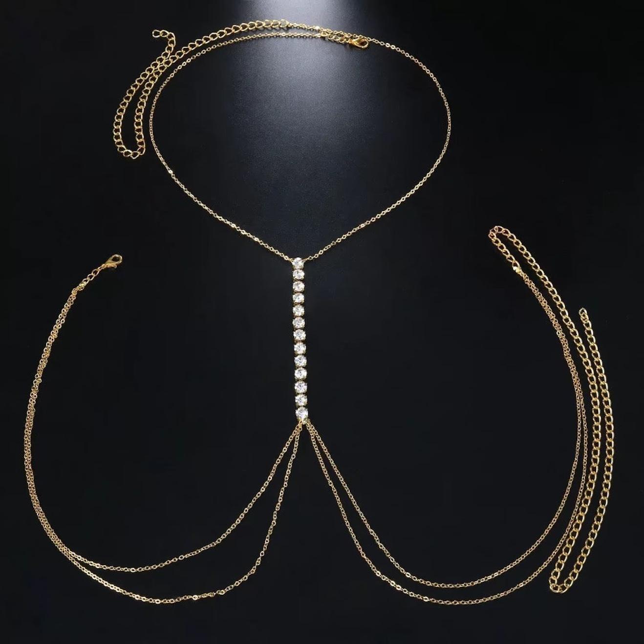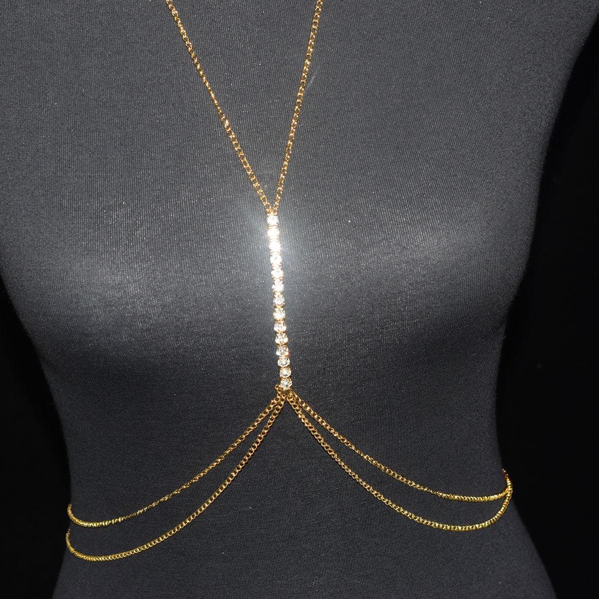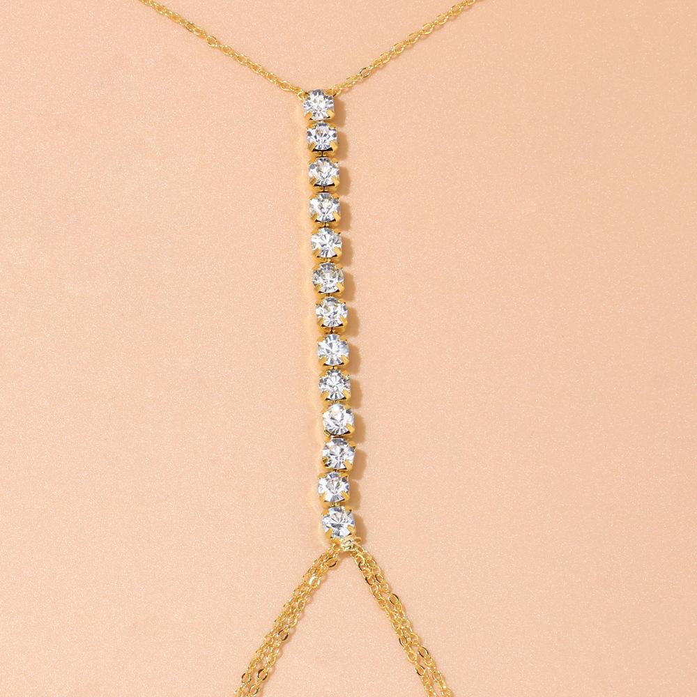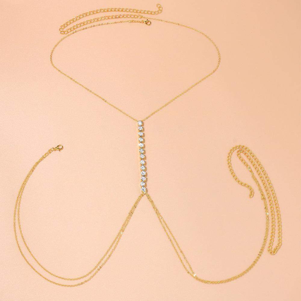 Cadena corporal con diamantes de imitación para mujer, joyería transfronteriza europea y americana, cadena corporal para bikini, cadena de pecho de metal para cintura