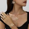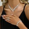 [Nombre del bebé] Nuevo juego de cuatro piezas de collar, aretes, anillo y pulsera de moda europea y americana transfronteriza, collar de tres filas de diamantes completos, traje nupcial para mujer
