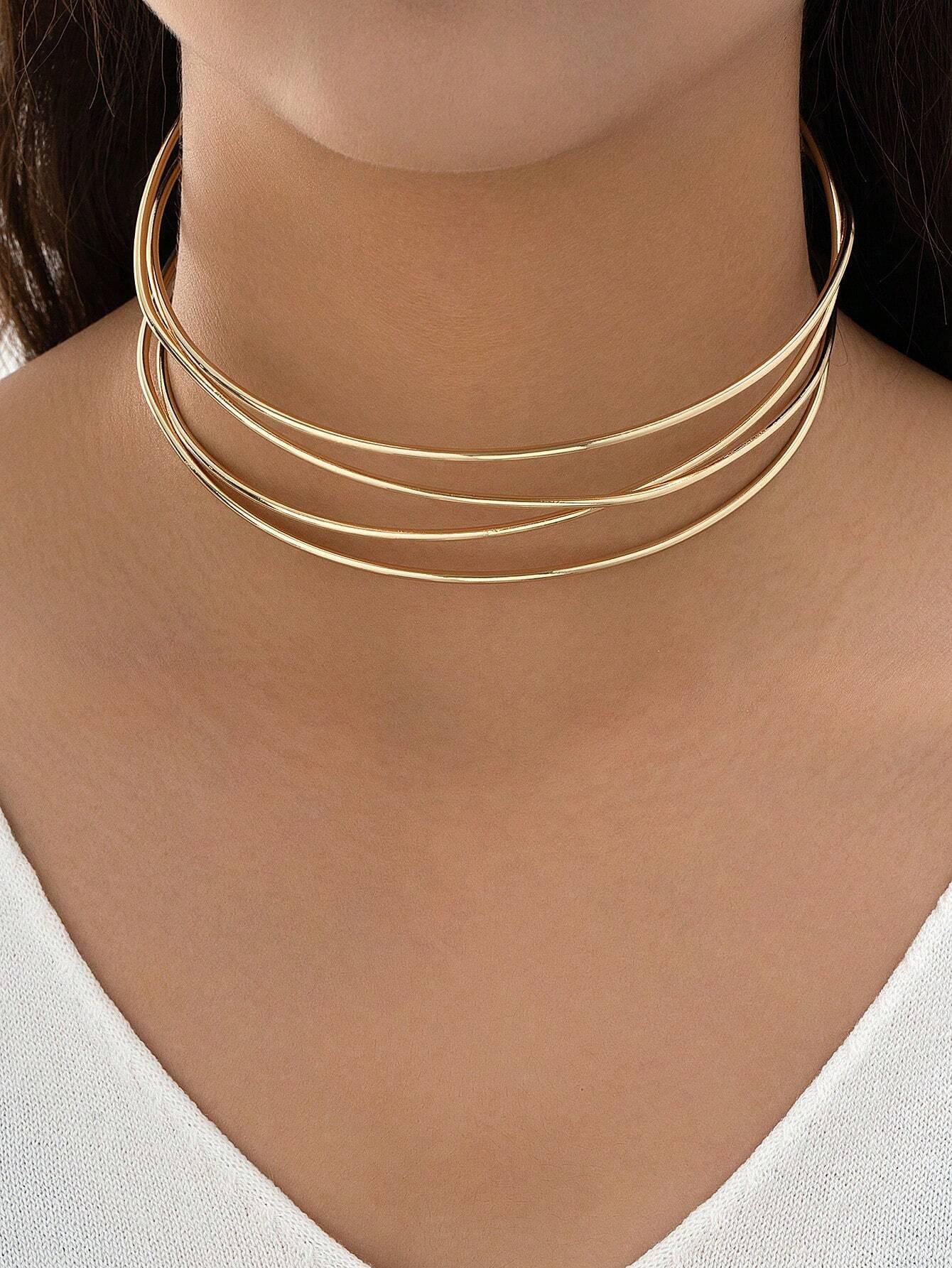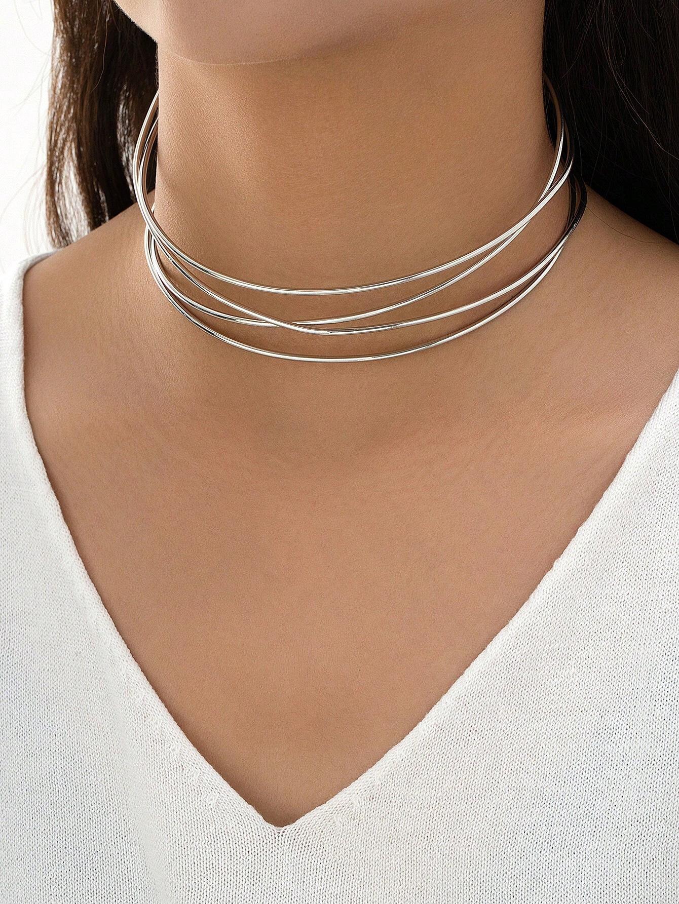 Moda Creativa Simple Joyería para el Cuello Diseño Nicho Sentido Avanzado Estilo Frío Línea Hueca Multicapa Collar Cruzado