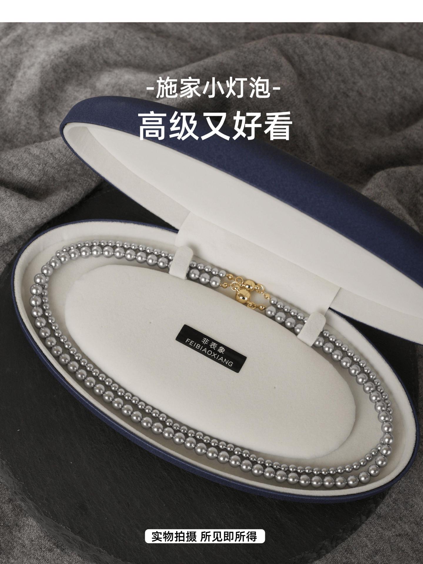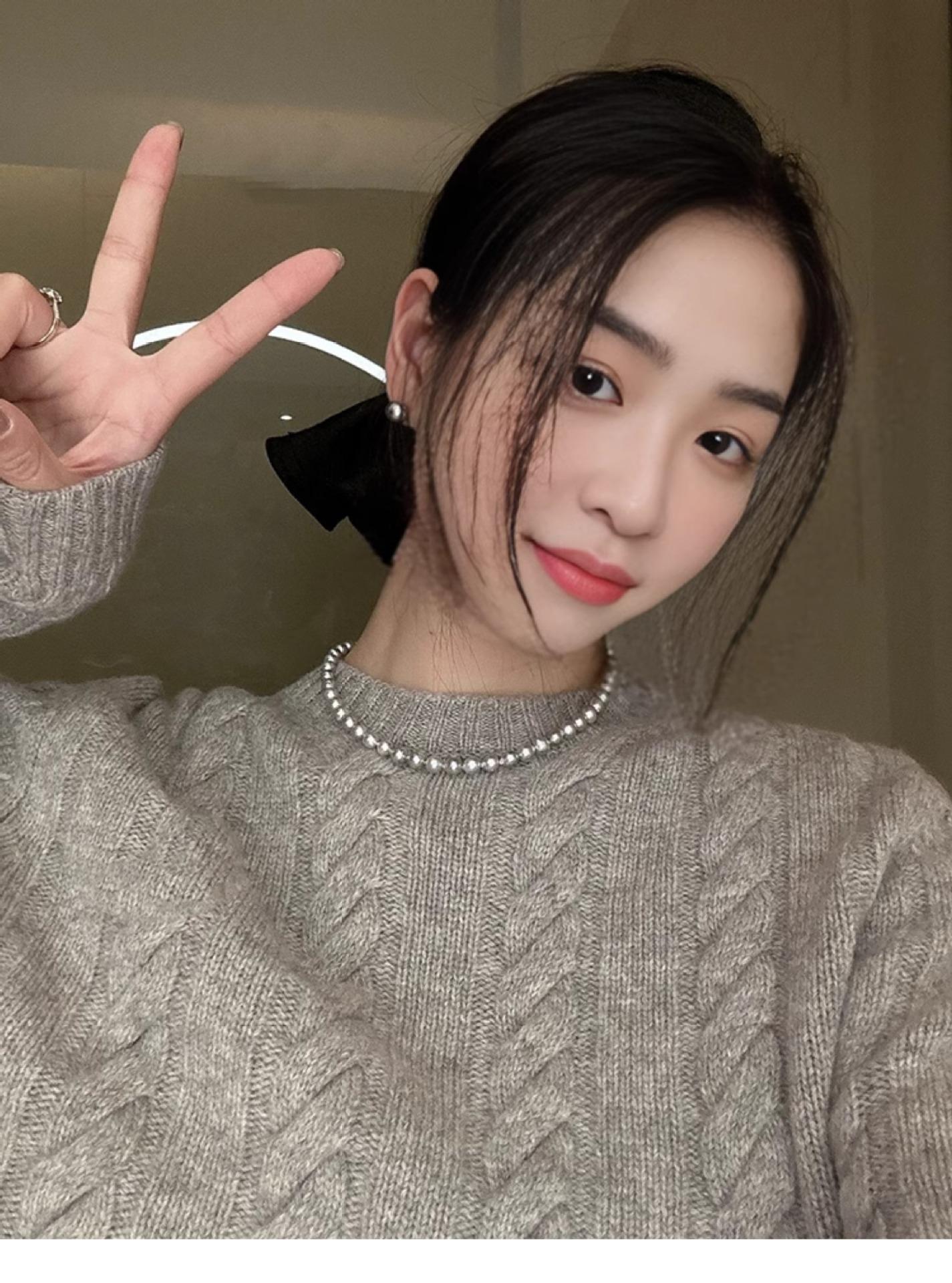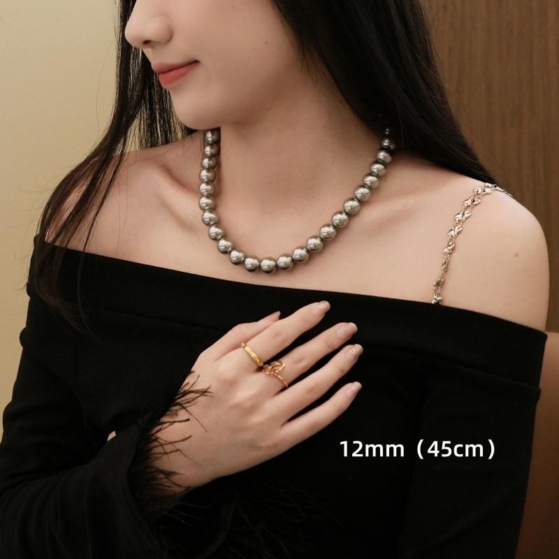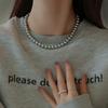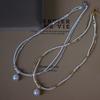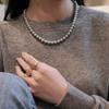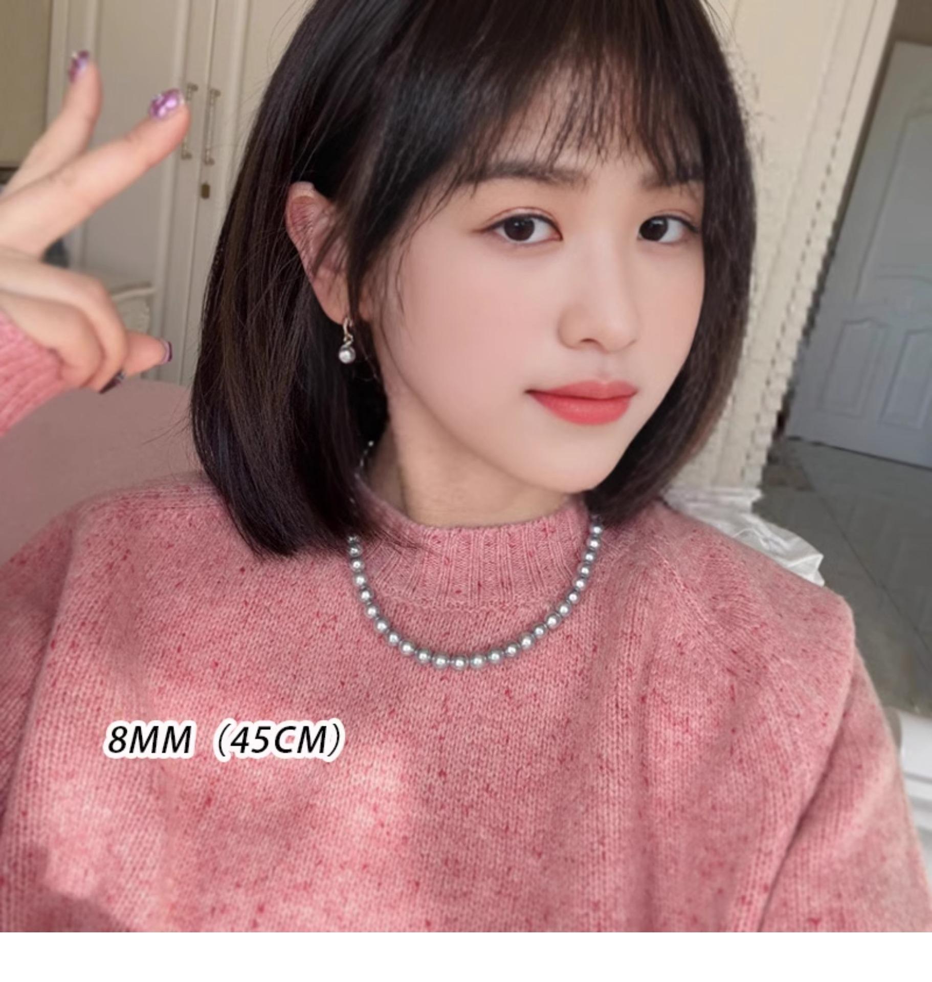 Un montón de collar de perlas grises, cadena de suéter con hebilla magnética, temperamento que combina con todo, cadena de clavícula redonda para mujeres coreanas, cadena de cuello