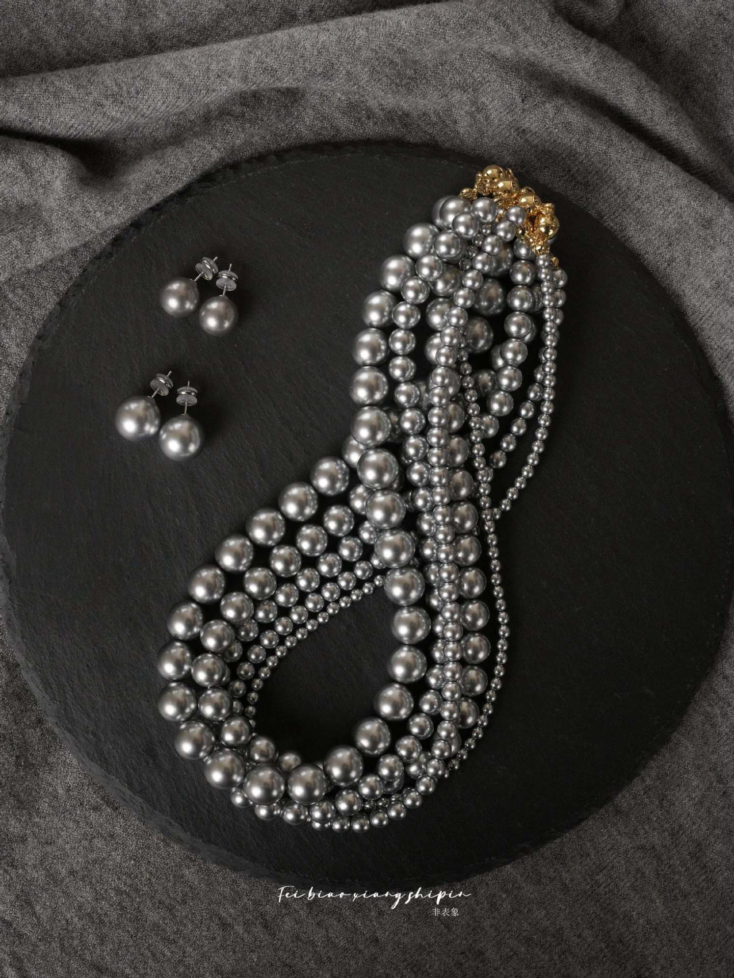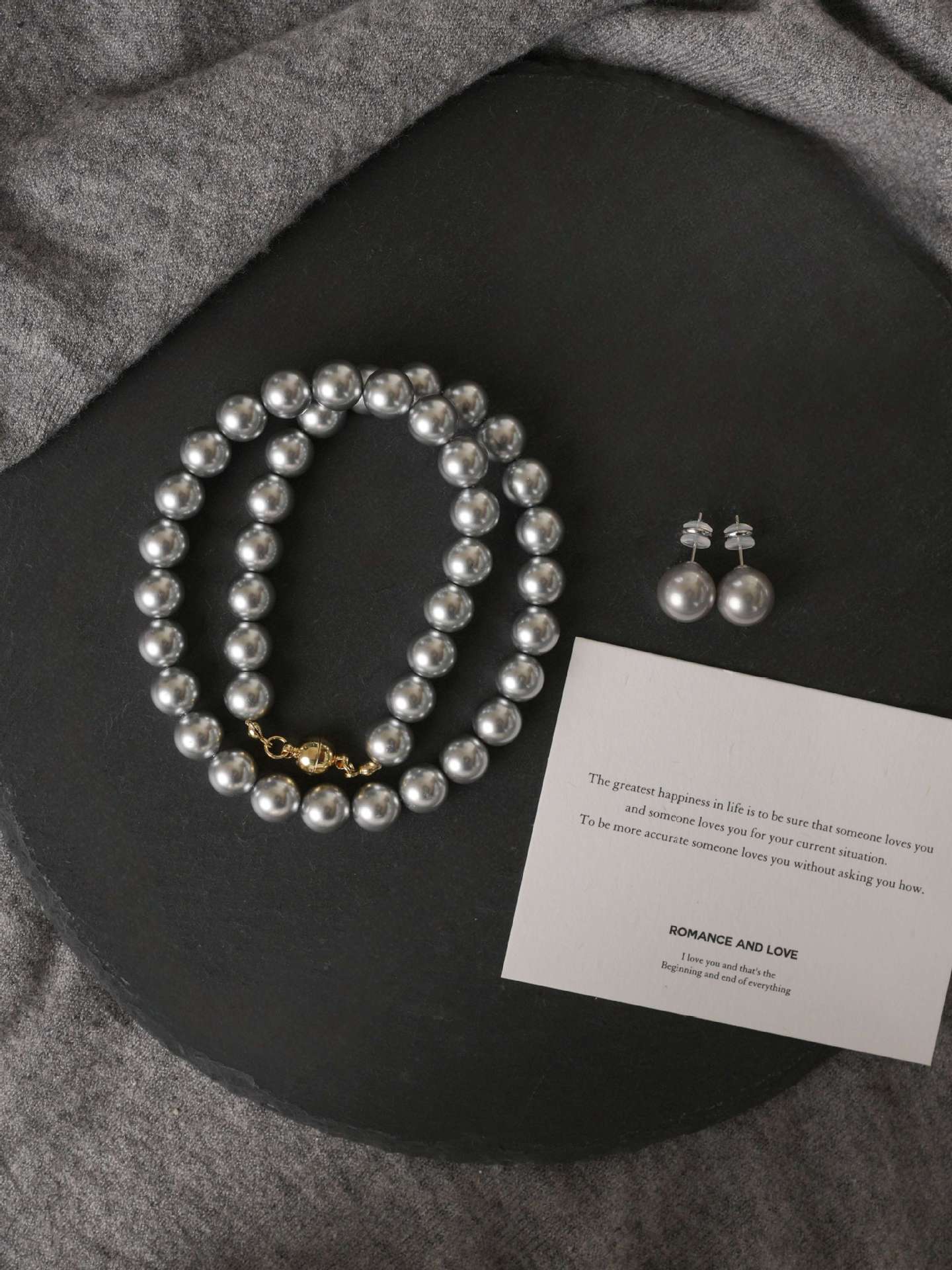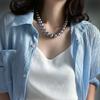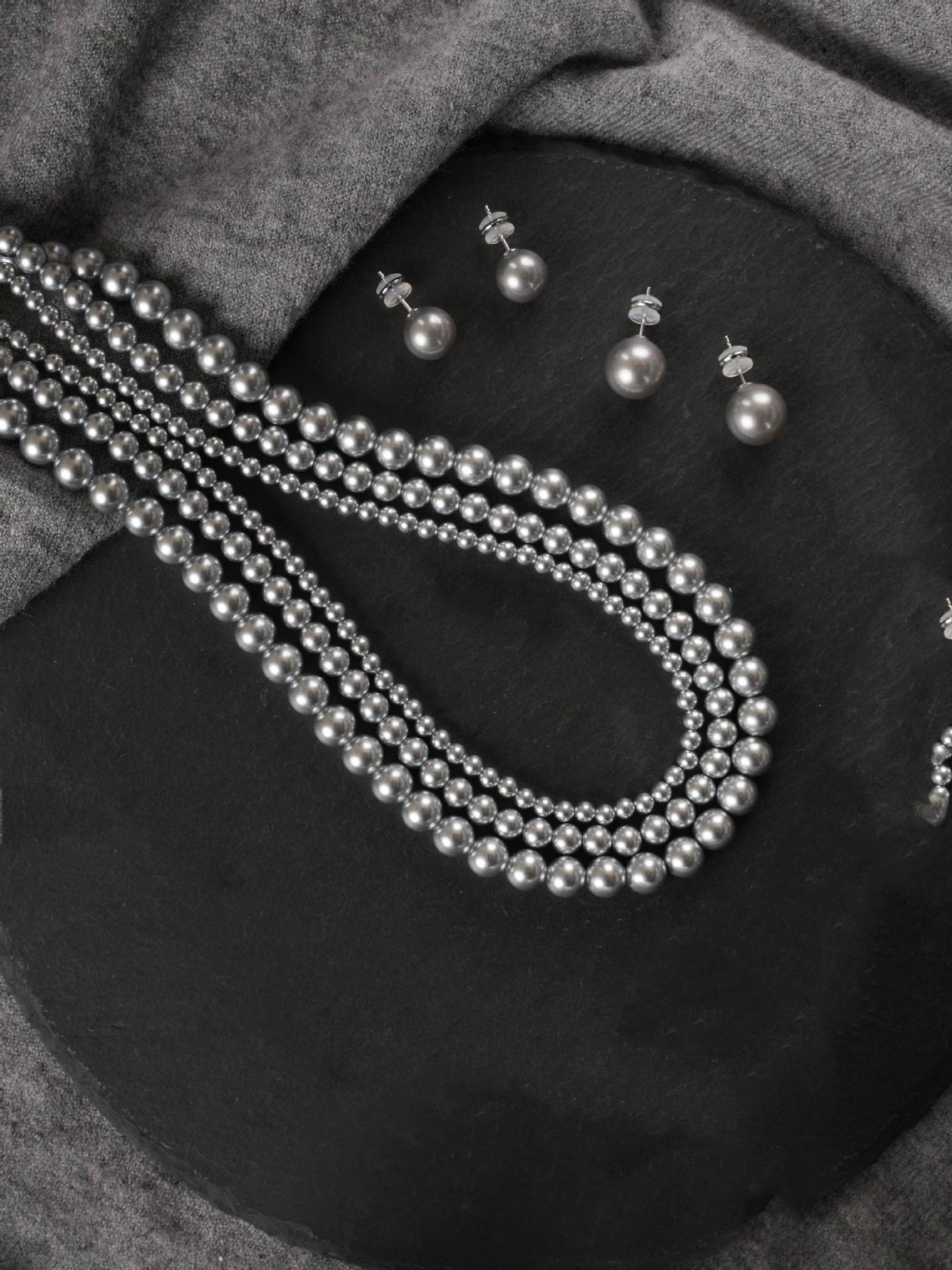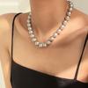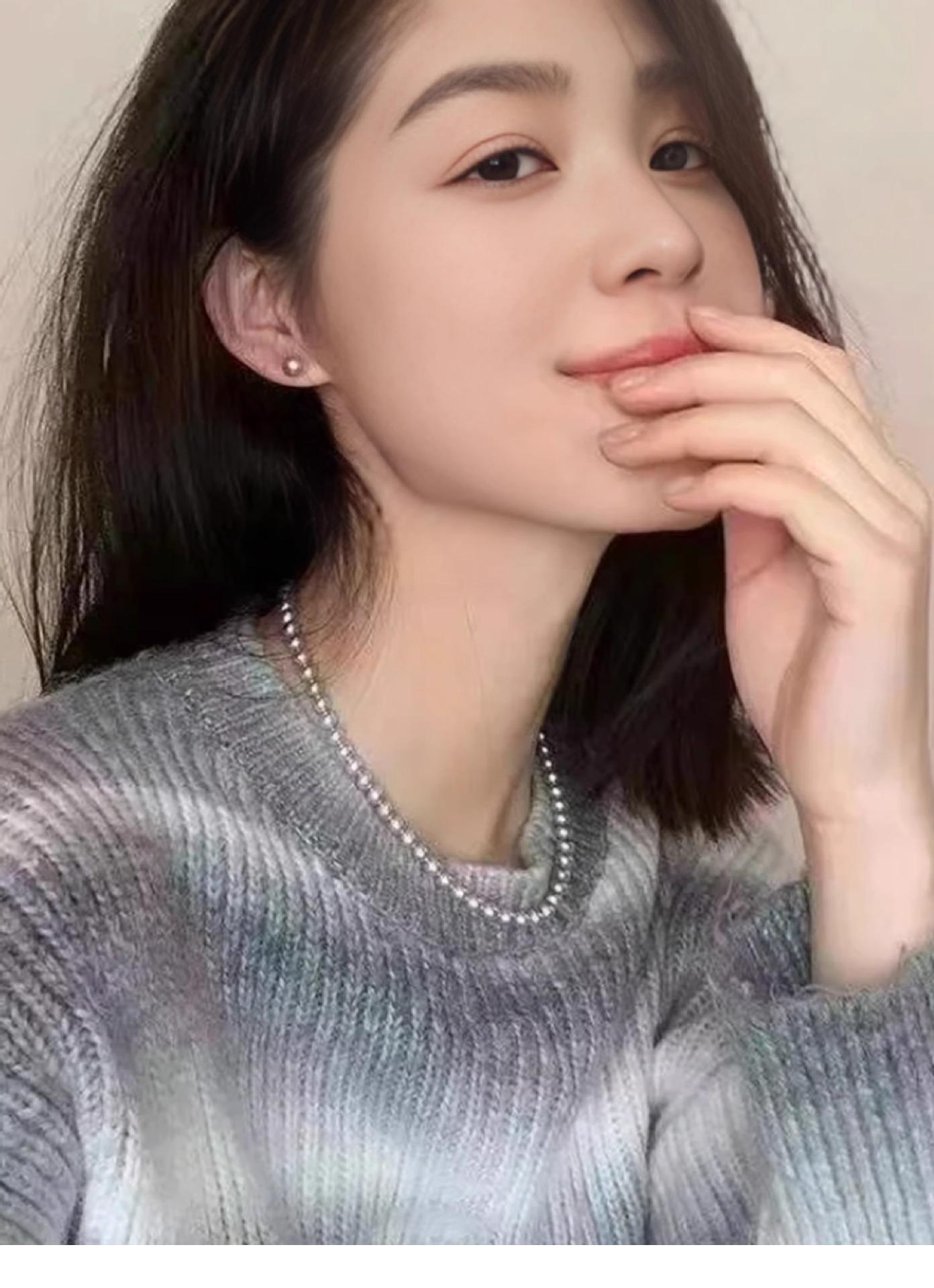 Un montón de collar de perlas grises, cadena de suéter con hebilla magnética, temperamento que combina con todo, cadena de clavícula redonda para mujeres coreanas, cadena de cuello