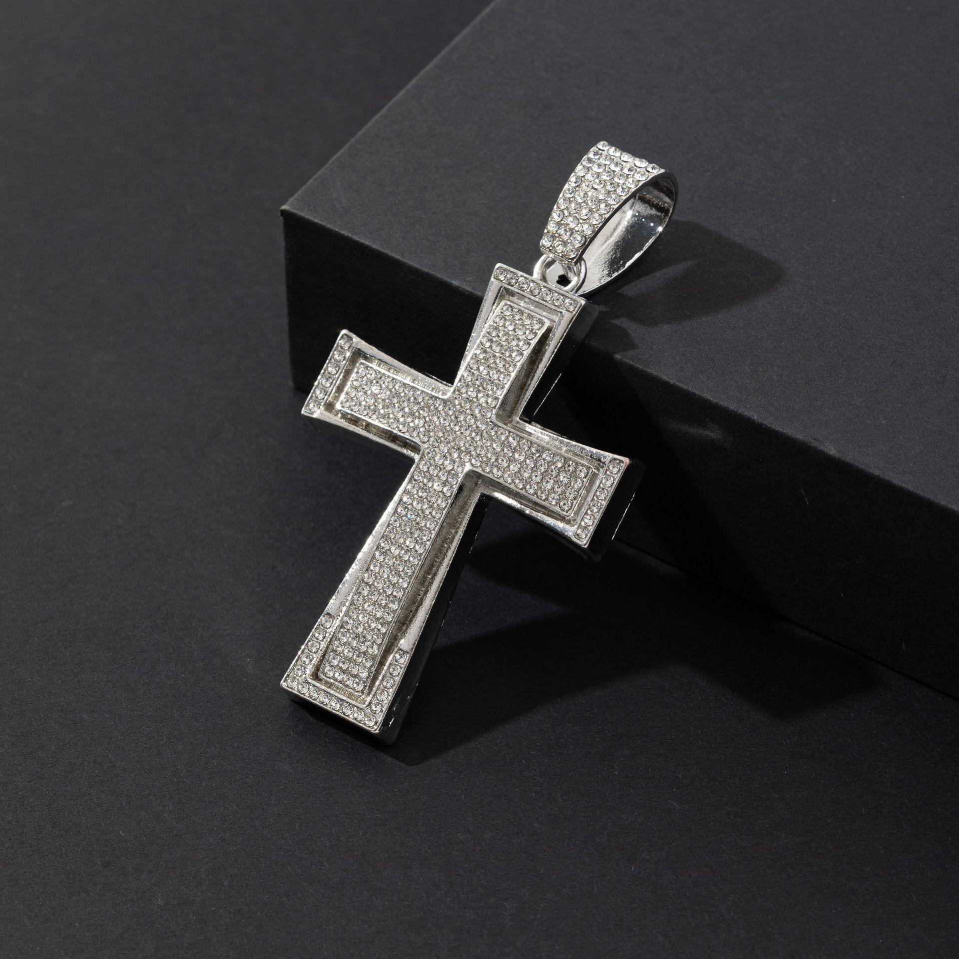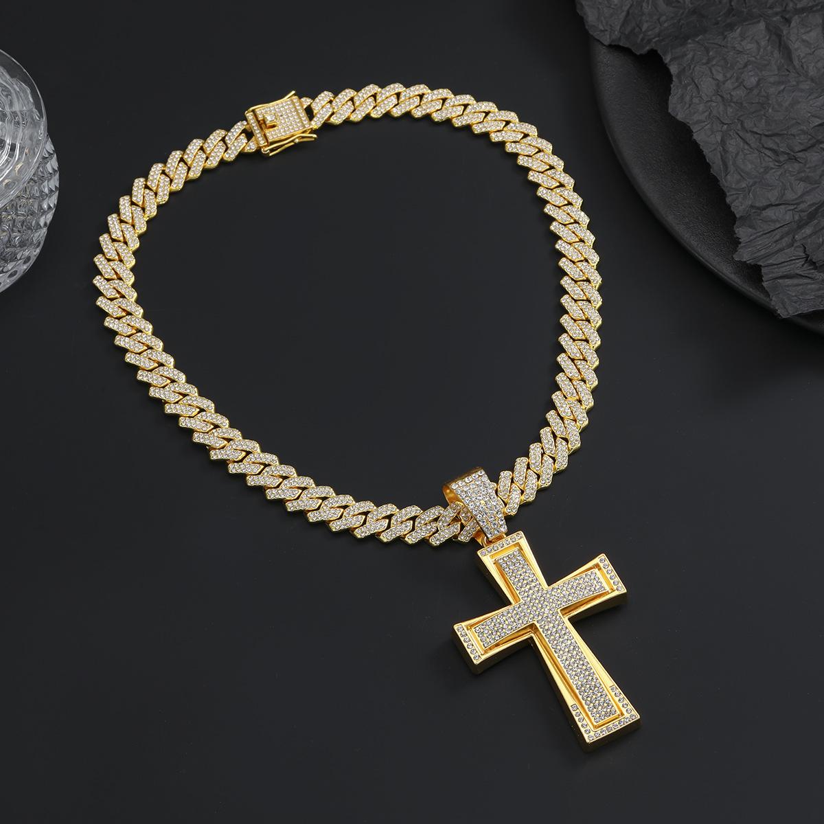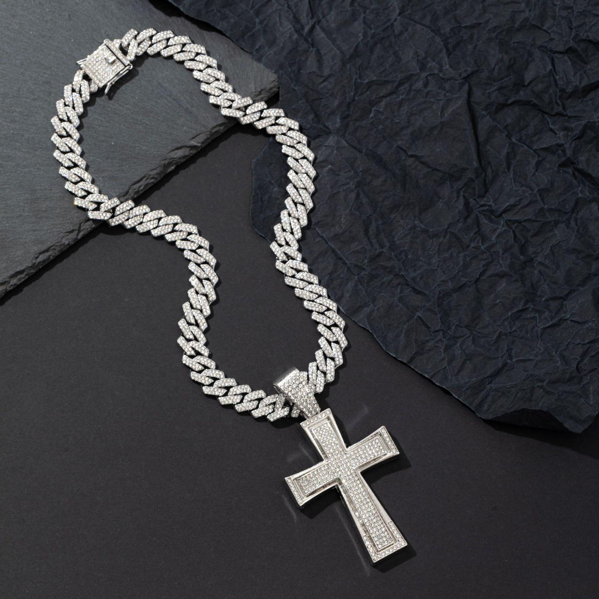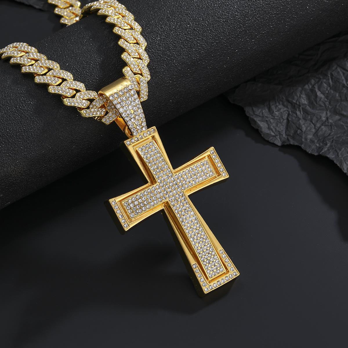 Nuevo Estilo Hip-Hop Europeo y Americano Colgante de Cruz Dominante de Diamantes Completos Collar Cubano Accesorios de Moda Elegantes para la Calle Colgante