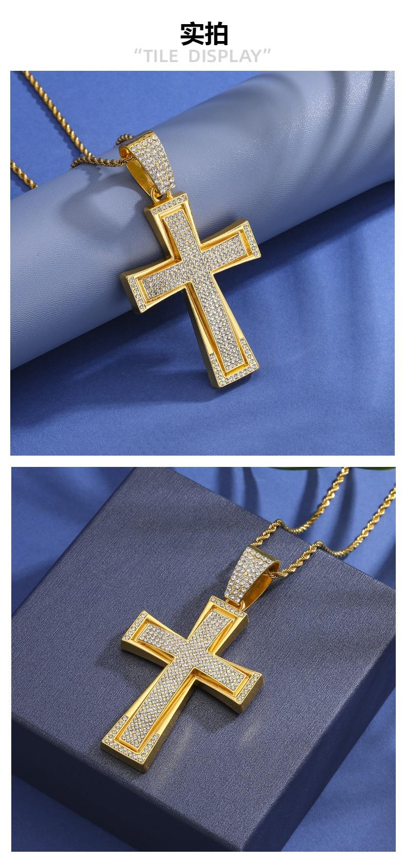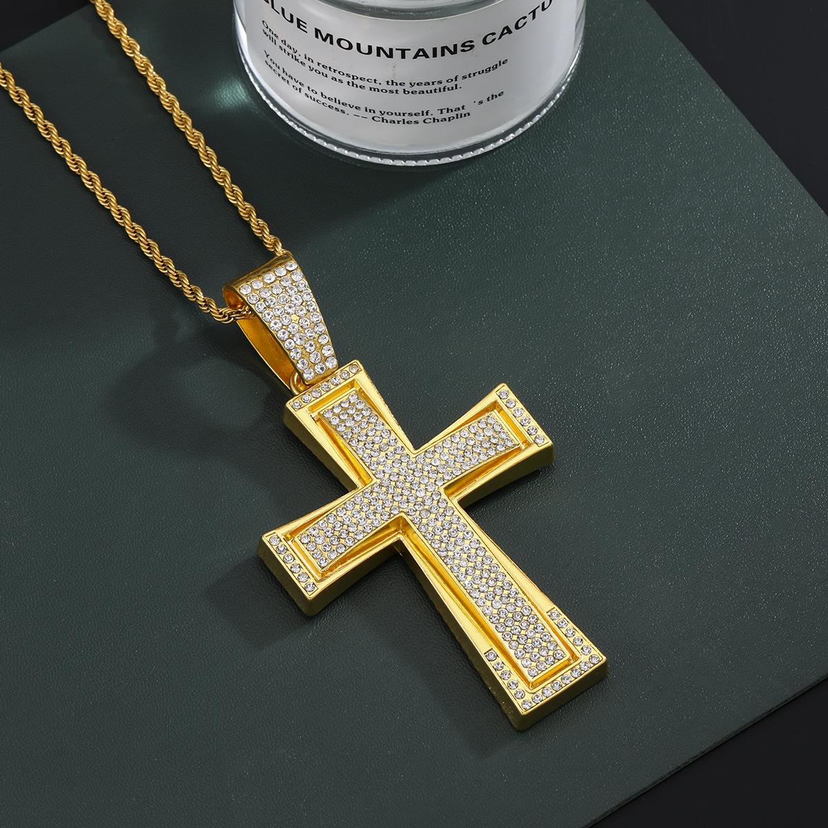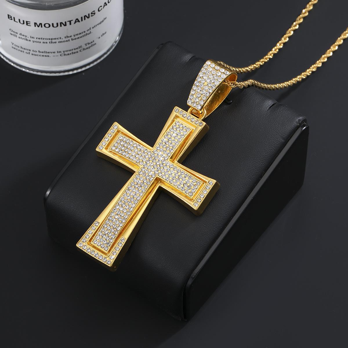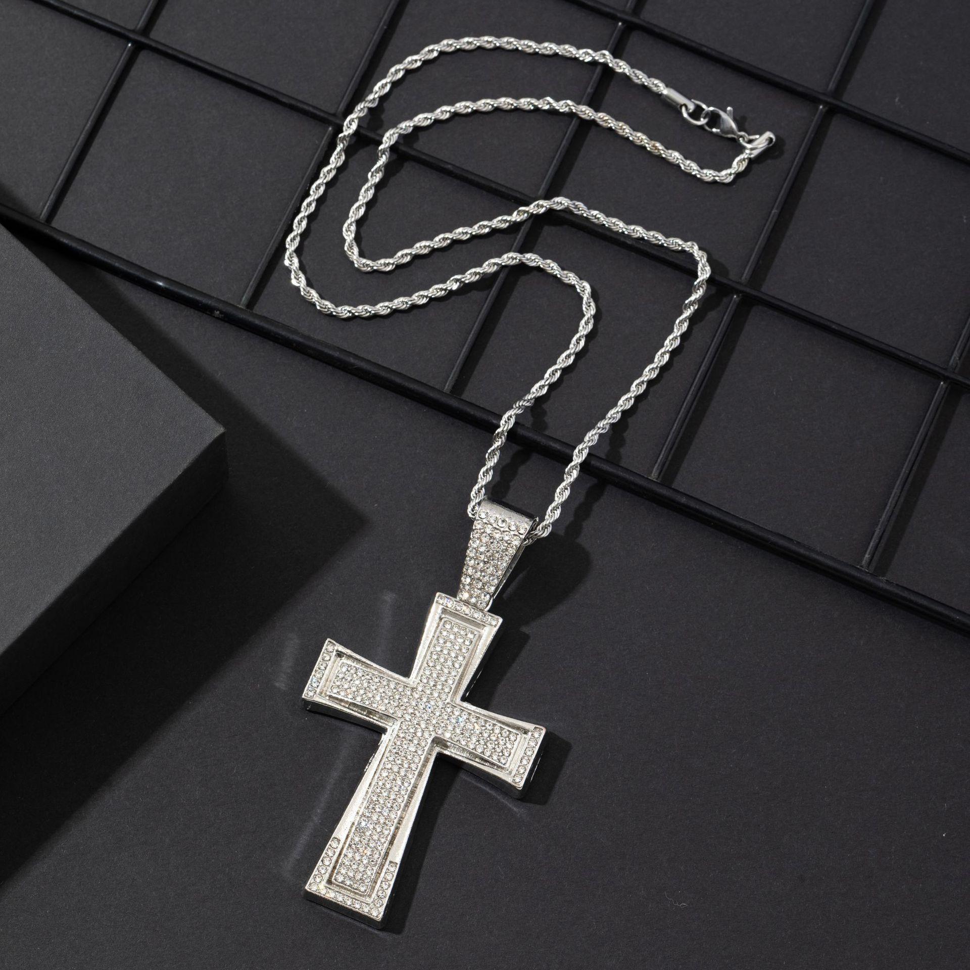 Nuevo Estilo Hip-Hop Europeo y Americano Colgante de Cruz Dominante de Diamantes Completos Collar Cubano Accesorios de Moda Elegantes para la Calle Colgante