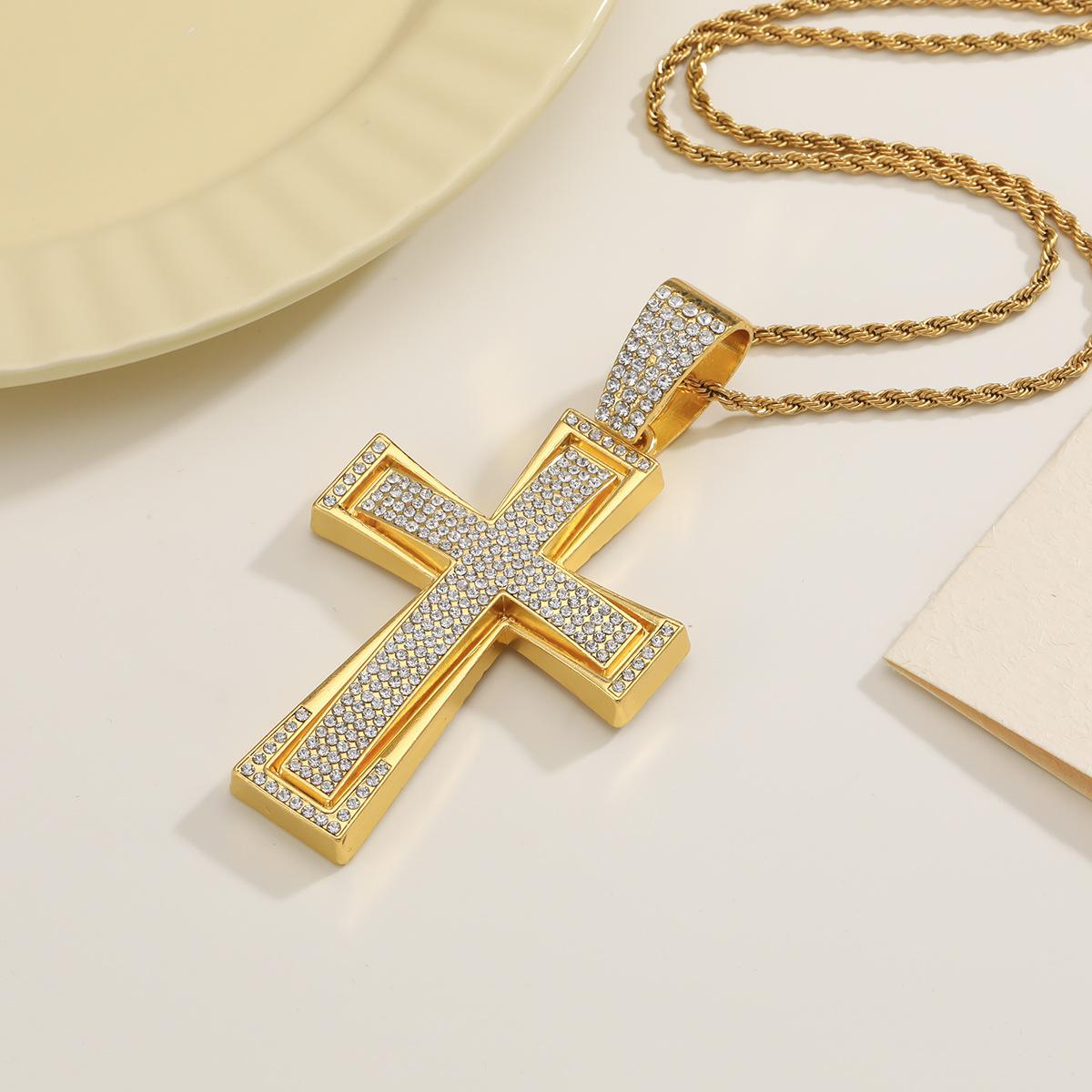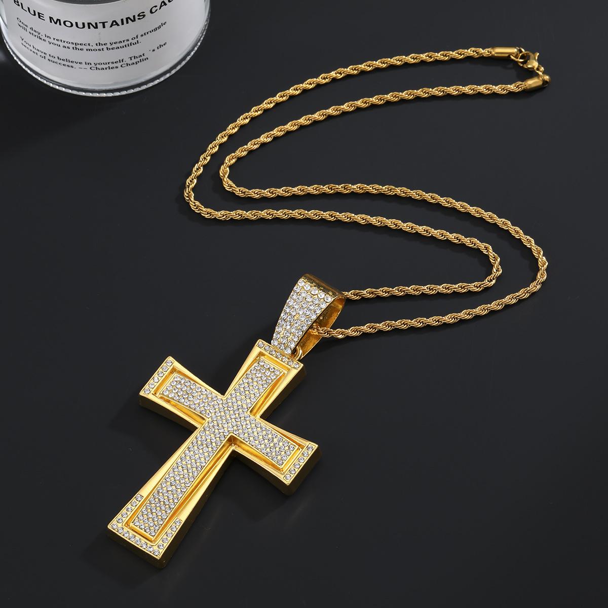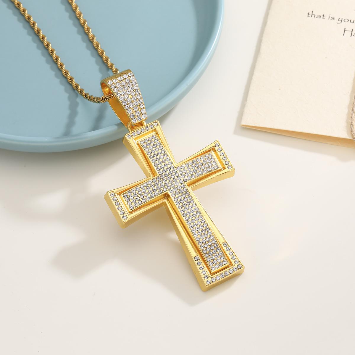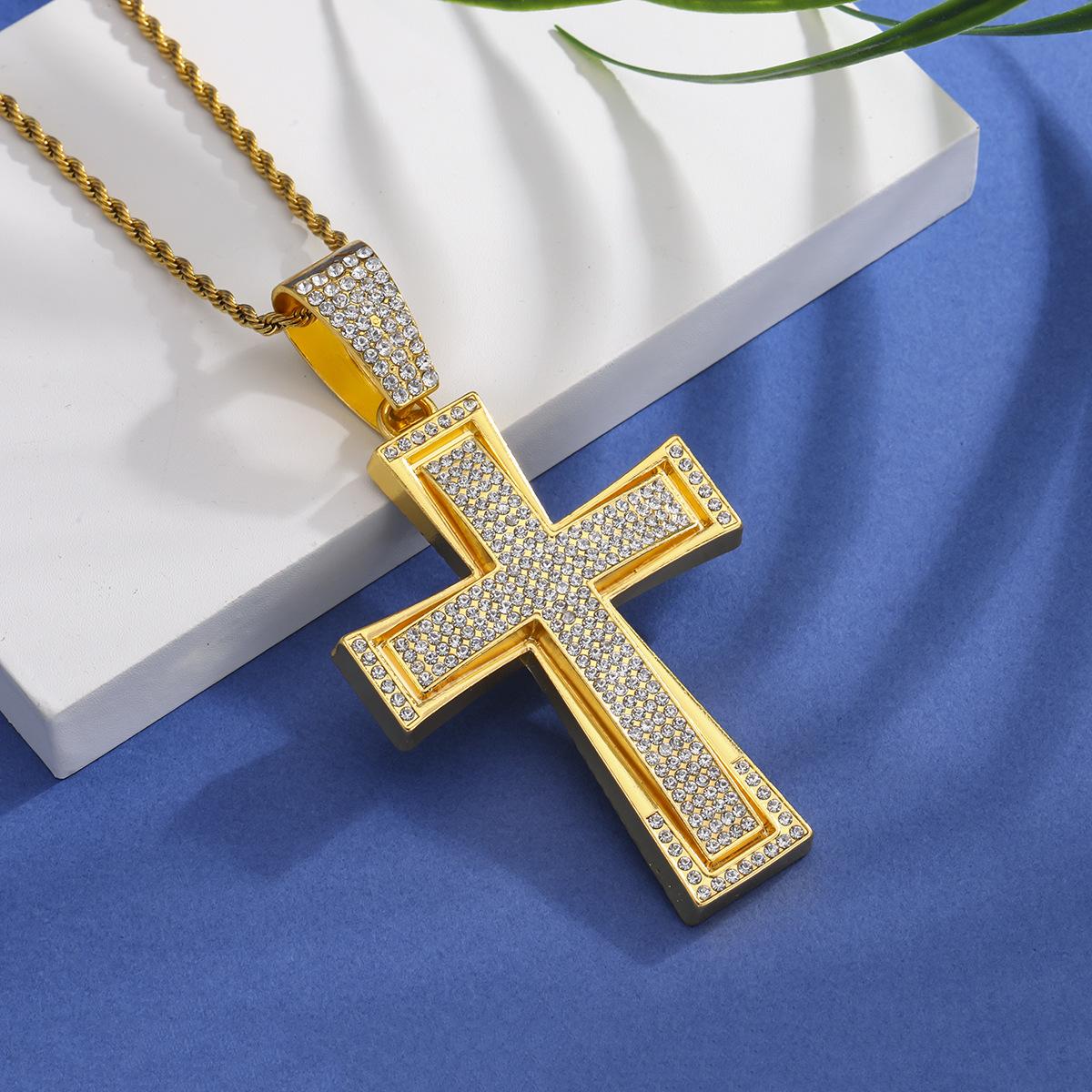 Nuevo Estilo Hip-Hop Europeo y Americano Colgante de Cruz Dominante de Diamantes Completos Collar Cubano Accesorios de Moda Elegantes para la Calle Colgante