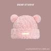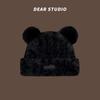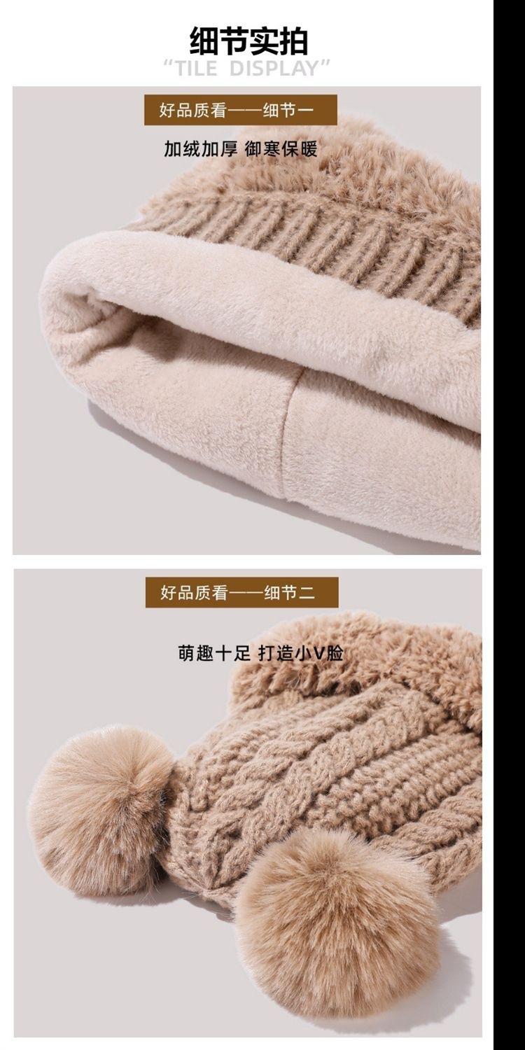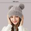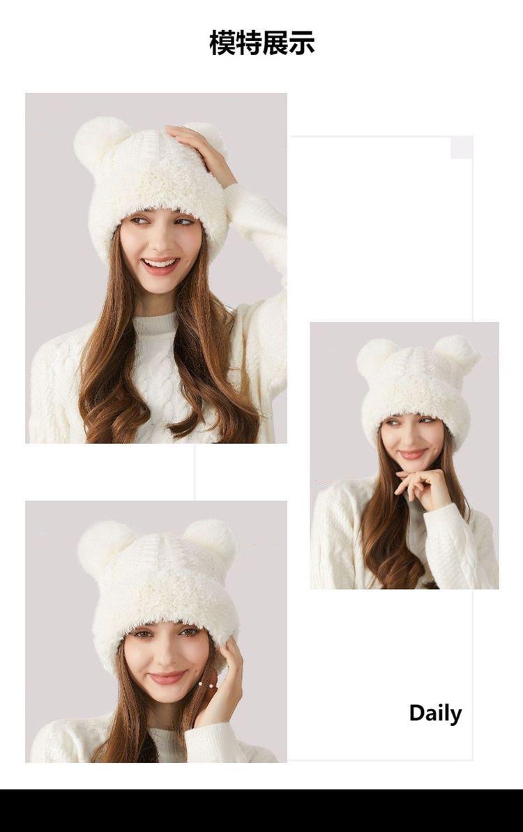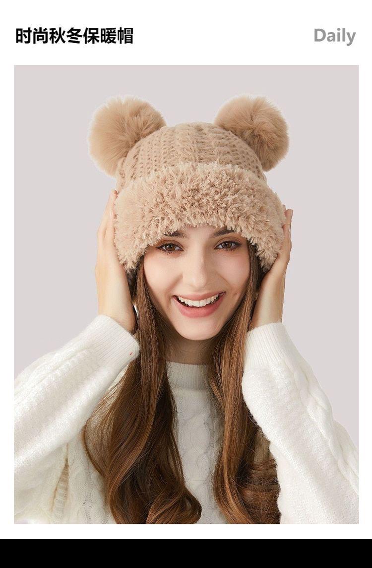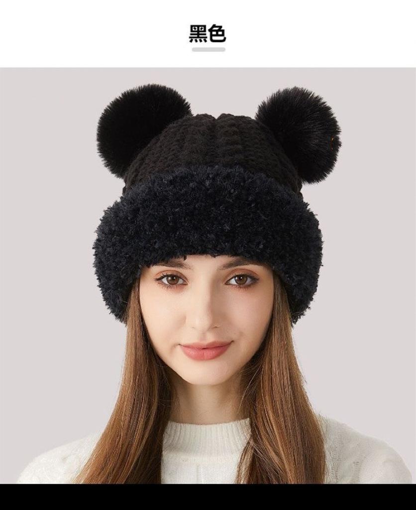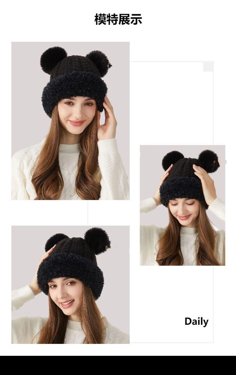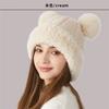 Nuevo Invierno Lindo Gorro Tejido con Bola de Pelo para Mujer, Exterior, Borde Afelpado Reductor de Edad, Protección para las Orejas, Gorro de Lana Combinable, Cálido