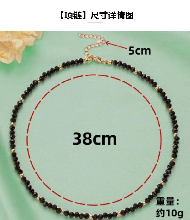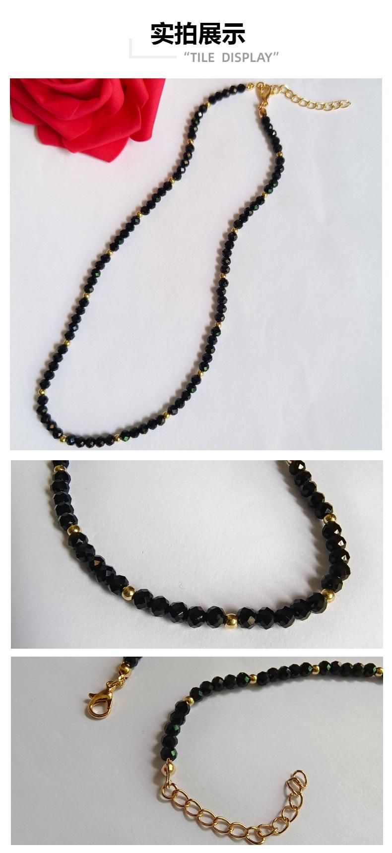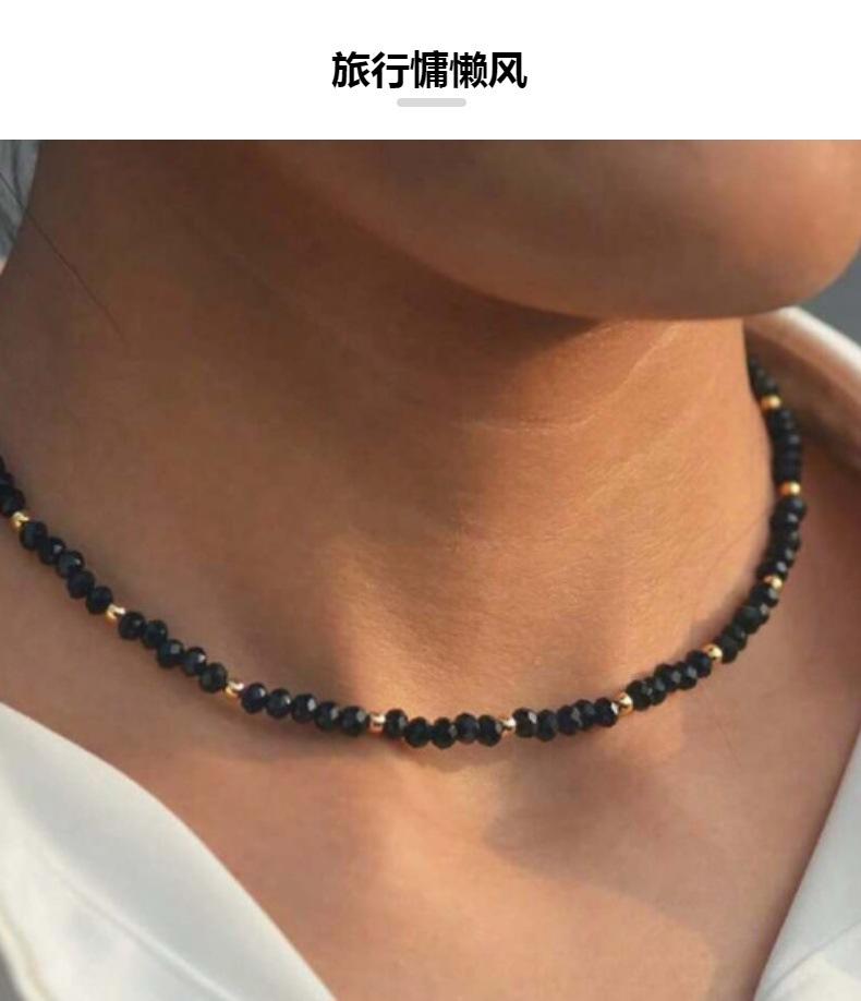 Collar de mujer de cristal negro de moda simple transfronterizo de Europa y Estados Unidos con pequeñas bolas de oro y cuentas, cadena de clavícula hecha a mano, cadena de cuello para mujer