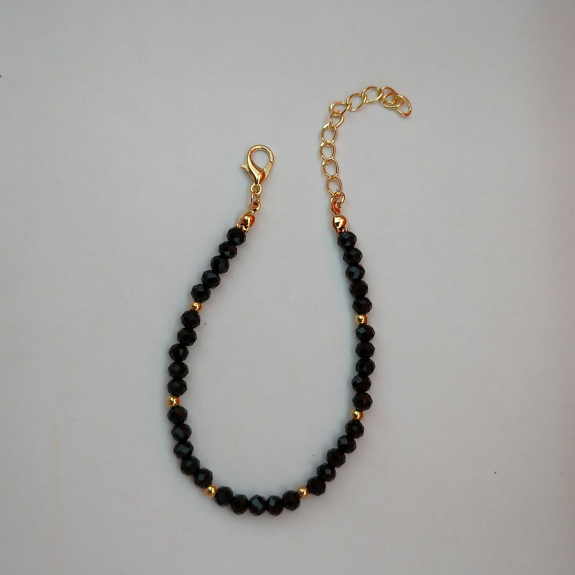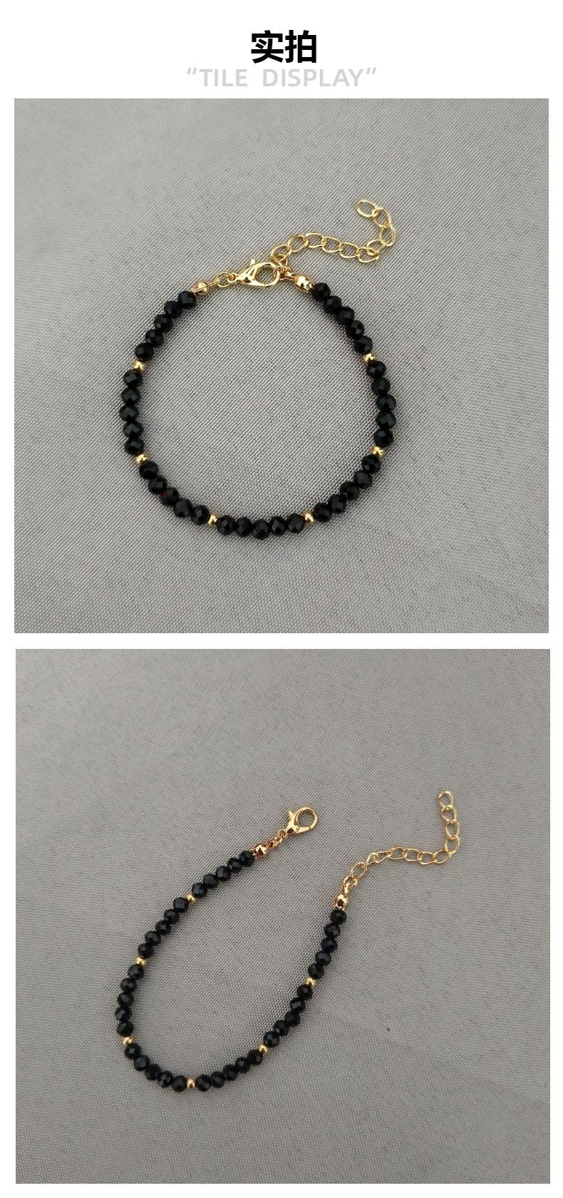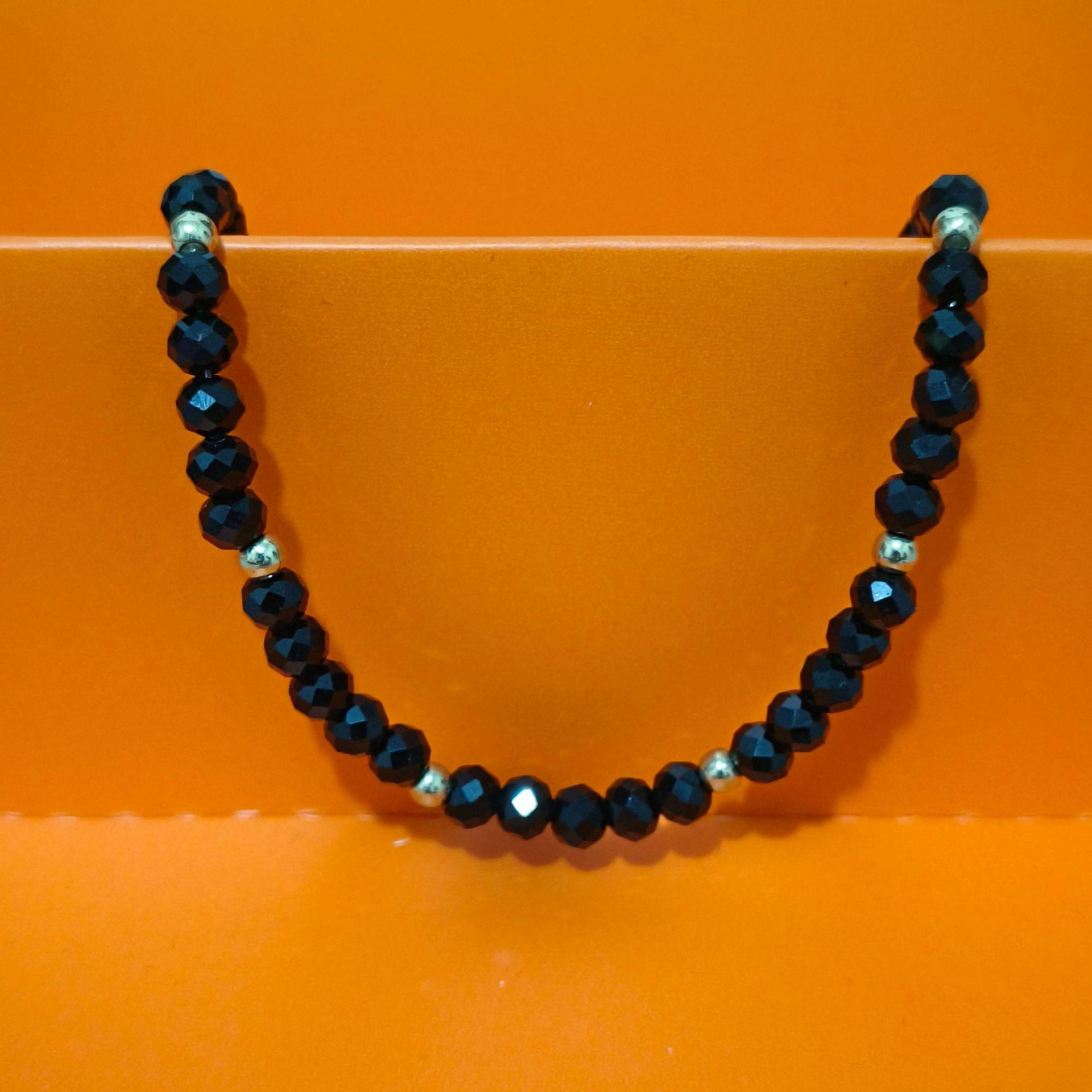 Collar de mujer de cristal negro de moda simple transfronterizo de Europa y Estados Unidos con pequeñas bolas de oro y cuentas, cadena de clavícula hecha a mano, cadena de cuello para mujer