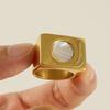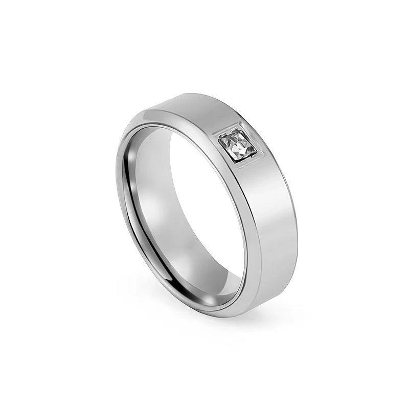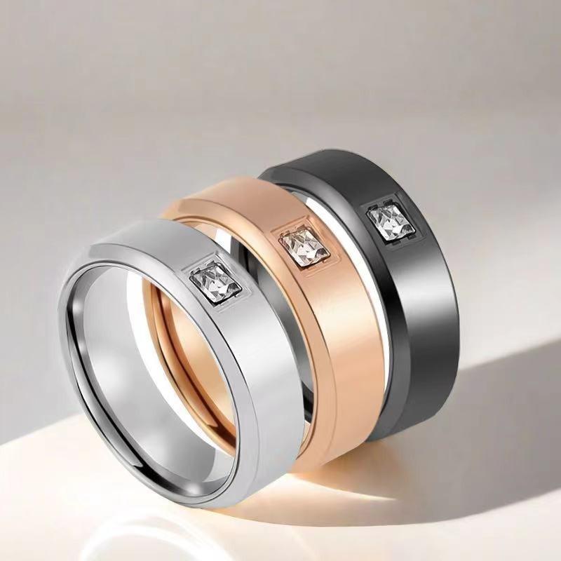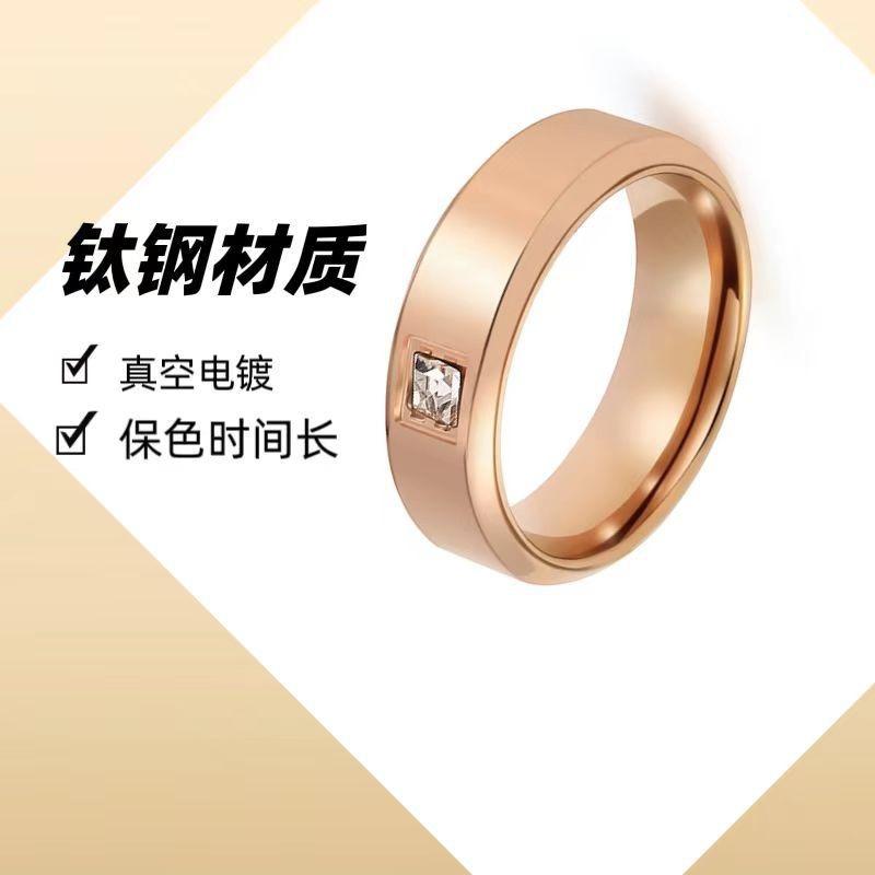 Anillo cuadrado de acero de titanio con diamante para mujer, estilo ins, lujo francés, joyería de acero inoxidable al por mayor, textura simple, anillo que no se desvanece