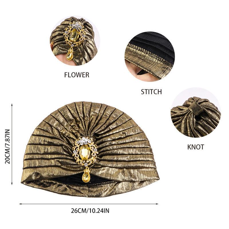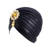 | |  | Pañuelo para la cabeza con flores de donut de seda brillante transfronterizo, sombrero plisado retro étnico, sombrero para adoración en la iglesia JDT-55 |
