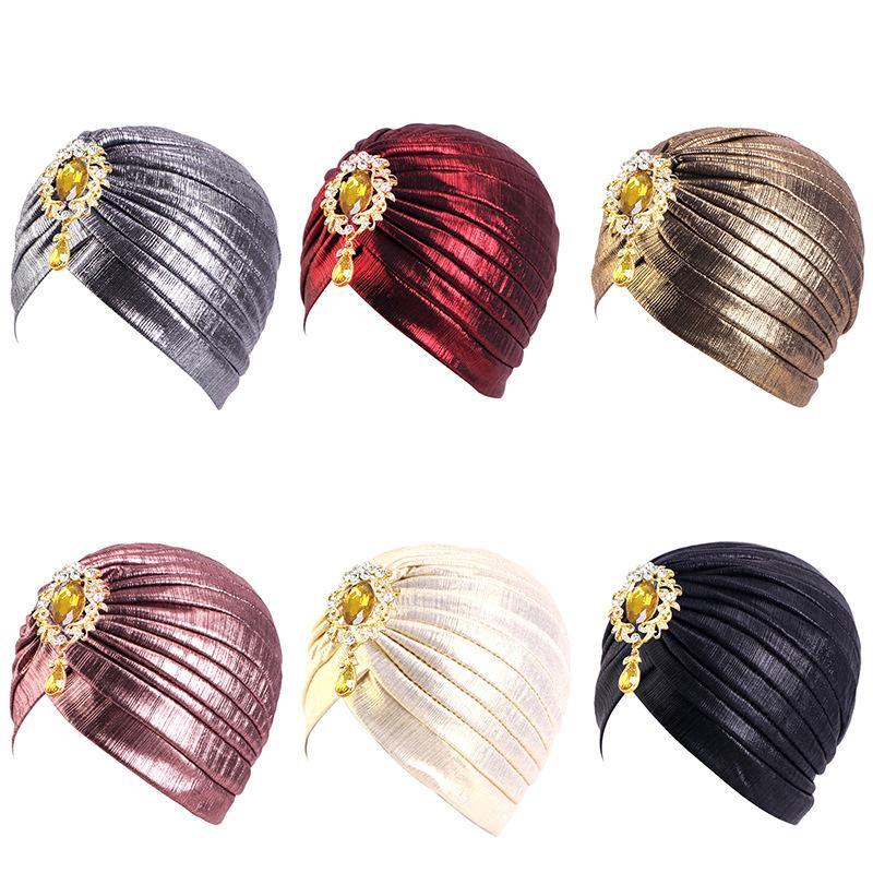 | |  | Turbante elástico de color sólido de Amazon con cuentas de cielo estrellado, gorro indio para yoga, gorro de quimioterapia TJM-49 |