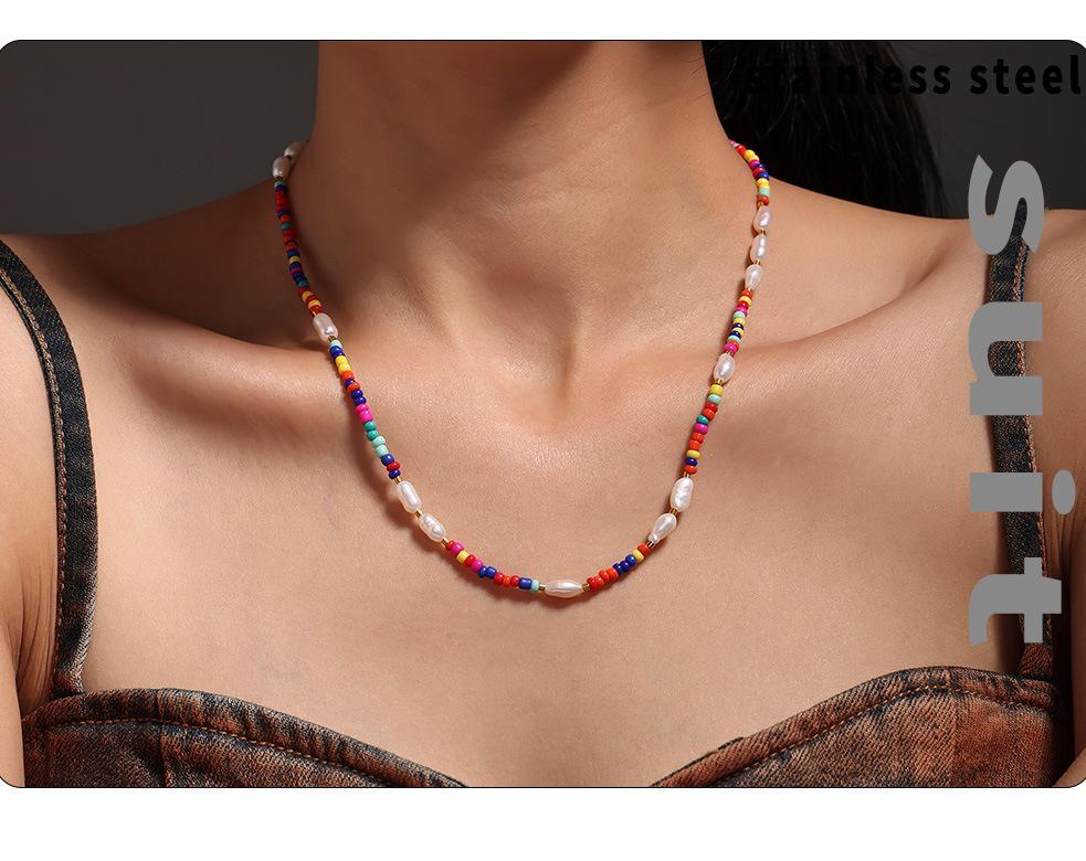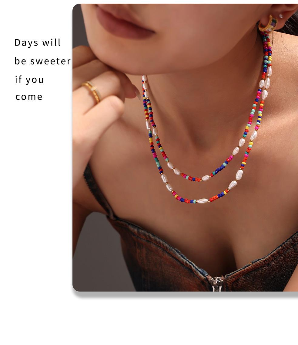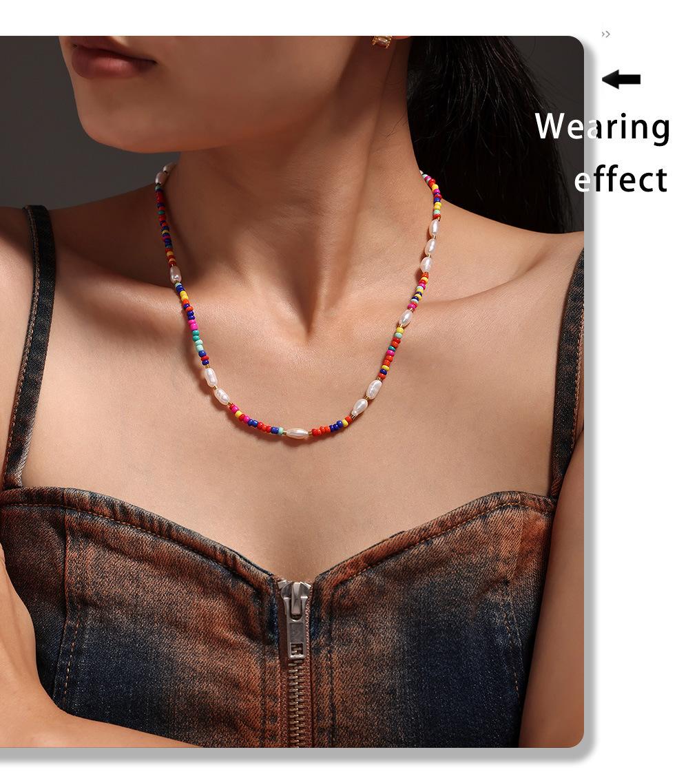 Xin Yixin - Collar étnico de estilo bohemio, tejido a mano, con perlas de agua dulce y cuentas de colores
